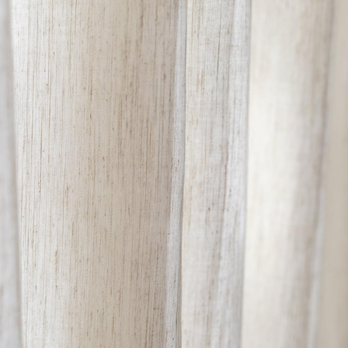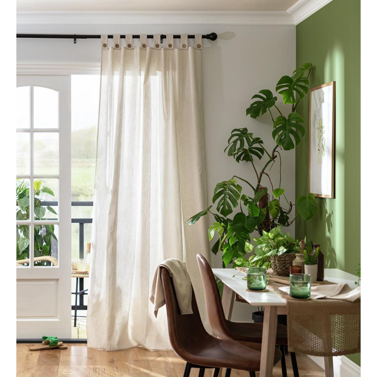 Sheer indulgence. Let the light in with these lovely textured, linen look voile curtains. They're super easy to hang and ideal for giving an elegant, airy feel to your space. Made from cotton and polyester, they'll happily go in the wash too. The neat tab tops and button detail bring a designer touch. Want a bit of Hollywood glamour? Add a large metal framed mirror and a deep plie rug to your scheme.