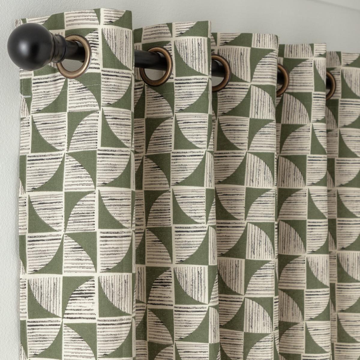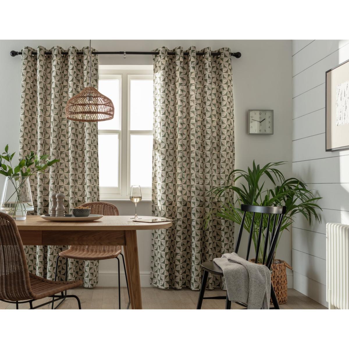 Habitat Cabin Geo Print Lined Eyelet Curtains - Green