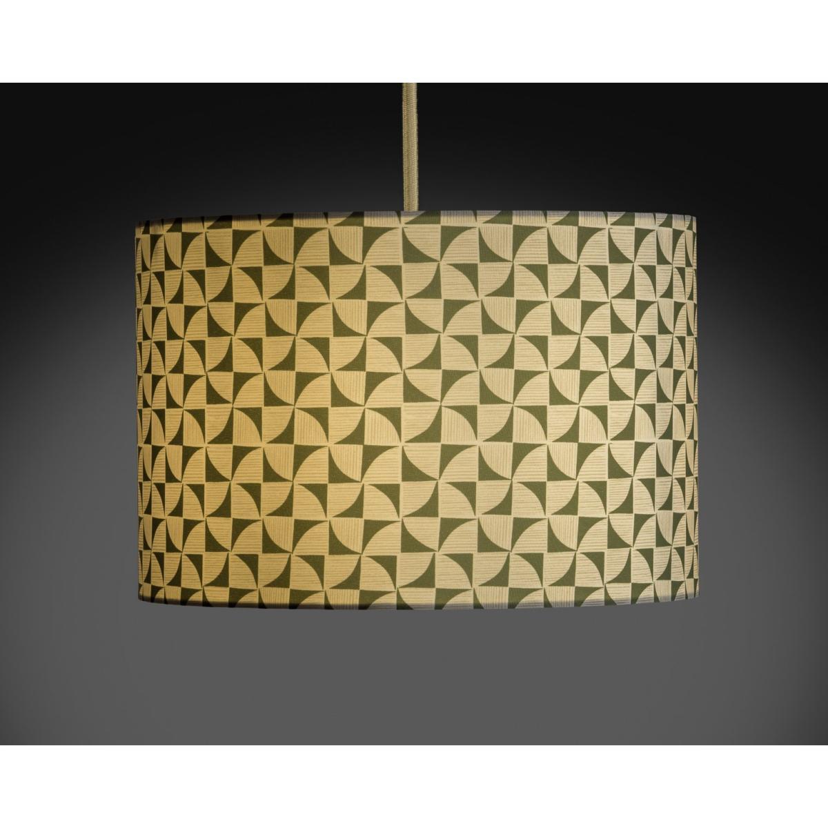 I love this shade for its fresh, outdoorsy feel, making it perfect for relaxed, nature-inspired interiors. The green and white pattern is versatile enough to work in both modern and retro setups, especially in casual living rooms or cosy reading nooks. To style it effectively, consider pairing it with similar earthy tones or adding natural textures like rattan or wood to enhance its cabin vibe. It’s a great choice for creating a cheerful yet calming light, especially when paired with simple, clean-lined lamps or used as a statement piece in a light-filled space. Keep surroundings minimal to let the pattern stand out, or complement it with other geometric or organic shapes for a cohesive look.