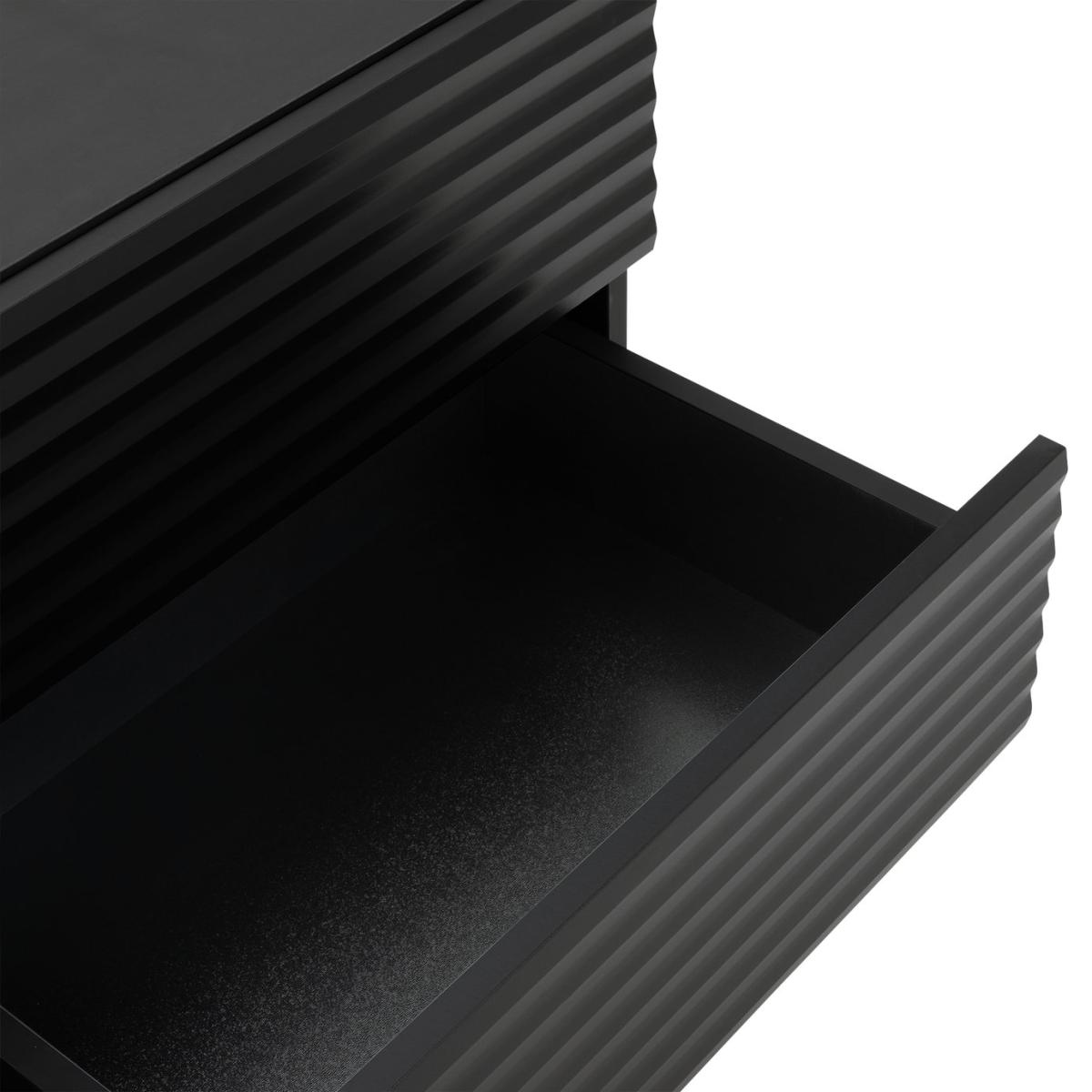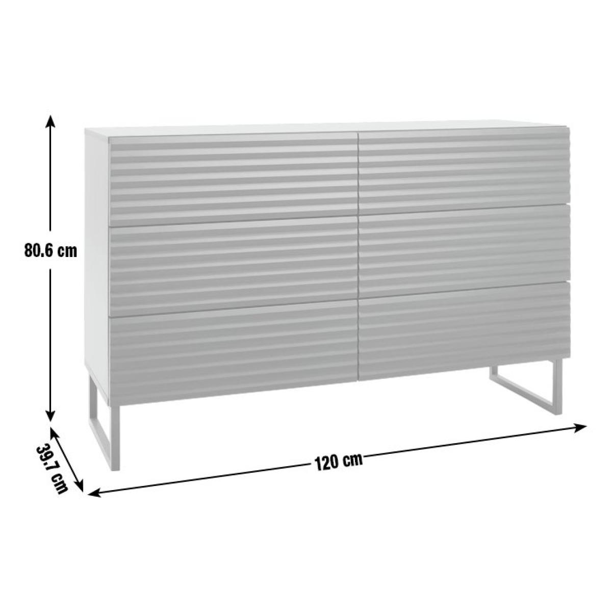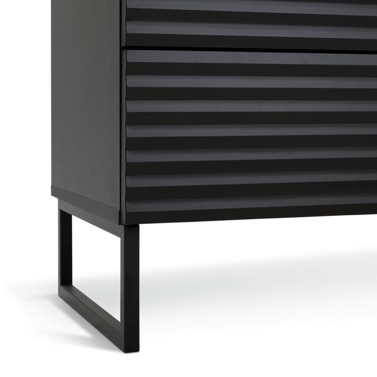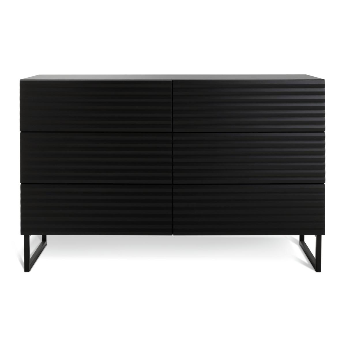 Clean lines and a high-end luxury look. This is a chest of drawers worth showcasing. With 6 deep, push-to-close drawers that glide open from the seamless ribbed front. A textural masterpiece for those that love contemporary design. Set on angular legs and finished in midnight black. Part of the Cairo collection. Made of particleboard and MDF. 6 drawers with metal runners. Self-assembly - 2 people recommended. If this product is over 60cm high it must be securely attached to the wall to prevent overturning. Dimensions: Size H80.6, W120, D39.7cm. Internal drawer H21, W57.2, D33.1cm. Weight 56kg. Package Dimensions: Package 1 dimensions: H1062, W414, D146cm. Package 1 weight: 27kg. Package 2 dimensions: H1416, W414, D97cm. Package 2 weight: 28kg. General information: FSC certified meaning the materials used for this product are responsibly sourced. Manufacturer's 1 year guarantee.