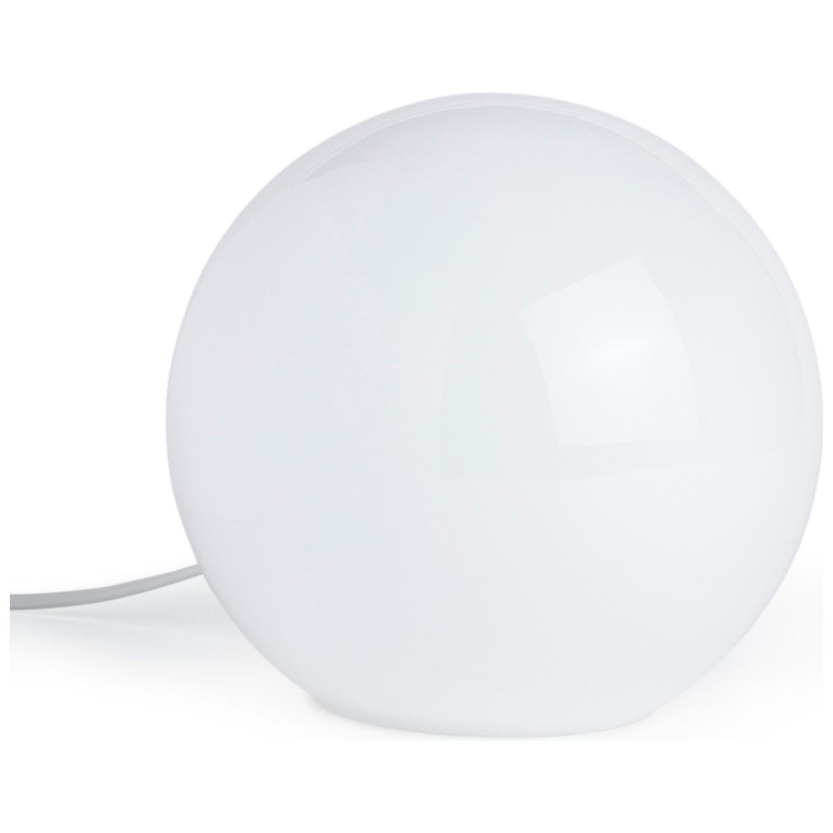 A perfect all-rounder. The Caliban globe table lamp is a statement piece that looks tip-top wherever it's placed. Giving off a cosy ambience, it requires 1 small Edison screw bulb and operates via a mainline switch. In a versatile white colour, it's the perfect piece to accompany your bedroom, hallway or living room decor. A contemporary design you'll never tire of. Dimensions: Overall size H18.5, Diameter 20cm. Cord length 1.7m. Bulb Information: Bulbs required 1 x golfball E14 small edison screw LED bulb(s) (not included). Recommended maximum wattage: 7 watts. General Information: In-line switch. IP rating 20 - not suitable for bathroom use. Fully assembled. Manufacturer's 1 year guarantee.