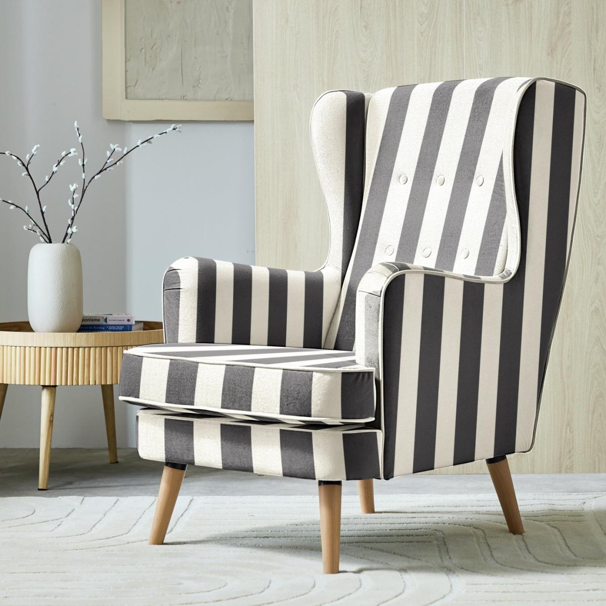 High back, high style. Think how many chapters you could plough through sitting comfortably on Callie. It has those vintage vibes you'd expect from a wingback chair, but with a modern twist. There's that classic button back detailing and ruching on the arms for textural appeal. The contemporary comes into play with those Scandi-look legs and the striking fabric. Another chapter? Go on then. Part of the Callie collection. Material: Made from 100% polyester. Wooden feet. Fixed seat with foam fibre wrap filling. Removable cushion(s) with foam fibre wrap filling. Free fabric swatch available on this line. Dimensions: Size H107, W73, D96cm. Floor to seat height: 46cm. Depth of seat: 58cm. Height of seat back: 60cm. Width of seating area between arms: 73cm. Height of arm rest: 64cm. Weight: 24.8kg. Packaged dimensions: Package size H56, W87, D73cm. General information: FSC certified meaning the materials used for this product are responsibly sourced. Professional clean only. Self-assembly - just add feet. Maximum individual user weight 110kg. Manufacturer's 2 year guarantee.