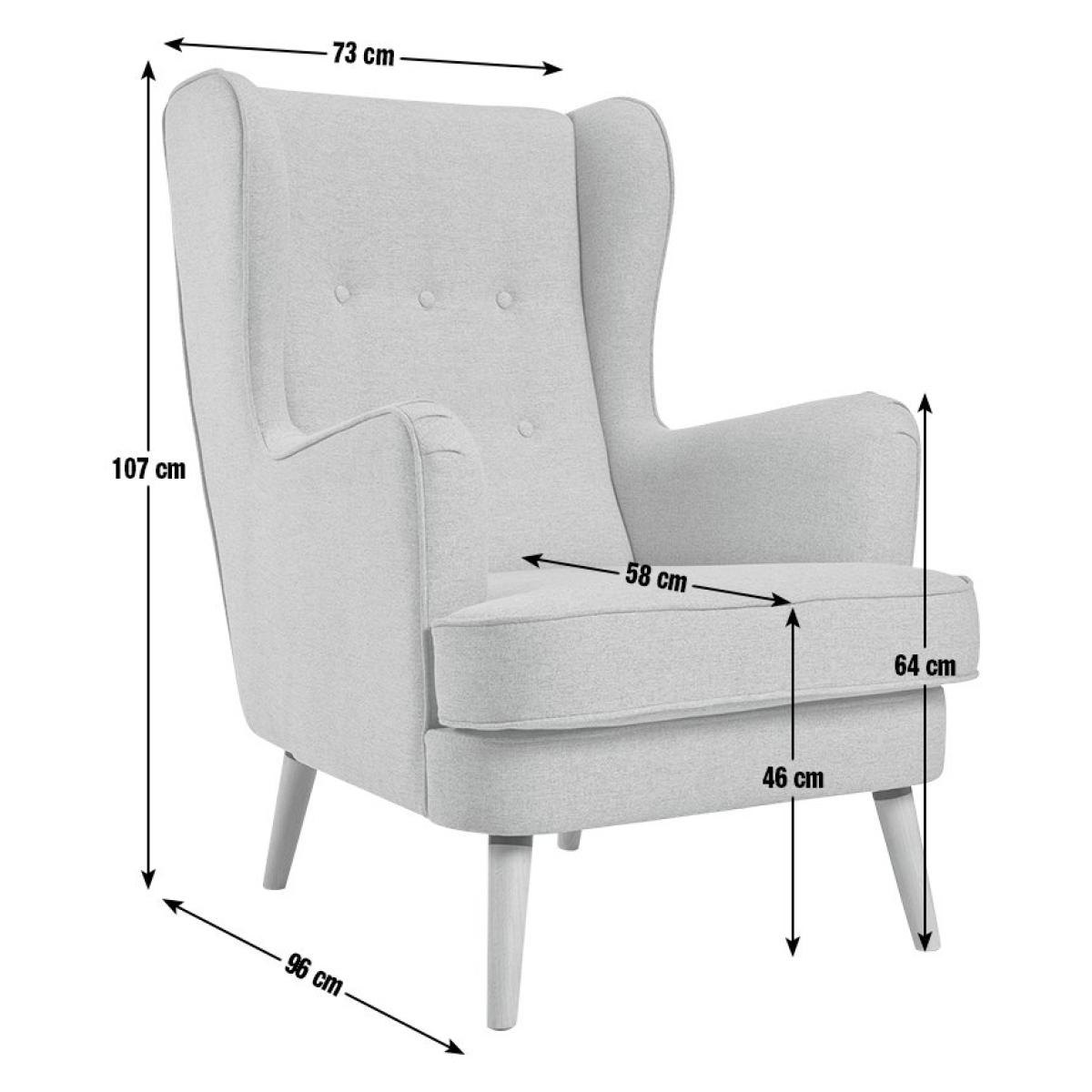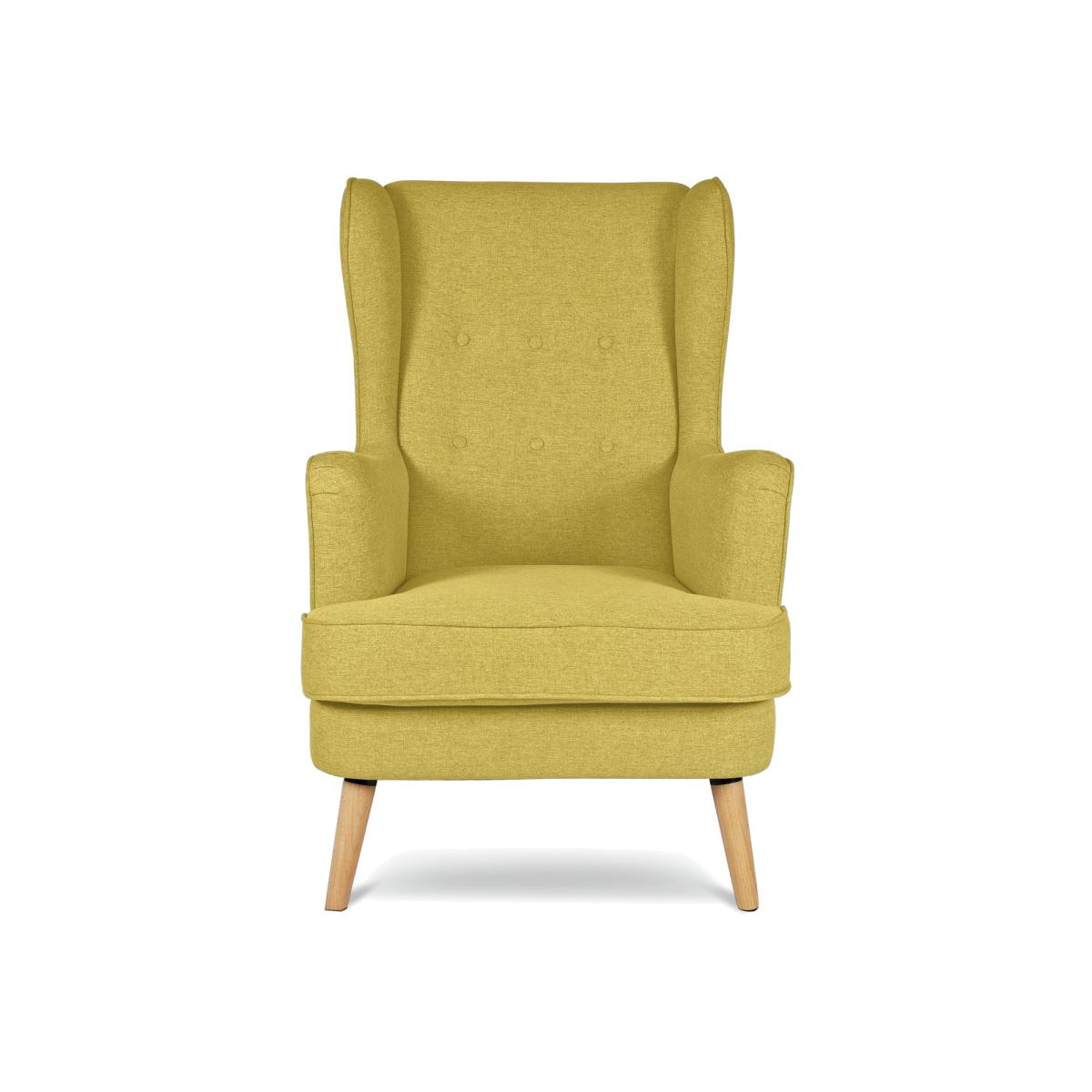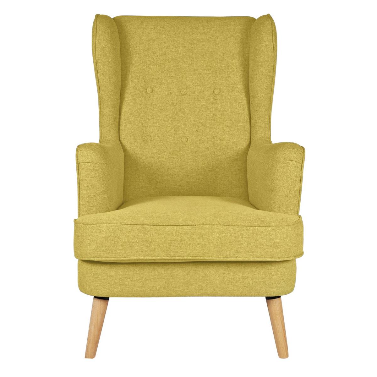 High back, high style. Comfortable Callie has those vintage vibes you'd expect from a wingback chair, but with a modern twist. There's that classic button back detailing and ruching on the arms for textural appeal. On the contemporary side are those scandi-esque legs and the striking coloured fabric. A perfectly relaxing design. Part of the Callie collection. recliner. Material: Made from 100% polyester. Wooden feet. Fixed seat with foam fibre wrap filling. Fixed cushion(s) with foam fibre wrap filling. Free fabric swatch available on this line. Dimensions: Size H107, W73, D96cm. Floor to seat height: 46cm. Depth of seat: 58cm. Height of seat back: 60cm. Width of seating area between arms: 73cm. Height of arm rest: 64cm. Weight 24.8kg. Professional clean only. Self-assembly - just add feet. Maximum individual user weight 110kg. Packaged dimensions: Package size H56, W87, D73cm. FSC certified meaning the materials used for this product are responsibly sourced. General information: Manufacturer's 10 year frame guarantee.