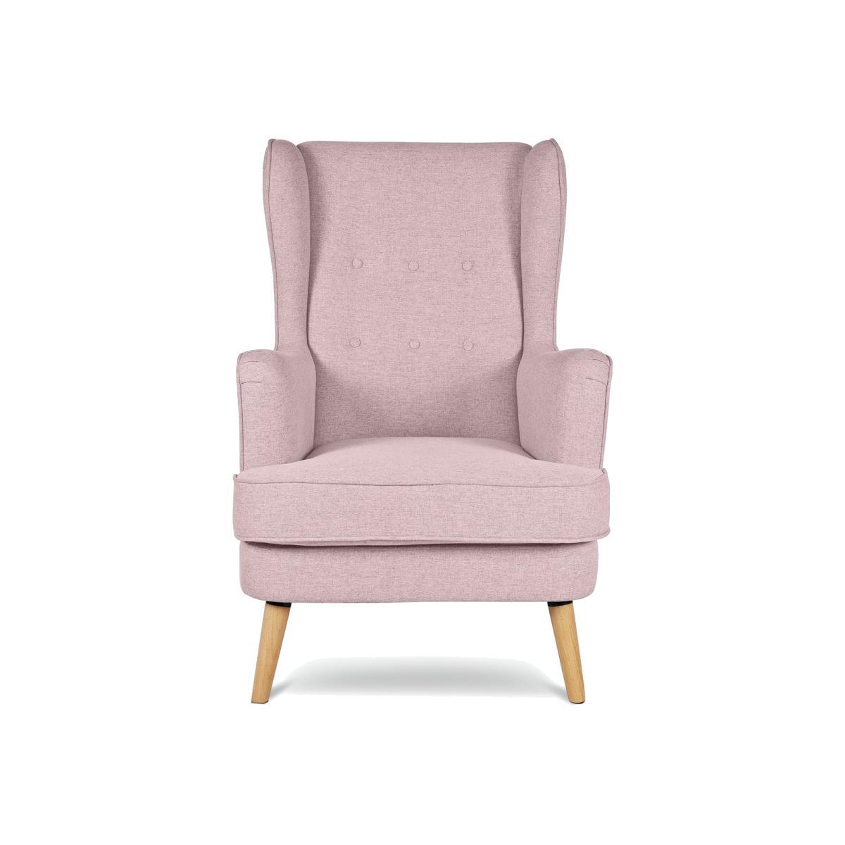 High back, high style. Think how many chapters you could plough through sitting comfortably on Callie. It has those vintage vibes you'd expect from a wingback chair, but with a modern twist. There's that classic button back detailing and ruching on the arms for textural appeal. The contemporary comes into play with those Scandi-look legs and the gentle blush pink fabric. Another chapter? Go on then. This chair comes with a 10 year frame guarantee. We'll cover manufacturing faults on frames, feet, arms, internal springs or webbing. We can arrange a repair, replacement, exchange or refund. Part of the Callie collection. Material:Made from 100% polyester. Wooden feet. Removable seat with foam fibre wrap filling. Fixed cushion(s). Dimensions: Size H107, W73, D96cm. Floor to seat height: 46cm. Depth of seat: 58cm. Height of seat back: 70cm. Width of seating area between arms: 50cm. Height of arm rest: 67cm. Weight 20kg. Dry clean only. Plump cushions regularly to maintain shape. Minimal assembly - just add feet. Maximum individual user weight 100kg. Packaged dimensions:Package size H91, W92, D76cm. General information:We are excited to be welcoming some of our favourite HOME products into the Habitat range. Your product may arrive in Habitat or HOME packaging. Manufacturer's 10 year frame guarantee.