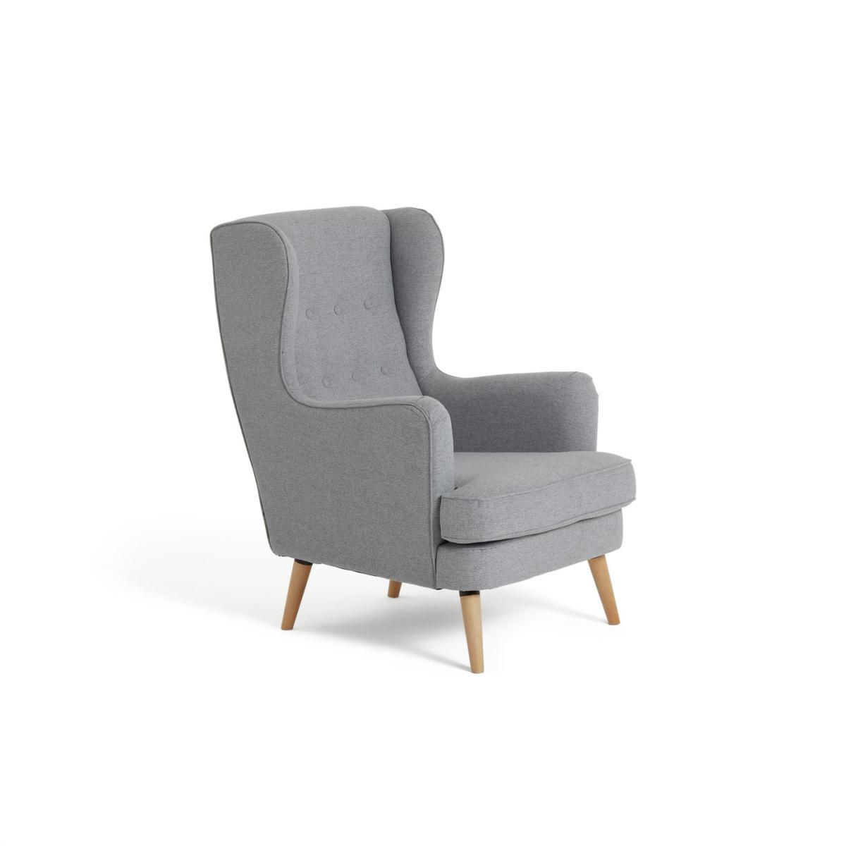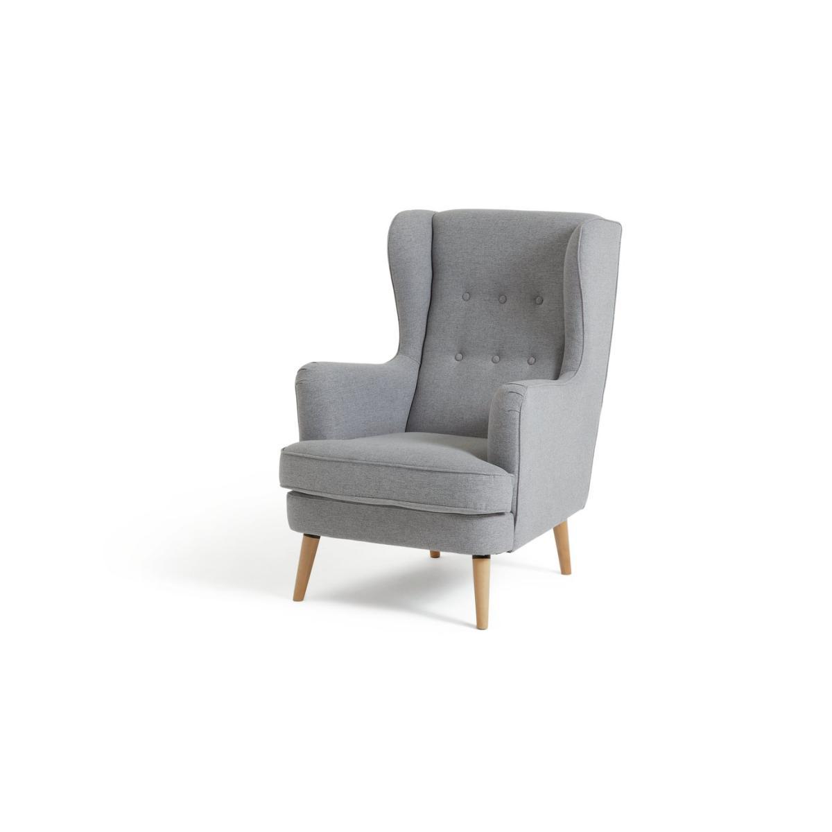 High back, high style. Think how many chapters you could plough through sitting comfortably on Callie. It has those vintage vibes you'd expect from a wingback chair, but with a modern twist. There's that classic button back detailing and ruching on the arms for textural appeal. The contemporary comes into play with those Scandi-look legs and the smart light grey fabric. Another chapter? Go on then. This chair comes with a 10 year frame guarantee. We'll cover manufacturing faults on frames, feet, arms, internal springs or webbing. We can arrange a repair, replacement, exchange or refund. Part of the Callie collection. Material:Made from 100% polyester. Wooden feet. Removable seat with foam fibre wrap filling. Fixed cushion(s). Free fabric swatch available on this line. Dimensions: Size H107, W73, D96cm. Floor to seat height: 46cm. Depth of seat: 58cm. Height of seat back: 70cm. Width of seating area between arms: 50cm. Height of arm rest: 67cm. Weight 20kg. Dry clean only. Plump cushions regularly to maintain shape. Minimal assembly - just add feet. Maximum individual user weight 100kg. Packaged dimensions:Package size H91, W92, D76cm. General information:We are excited to be welcoming some of our favourite HOME products into the Habitat range. Your product may arrive in Habitat or HOME packaging. Manufacturer's 10 year frame guarantee.