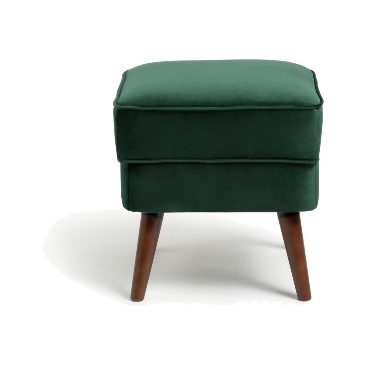 Shoes off. Feet up. Ahhhh! This glorious footstool can't help but be the centre of attention. Rich Forest Green fabric injects a delightful dash of colour to your living room. Striking Scandi-look legs and soft velvet upholstery make it thoroughly pleasing on the eye. Plays many roles, as a book rest, a tea tray holder, or a spare seat for little people. It's the perfect finishing touch you were looking for.