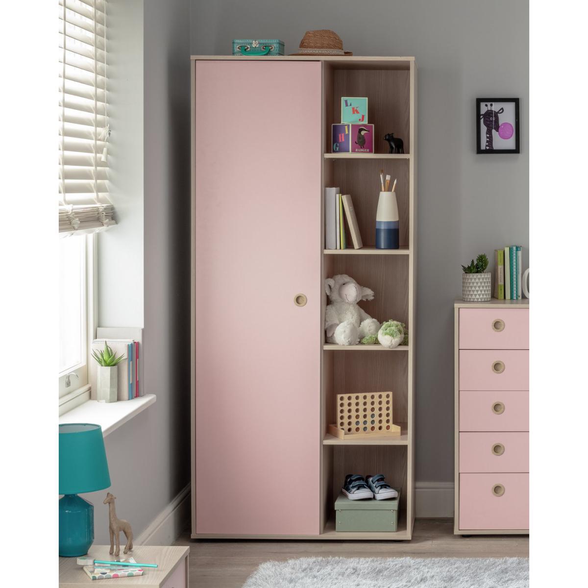 Habitat Camden 1 Door Shelved Wardrobe - Pink and Acacia