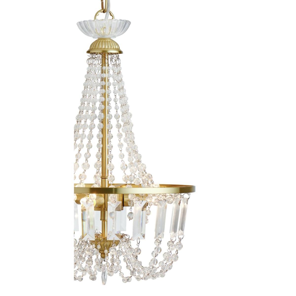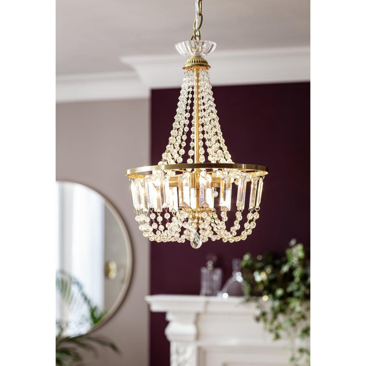 A touch of grandeur. The Capella Empire chandelier adds instant wow-factor to your home. Whether in the hallway, dining, or living room, this glamorous brushed brass creation looks sophisticated and timeless. The hanging glass beads refract light, creating pattern and texture, while emitting a warm and inviting glow. Hang it in the hallway or over a dining table, the drop chain means you can adjust the height to suit the space. Welcome Capella into your home for instant glamour.