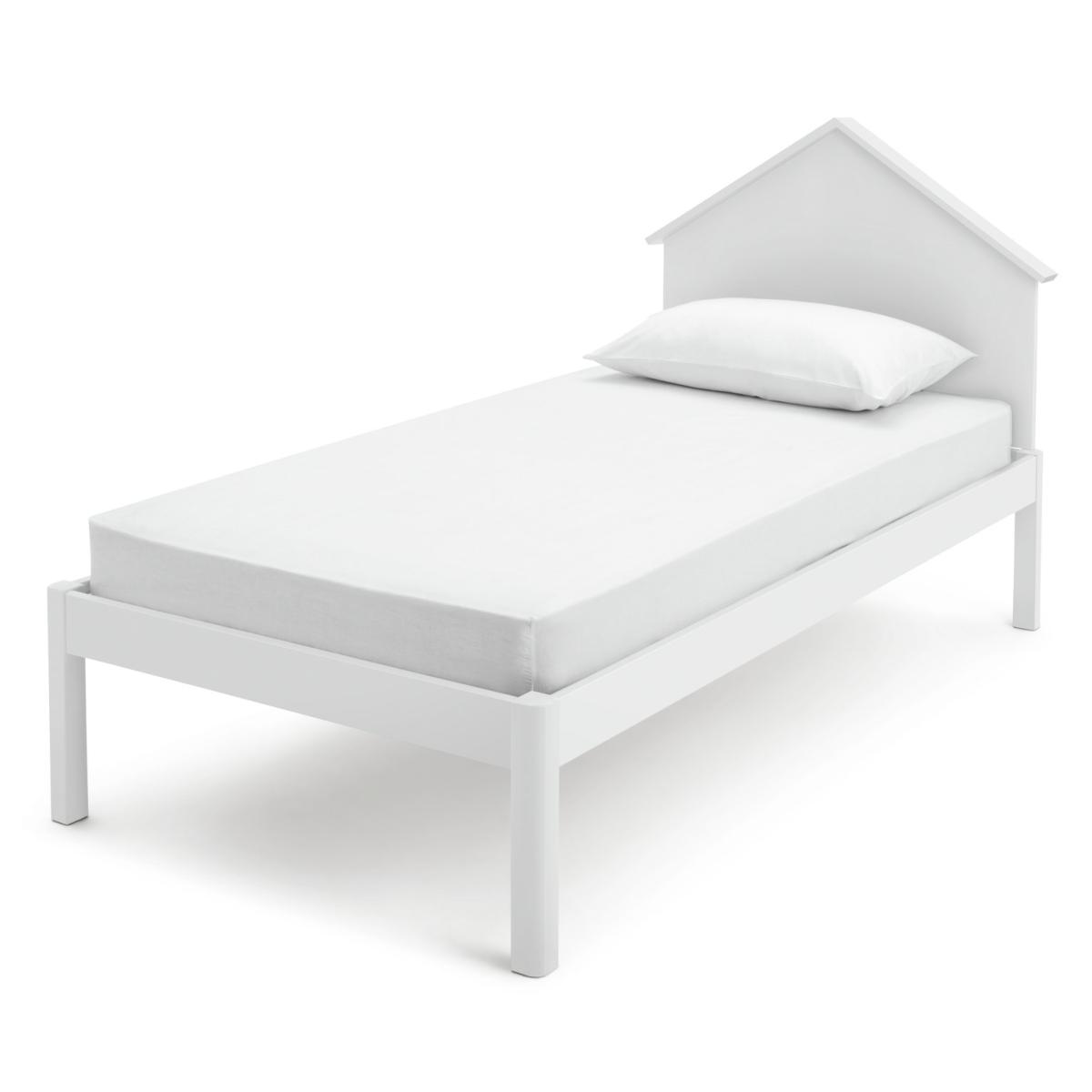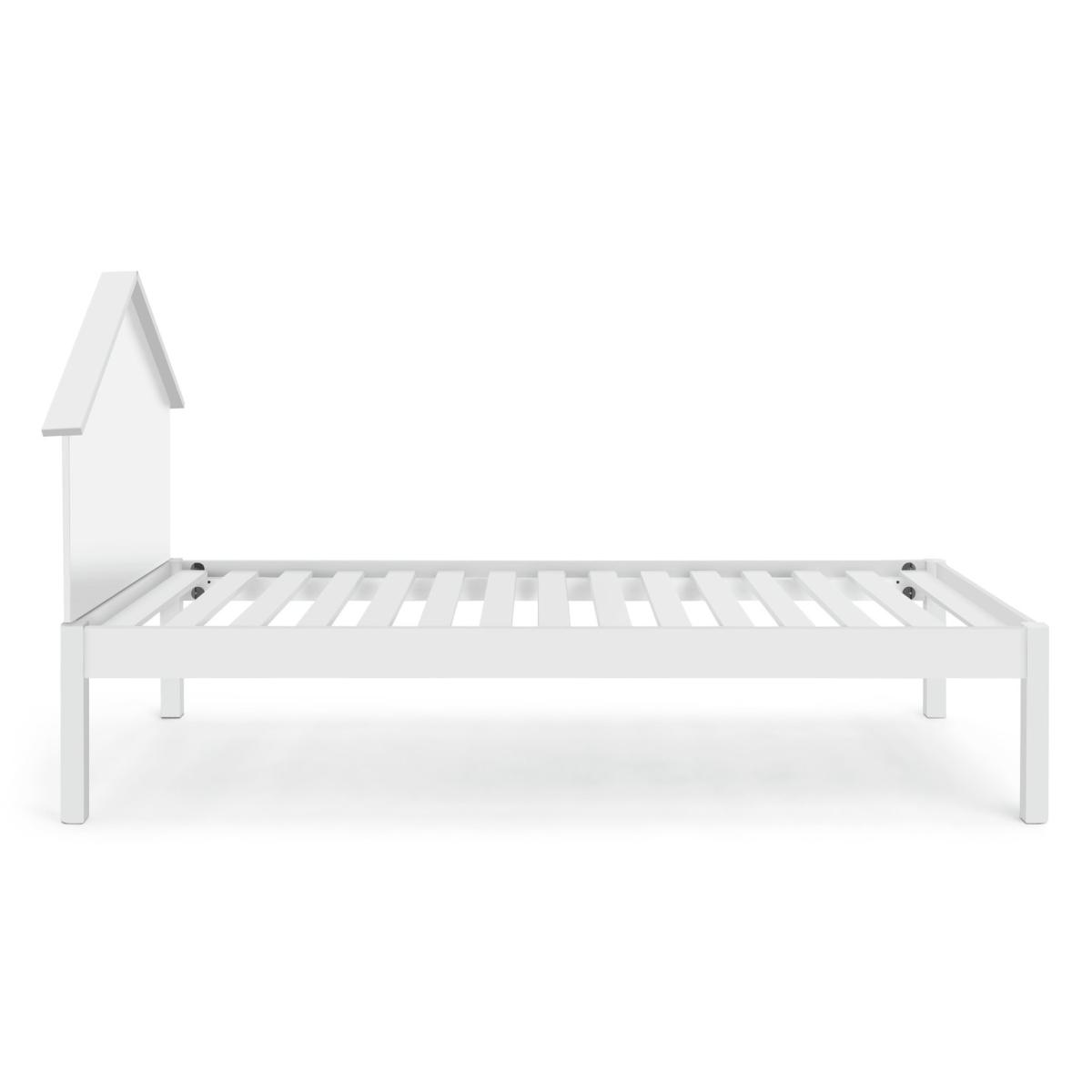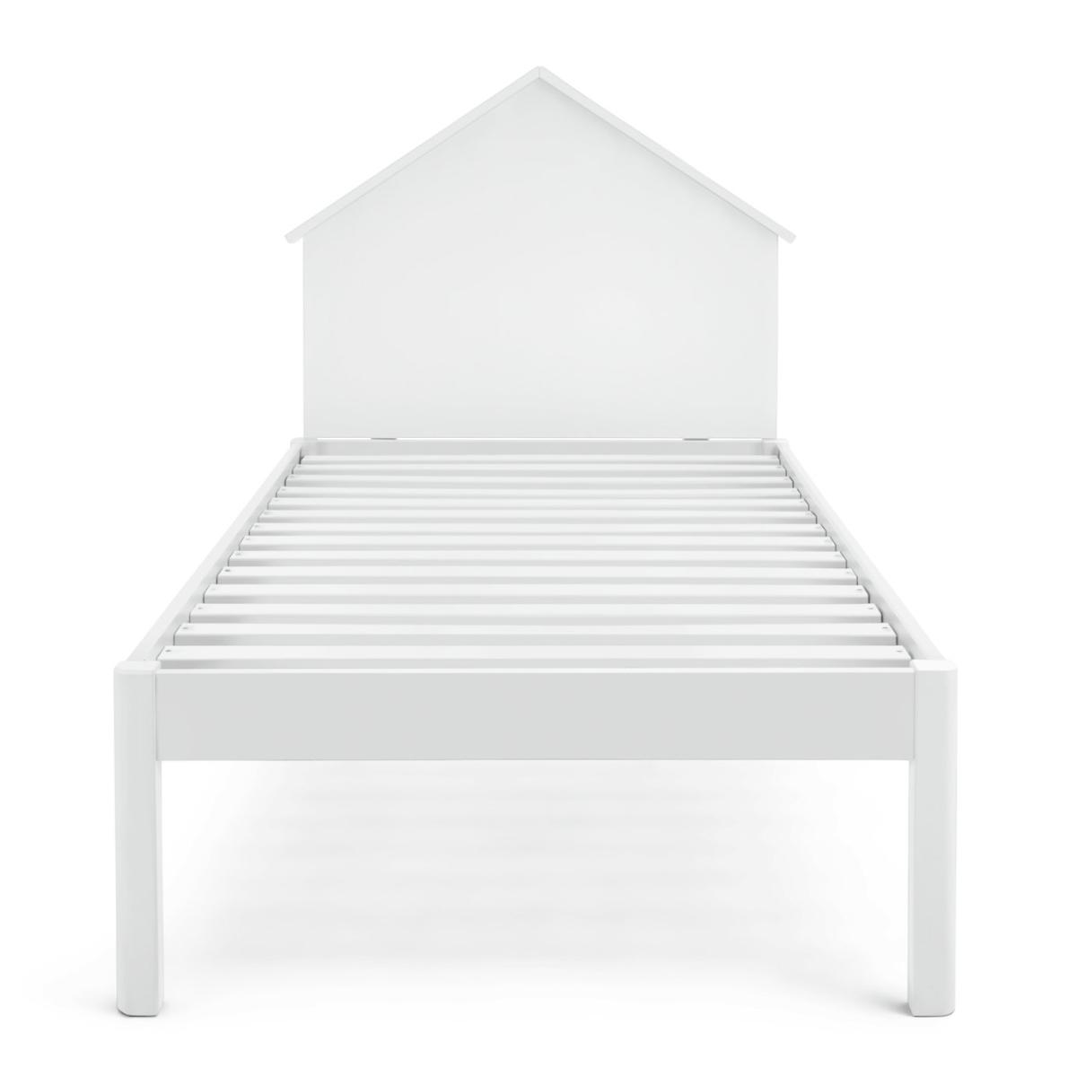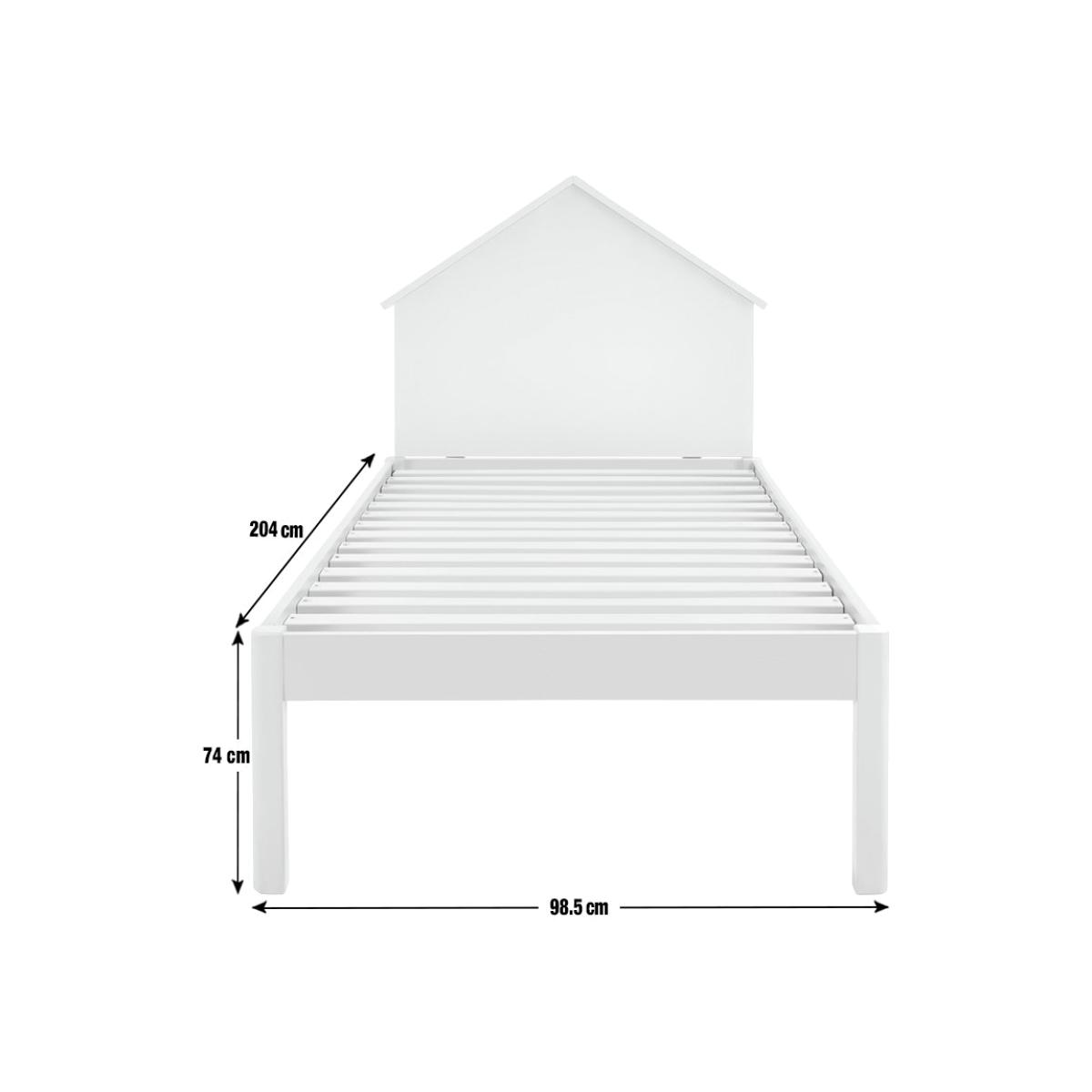 Mi casa, su casa. Kids will love the cute house headboard on this white painted pine bedframe. It turns an essential piece of furniture into a fun feature. The legs have child friendly rounded edges, and the base has wooden slats to let your mattress breathe. Plus, the platform style means plenty of room underneath for tucking away storage boxes of toys or linen. Part of the Casa collection. Bed frame: Single bed. White bed with a solid wood frame. Packed flat - 2 people recommended. Mattress: (not included). Dimensions: Frame size L204, W41.5, H98.5cm. Package dimensions: Package 1 size H5, W96, D76cm. Package 2 size H18.2, W100.3, D45.4cm. Package 3 size H5.4, W193.8, D20cm. General information: Manufacturer's 1 year guarantee.