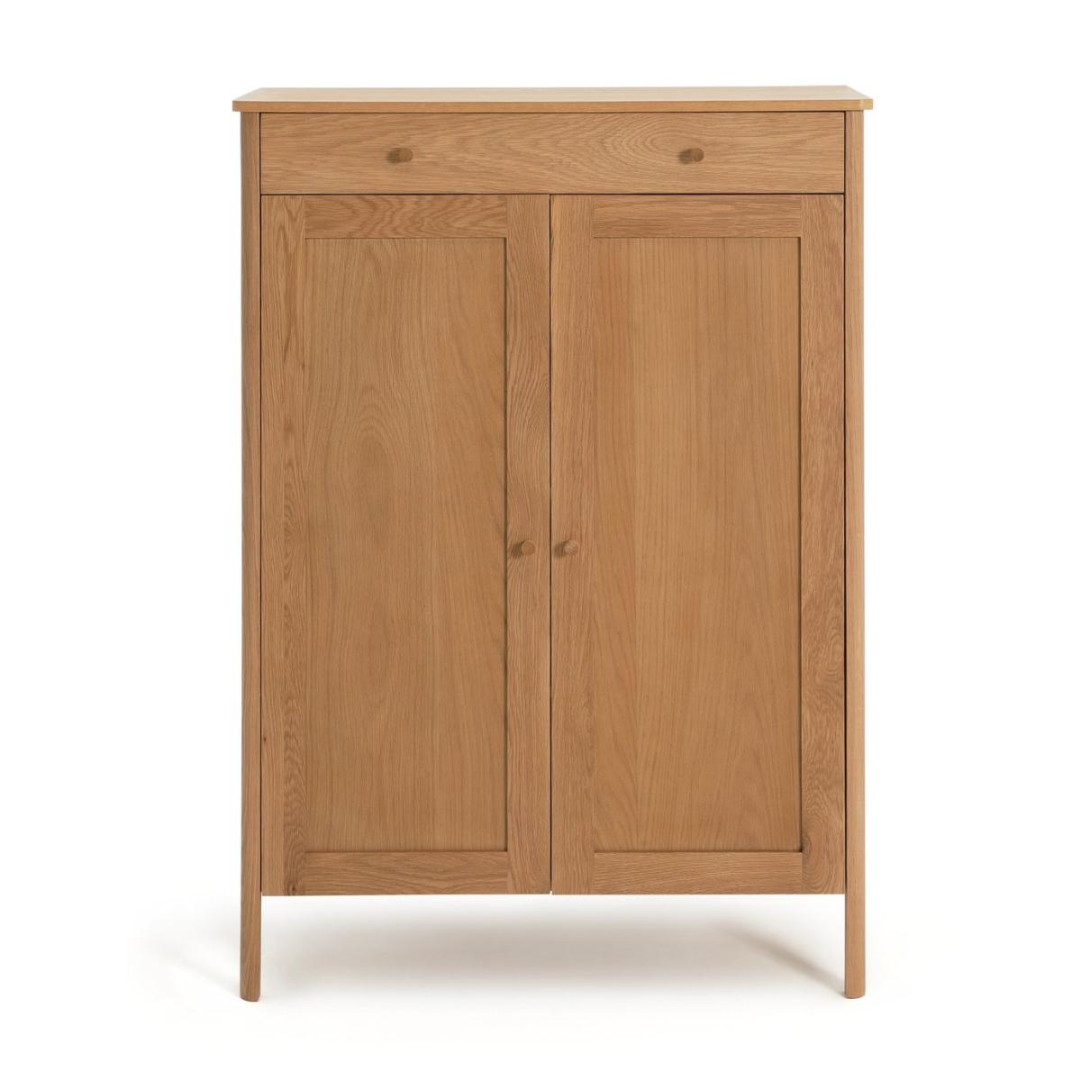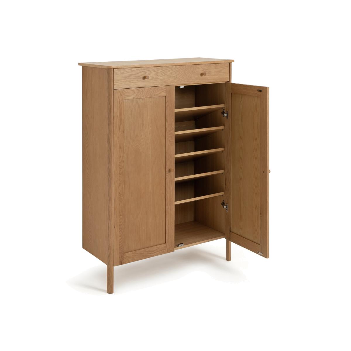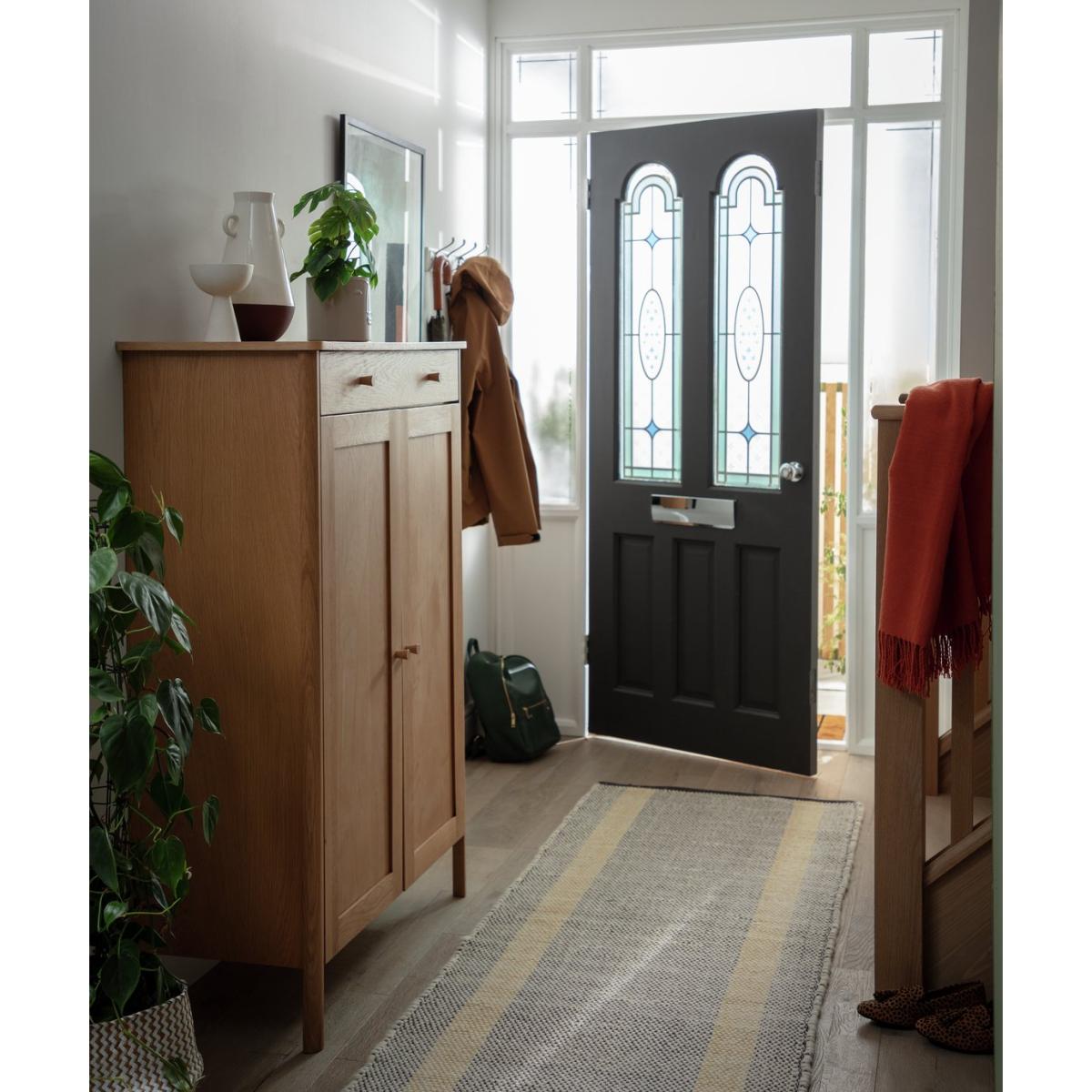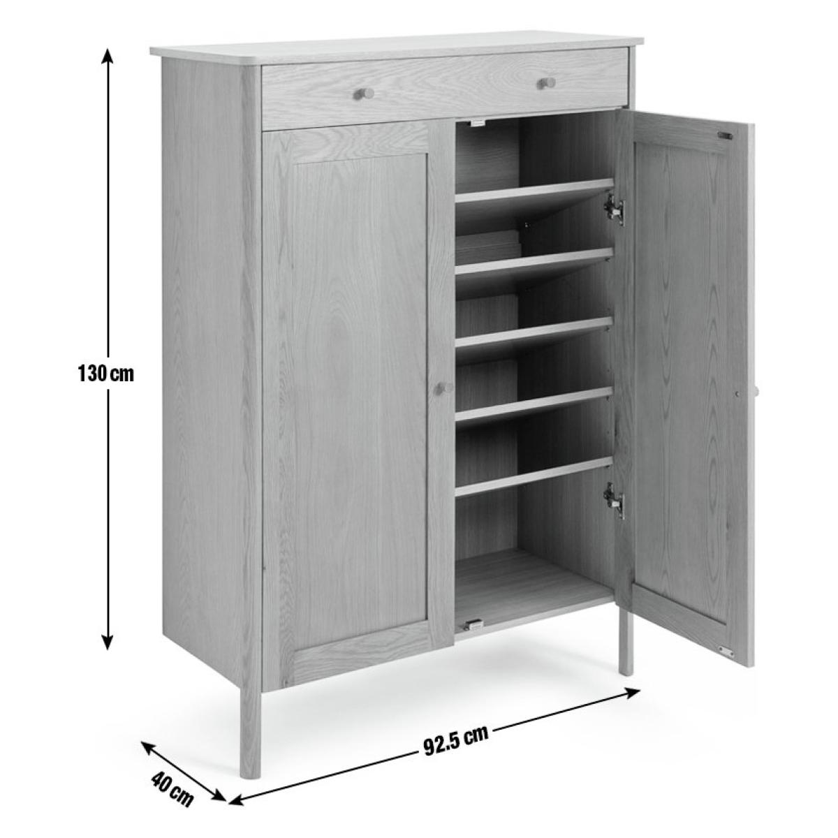 Footwear on the floor, no more. Store up to 15 pairs nice and neat in Cassidy, our shoe storage cabinet. Five slanted fixed shelves, give bags of room for sandals to sneakers. Head lower down and you'll find the extra high boot and welly space. Room for socks, shoe polish and keys is also top drawer – literally. In a smart wood veneer on the outside, we think this is a hallway or kitchen must have. Pop on a faux plant or quirky lamp and disguise your storage with style. Made from wood and MDF with a painted finish. Size H130, W92.5, D40cm. Weight 47.15kg. Stores an average of 15 pairs of shoes. 5 fixed shelves. For wall mounting only. Self-assembly. If this product is over 60cm high it must be securely attached to the wall to prevent overturning. Package Dimensions: Package 1 dimensions: H27, W54, D147cm. Package 1 weight: 50.15kg. FSC certified meaning the materials used for this product are responsibly sourced. General Information: We are excited to be welcoming some of our favourite HOME products into the Habitat range. Your product may arrive in Habitat or HOME packaging.