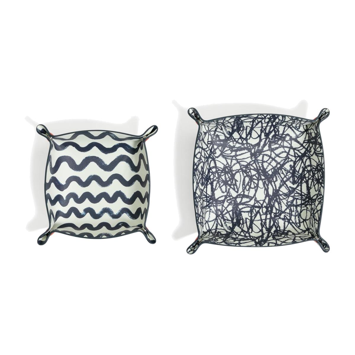 Misplaced keys? Forget about it. Keep important bits and bobs in one place with our jazzy pair of catchall trays. With their contemporary squiggle designs and quirky shape, they're hard to miss. And in 2 sizes, they're versatile too. Pop on a sideboard for things like keys, change and earrings. You ready to get a wiggle on? Love this monochrome look? Style up your space with contemporary cushions, throws and vases in our collection. Size H23.5, W23.5, D6cm.