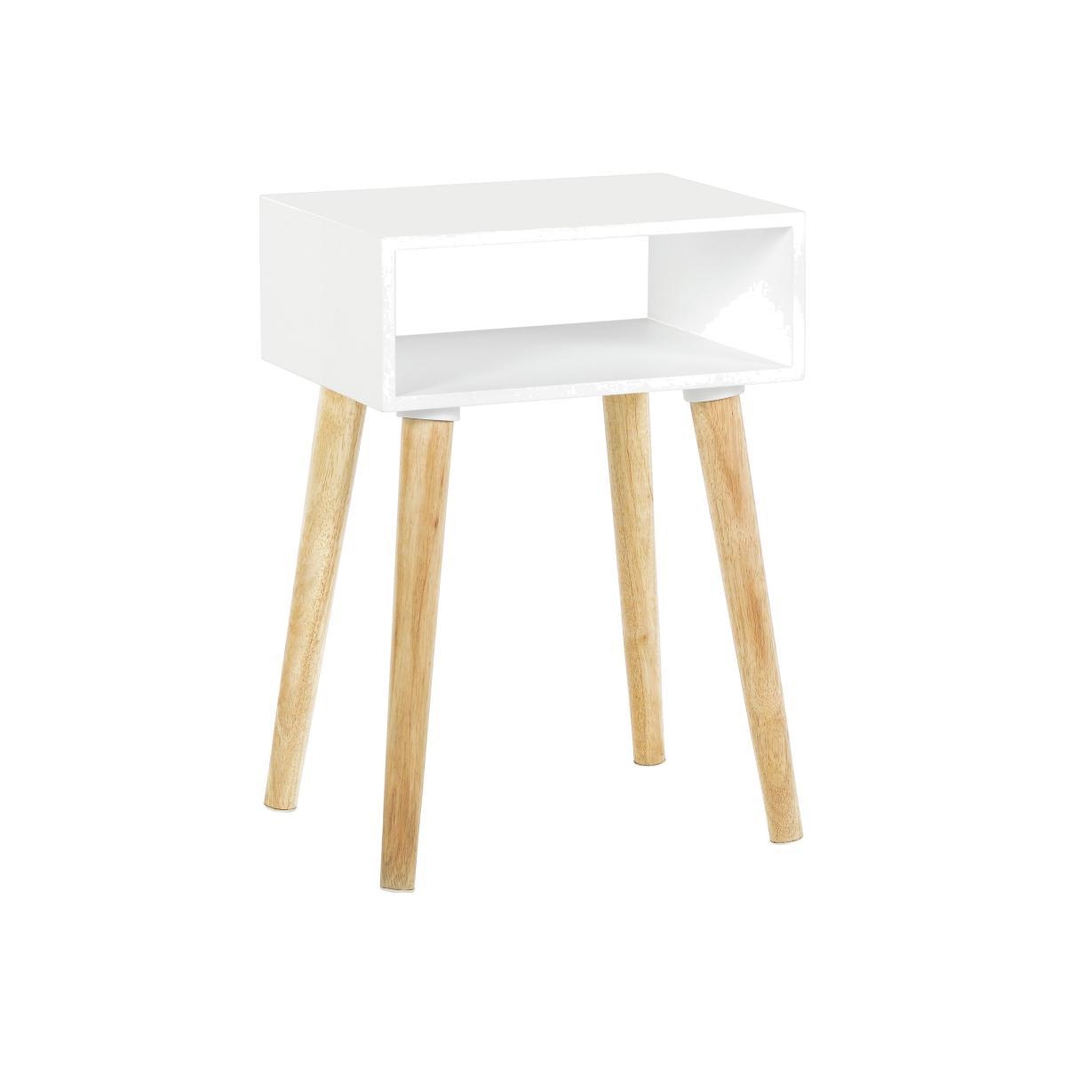 This side table strikes a great balance between functional simplicity and modern style, making it a versatile addition to various interiors. I love the clean, white finish combined with natural wooden legs, which helps it fit seamlessly into contemporary, Scandinavian, or minimalist spaces. It's perfect for bedside use, offering a handy surface for a lamp, book, or a glass of water, while its compact size makes it suitable for smaller rooms or alongside sofas. For styling tips, consider pairing it with textured throws or layered textiles nearby, and adding a small plant or decorative object on top to inject personality. Its neutral palette ensures it remains unobtrusive, while the natural wood adds warmth to an otherwise sleek look.
