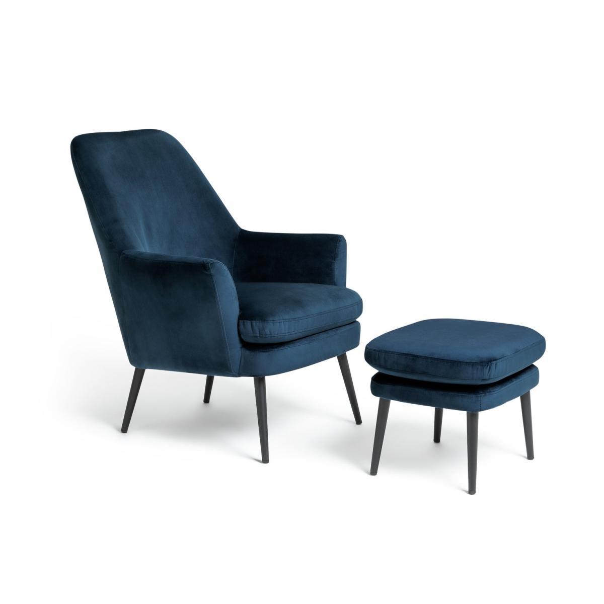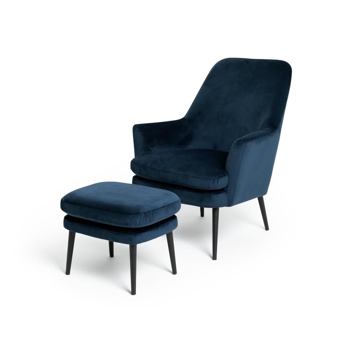 Habitat Celine Velvet High Back Chair & Footstool - Navy