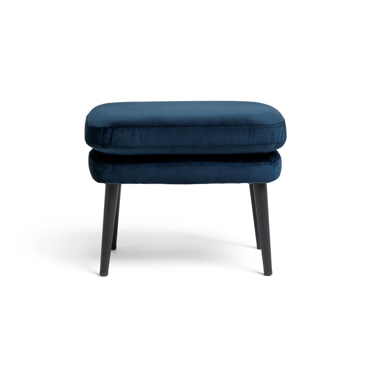 Sit, put your feet up you deserve this. In sumptuous blue velvet our high back chair and matching footstool make a relaxing pair. With a modern streamline design its contemporary comfort. Splayed metal legs add to the luxe look. Imagine sinking into the thickly padded cushions. Feels good, eh? Stretch out in style with Celine.