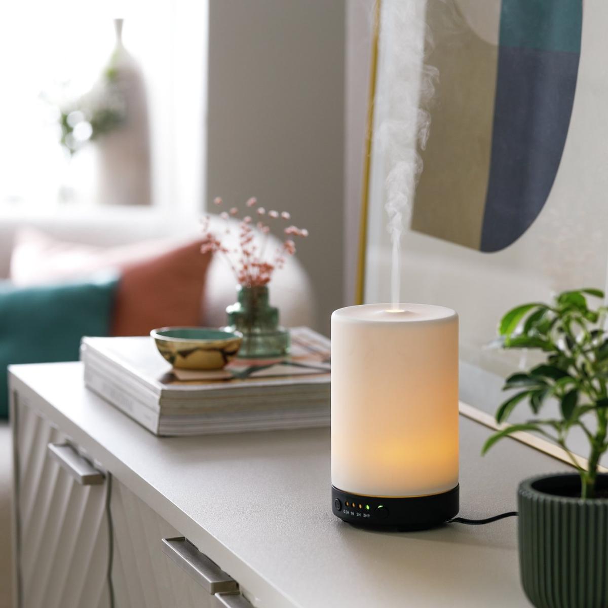 I love this diffuser for its minimalist, clean design, which complements a variety of interior styles, from Scandi to contemporary. Its ceramic finish adds a subtle tactile quality that works well in serene, uncluttered spaces, and it’s versatile enough to sit comfortably on a bedside table, in the kitchen, or on a sideboard. For styling, consider pairing it with natural textures like wood or linen to create a calming atmosphere. Practical tips include placing it away from direct sunlight to preserve its finish, and ensuring it’s within easy reach for regular refilling or changing scents. Overall, it’s a practical yet stylish addition that enhances any room with both function and understated elegance.