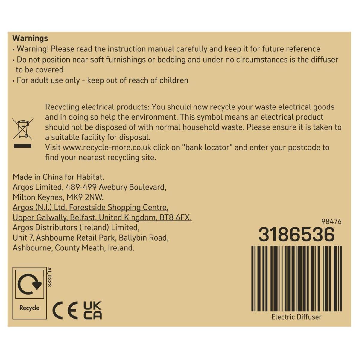 Plug in and relax with our ceramic electric diffuser. Add a few drops of essential oil to enjoy delicately perfumed mist all around. What a mood changer. Features a 4-mist timer so you can enjoy as much or as little of your favourite fragrance, anytime anywhere. 100ml capacity. Size H15.5, W9.2, D9.2cm.