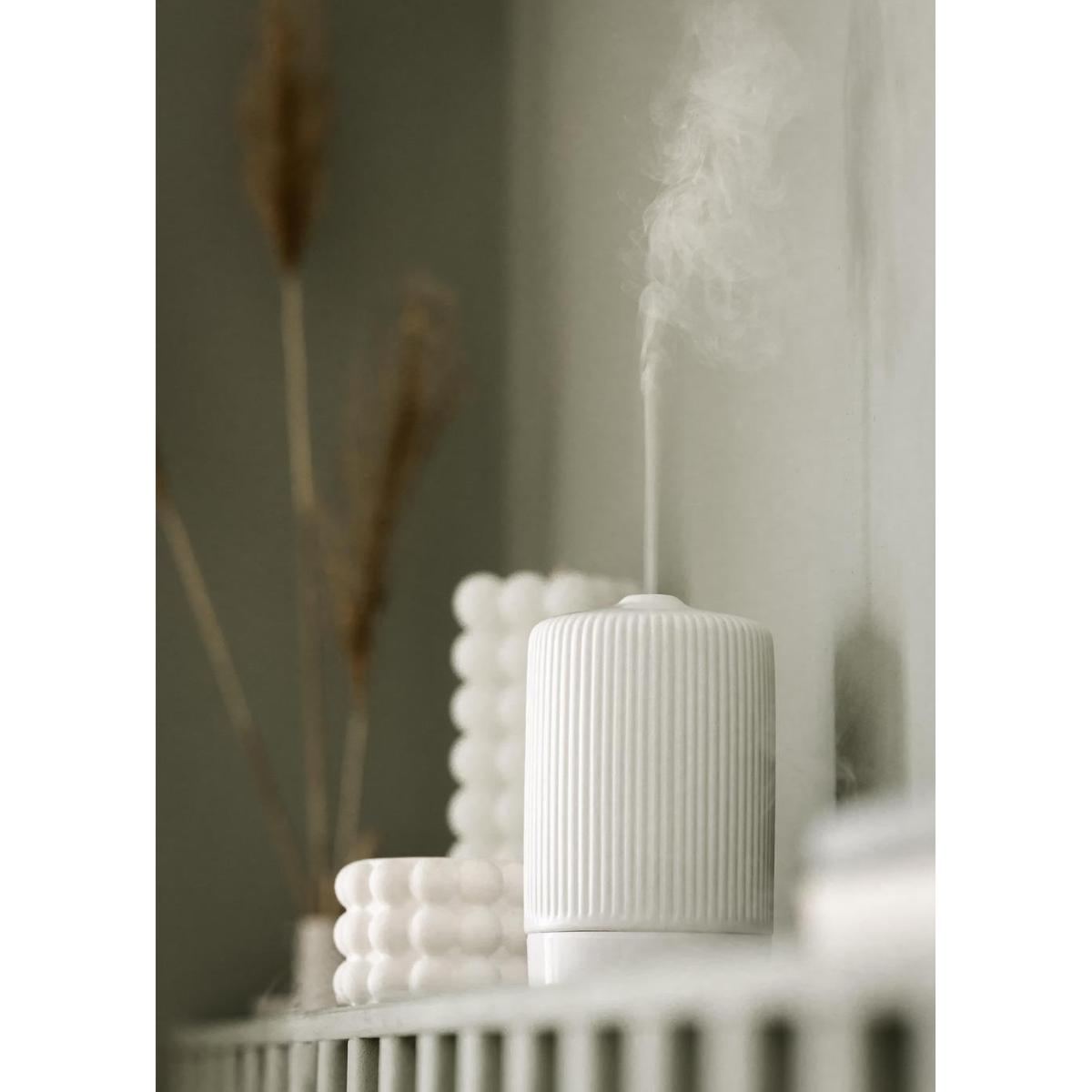 I love this diffuser for its clean, minimalist design that works beautifully in both modern and Scandinavian interiors. Its understated ceramic finish adds a touch of elegance without overpowering the space, making it ideal for bedrooms, living rooms, or even home offices. For styling, pair it with natural elements like wooden trays or woven baskets, and consider placing it near soft lighting or greenery for a calming vibe. Practical tips include using it to subtly enhance the atmosphere with essential oils, while its sleek look means it can sit comfortably on a bedside table or a sideboard without disrupting the overall decor. Very versatile and simple yet effective.