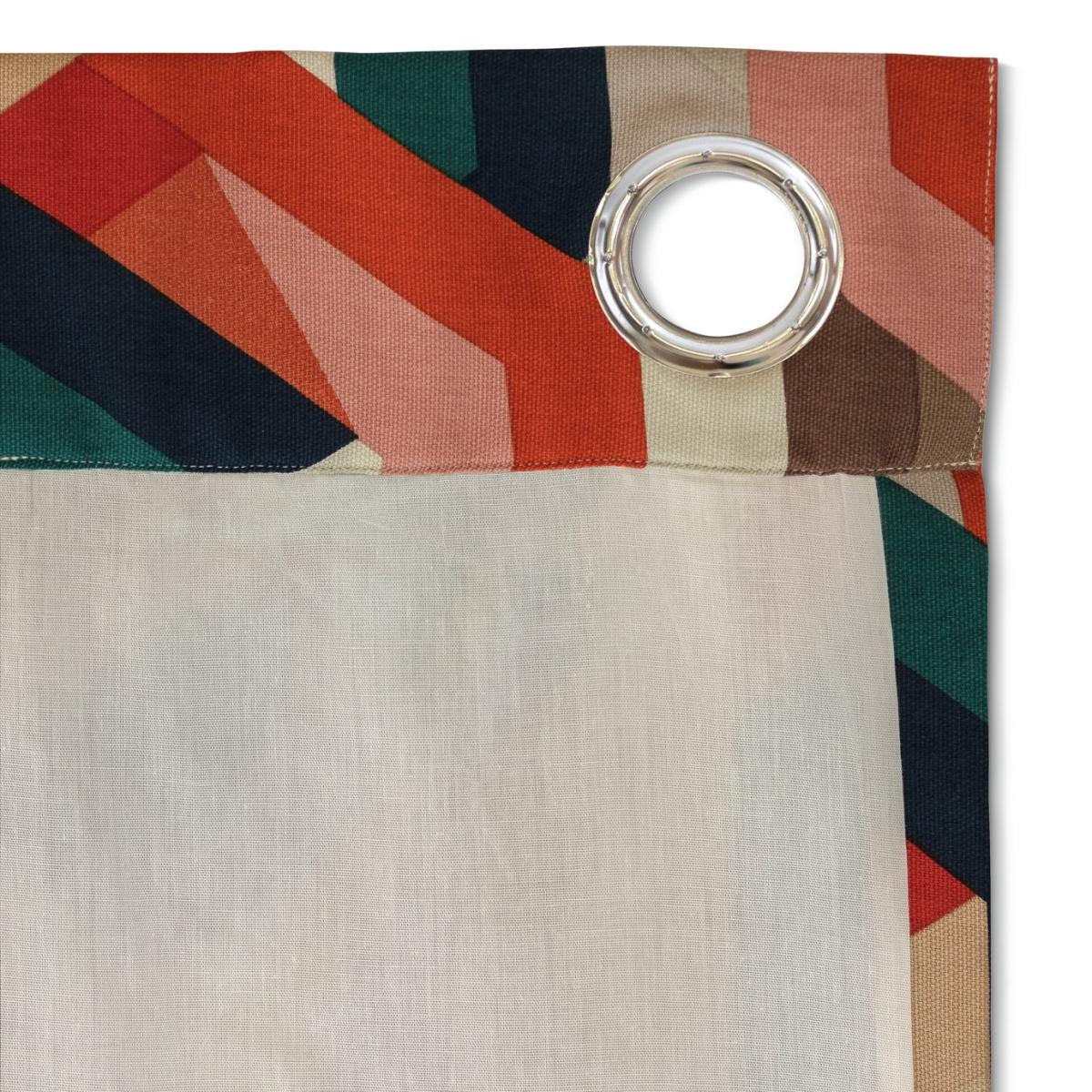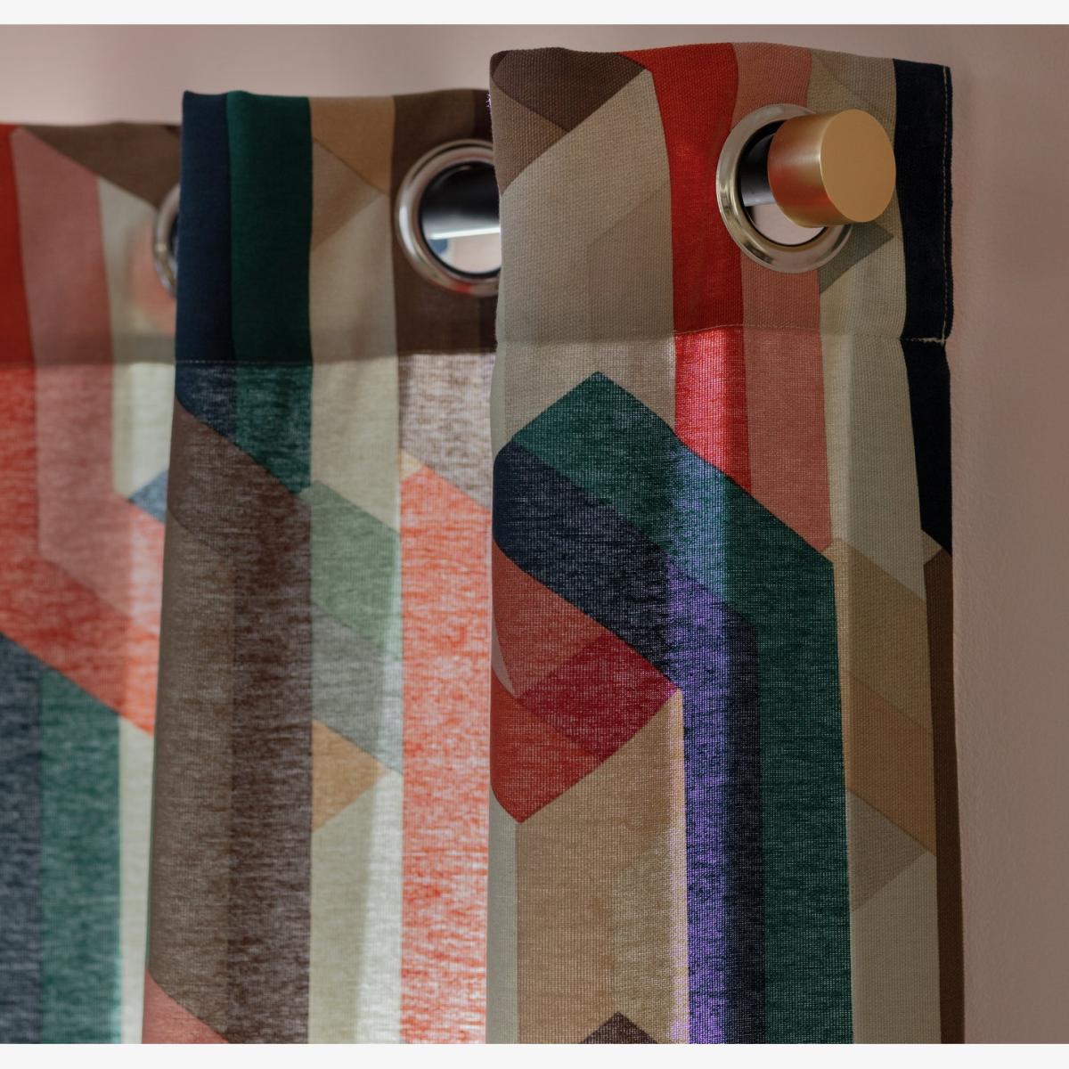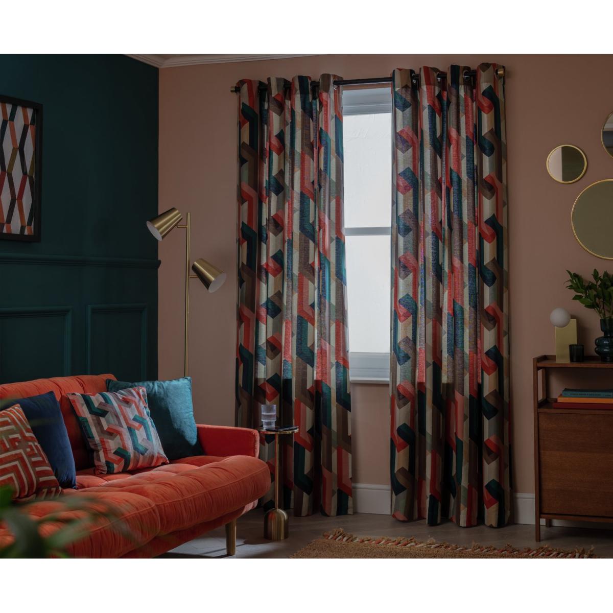 Want some window wow? Then choose our chain print, 3D geo curtains. Pop this pair on a pole, step back and admire. Oh yes. Made from 100% cotton with a half Panama weave the colourful design is standout gorgeous. Eye candy for the bedroom or lounge. Fully lined, they hang in soft luxurious folds from the stainless steel eyelets. And they are washable. How fab is that. Liven up your home with more colourful accessories. Check out our bright range of cushions, rugs, lamps and wall art. Multicoloured check Design. Silver Stainless Steel Eyelets. Features Fully lined. Made from 100% cotton. Lined. Lining made from 48% cotton and 52% polyester. Dimensions Size 116cm (46 inches) wide by 137cm (54 inches) drop. Eyelet diameter: 6cm. General information Contains one pair of curtains. Suitable for curtain poles. Curtain pole not included. Machine washable. General Information: We are excited to be welcoming some of our favourite HOME products into the Habitat range. Your product may arrive in Habitat or HOME packaging.