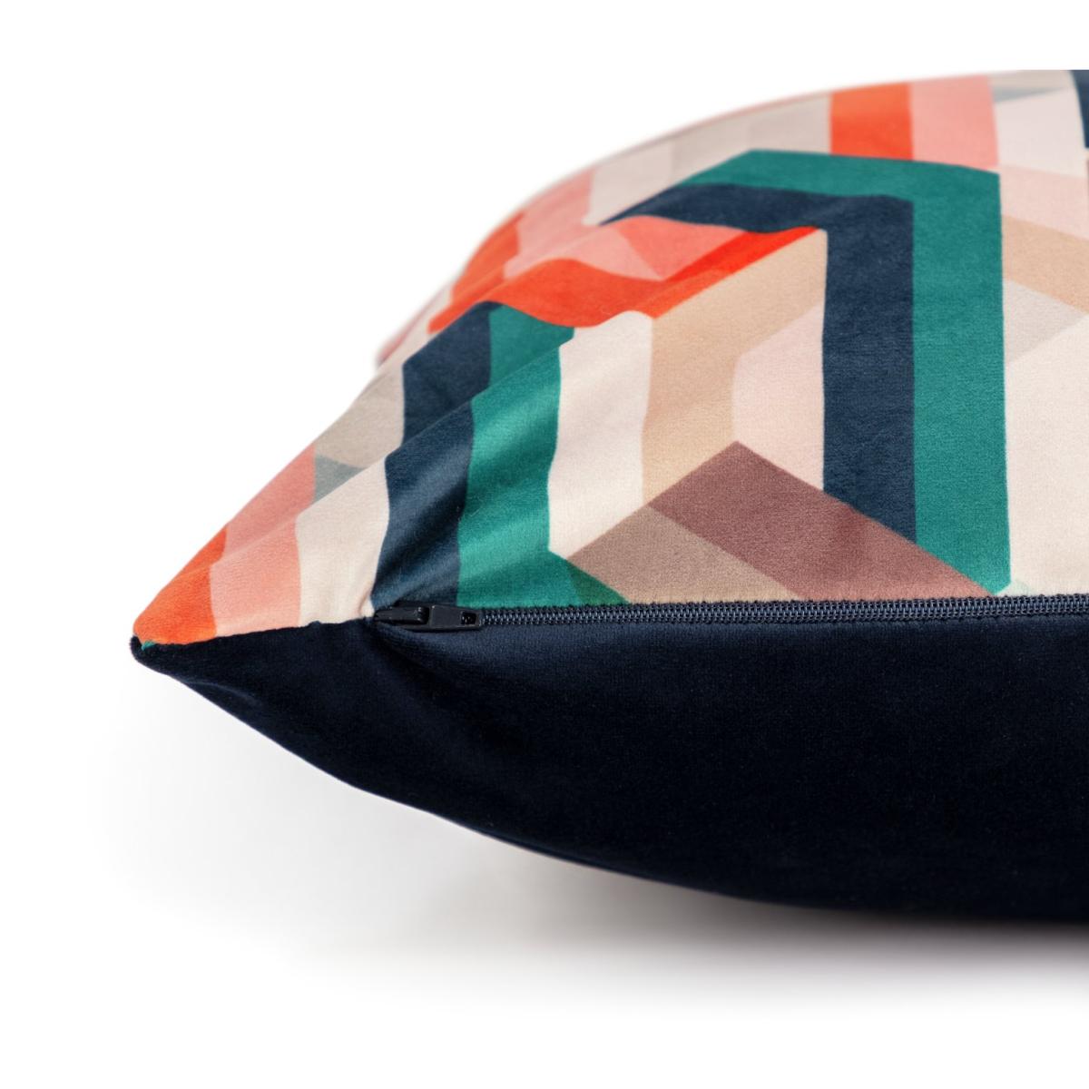 Want some wow? Then choose our chain print, 3D geo cushion as an accent piece. Plump it up and put it down. Oh yes. Eye candy for the sofa. Bright on the front side, plain navy on the backside, in rich luxurious velvet. Easy to keep looking good with its removable zip cover. Is one enough? Printed and Made in the UK. Fully sewn and stuffed cushion. Zip fastening. Cover 100% Polyester. Filling 100% Polyester. Size L43, W43cm. This cover is machine washable. Suitable for tumble drying.