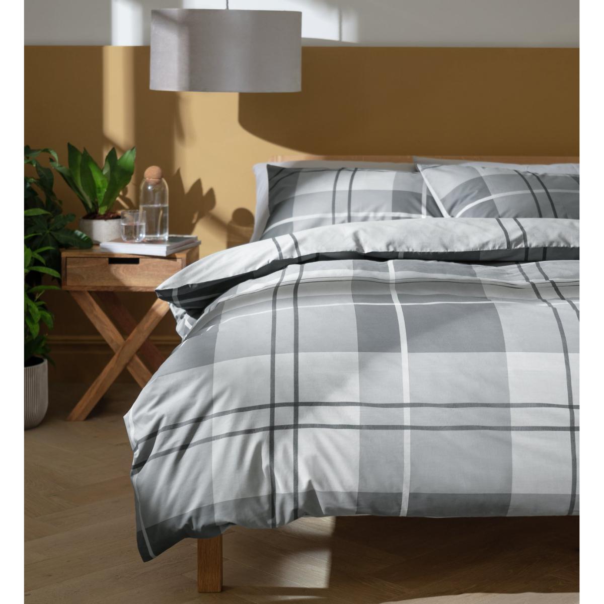Check in for a trip to dreamland with our soothing charcoal bedding set. The contemporary colourway gives the classic tartan print a modern twist. Just pick your side of the reversible design to suit. Dark check to complement your bedroom's chic country decor? Calm grey with horizontal stripes for understated elegance in the guest room? Soft to touch in easy care polycotton. Sweet dreams.