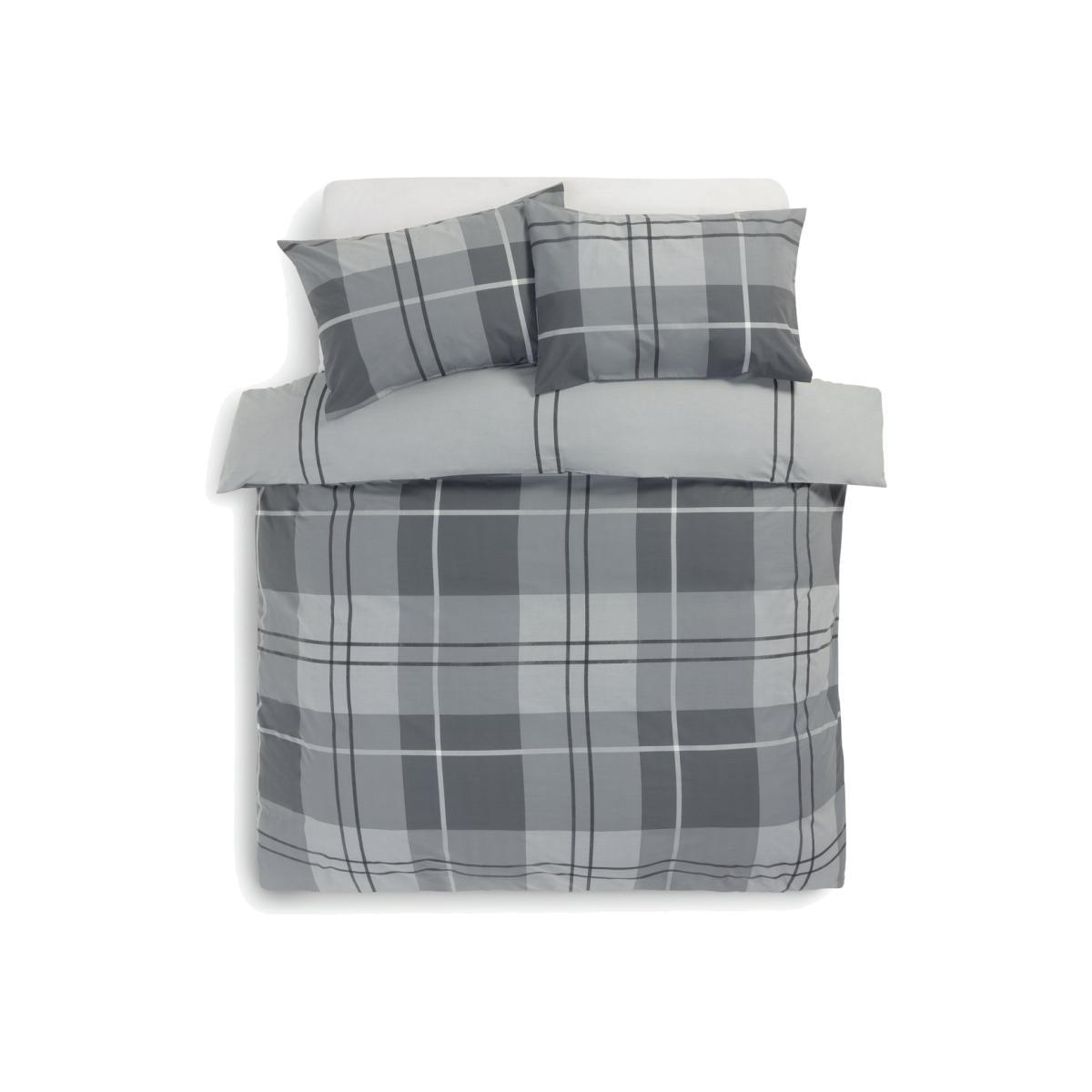 Check in for a trip to dreamland with our soothing charcoal bedding set. The contemporary colourway gives the classic tartan print a modern twist. Just pick your side of the reversible design to suit. Dark check to complement your bedroom's chic country decor? Calm grey with horizontal stripes for understated elegance in the guest room? Soft to touch in easy care polycotton. Sweet dreams.