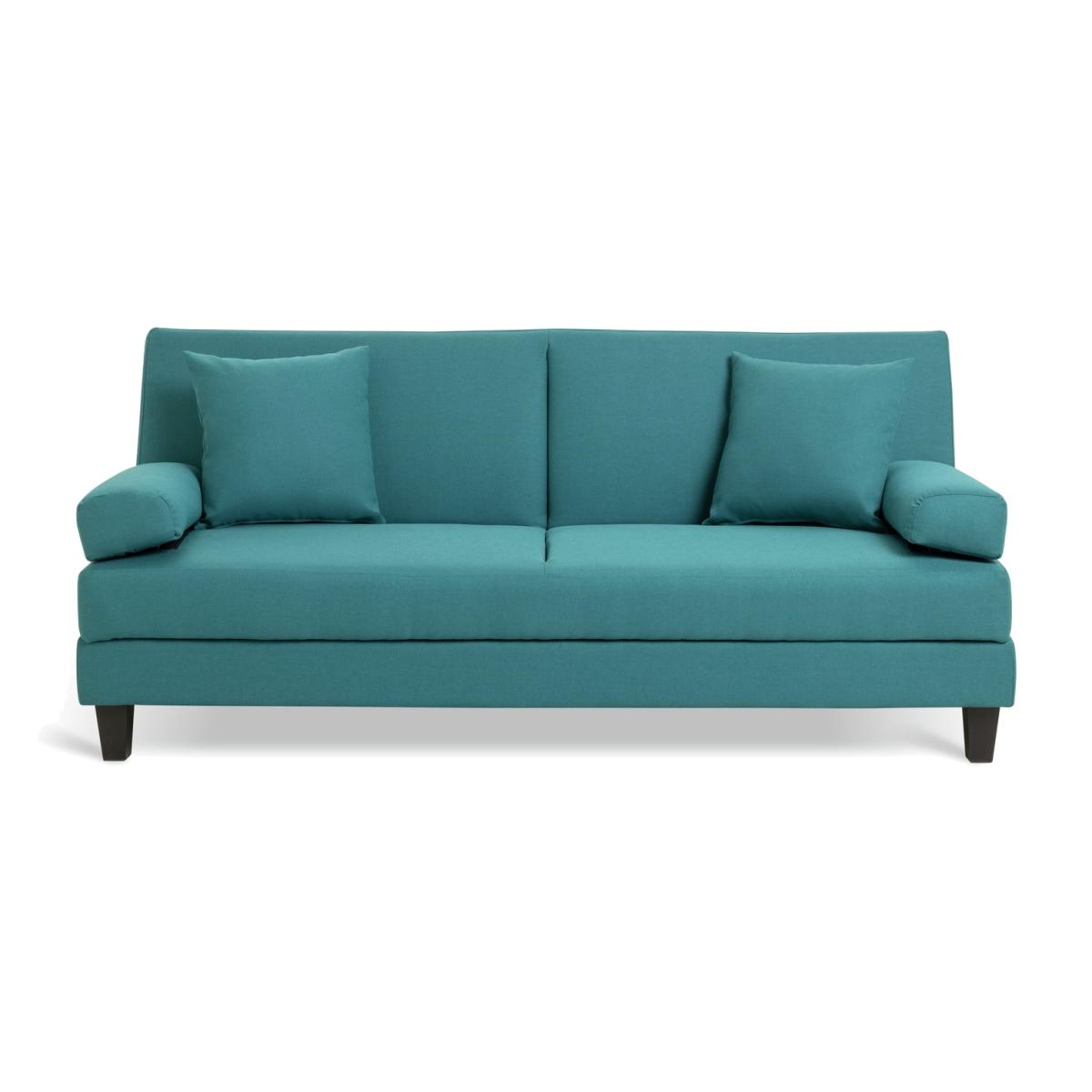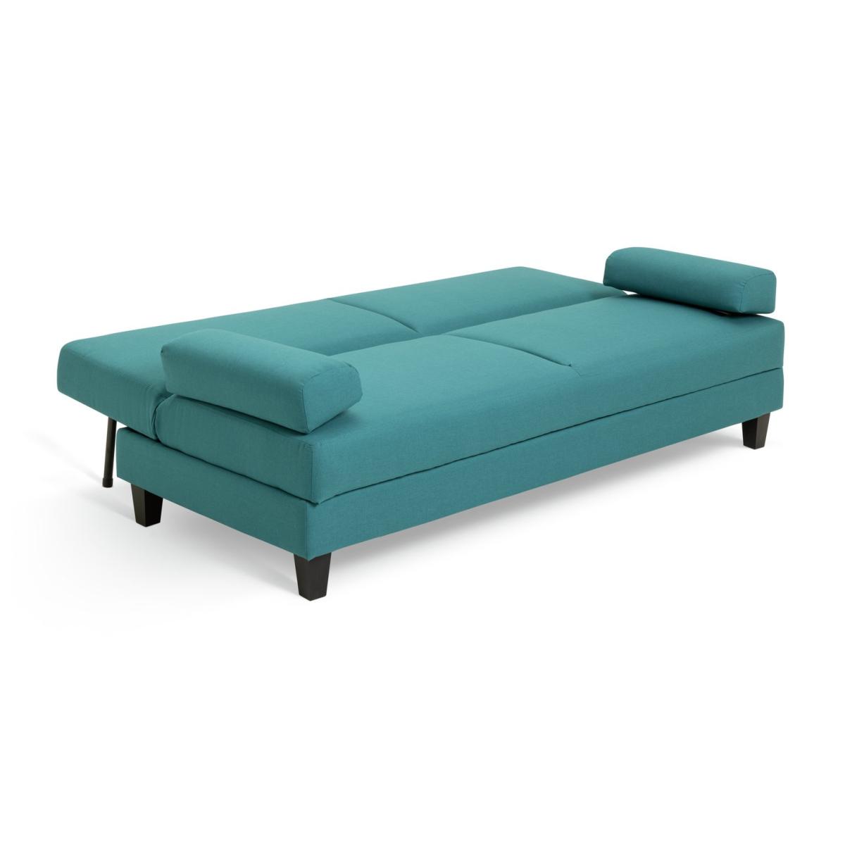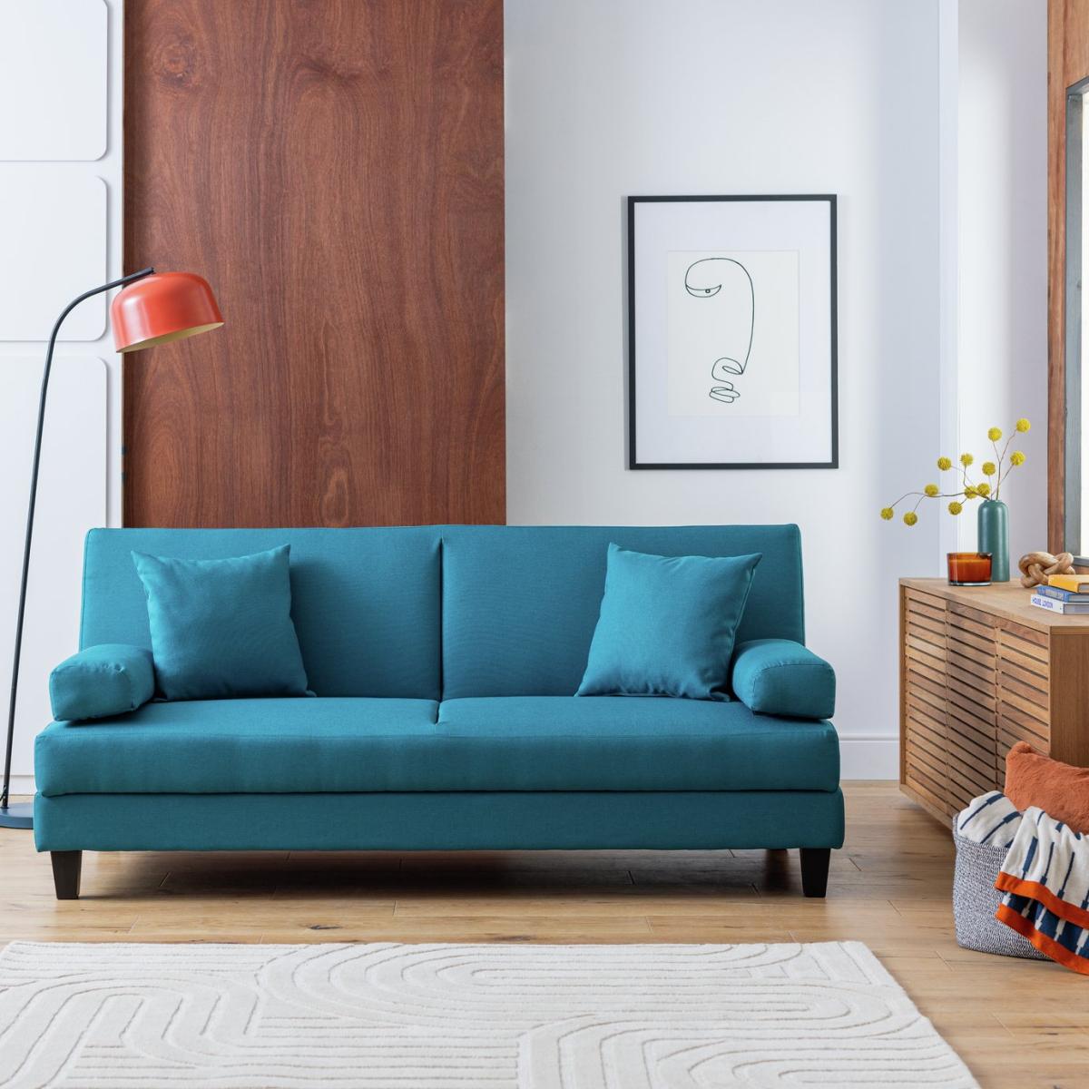 Minimum fuss, maximum practicality. The Chase clic clac sofa bed is the perfect spare bedroom or office seating solution. The contemporary design is packed with cushioned comfort. And it goes from a smart relaxing sofa to a smart relaxing bed, in a matter of seconds. Modern living nailed. Part of the Chase collection. Clic clac mechanism. Small single bed. Material: Made from 100% polyester. Fixed seats with foam fibre wrap filling. Removable cushion(s) with foam filling. Free fabric swatch available on this line. Dimensions: Sofa size H81, W180, D84cm (Depth as bed 112cm). Size of sleeping area:W112, L180cm. Mattress depth: 180cm. Floor to seat height: 39cm. Depth of seat: 56cm. Height of seat back: 42cm. Width of seating area between arms: 180cm. Weight 39kg. Storage capacity: 0.2 litre. Professional clean only. Suitable for occasional use. Plump cushions regularly to maintain shape. Self-assembly - just add feet. Maximum individual user weight 240kg. Packaged dimensions: Package size H28, W184, D115cm. General information: Manufacturer's 2 year frame guarantee. FSC certified meaning the materials used for this product are responsibly sourced.