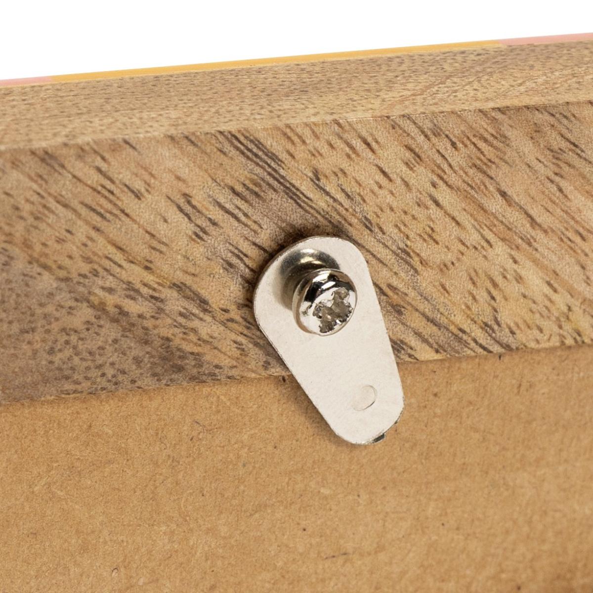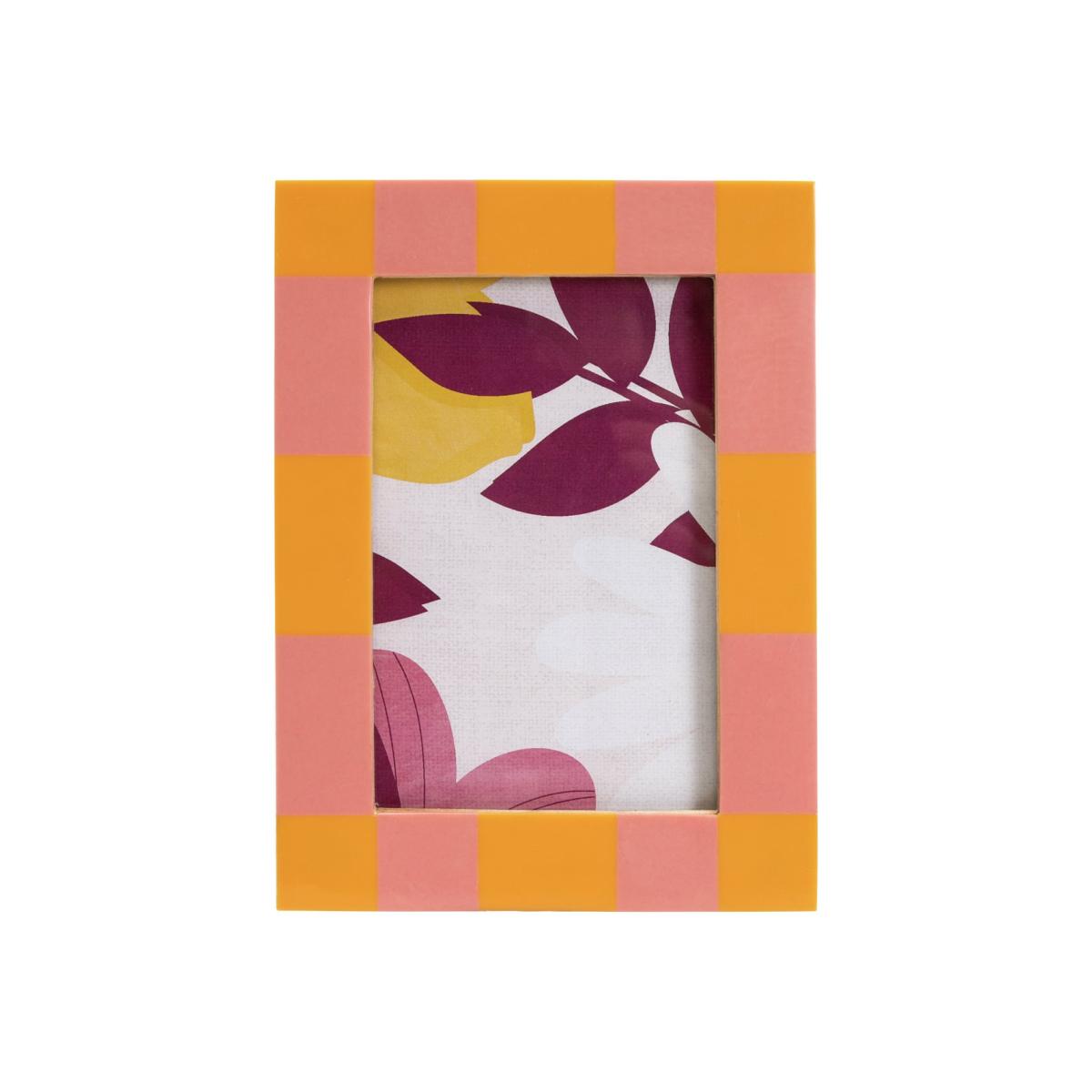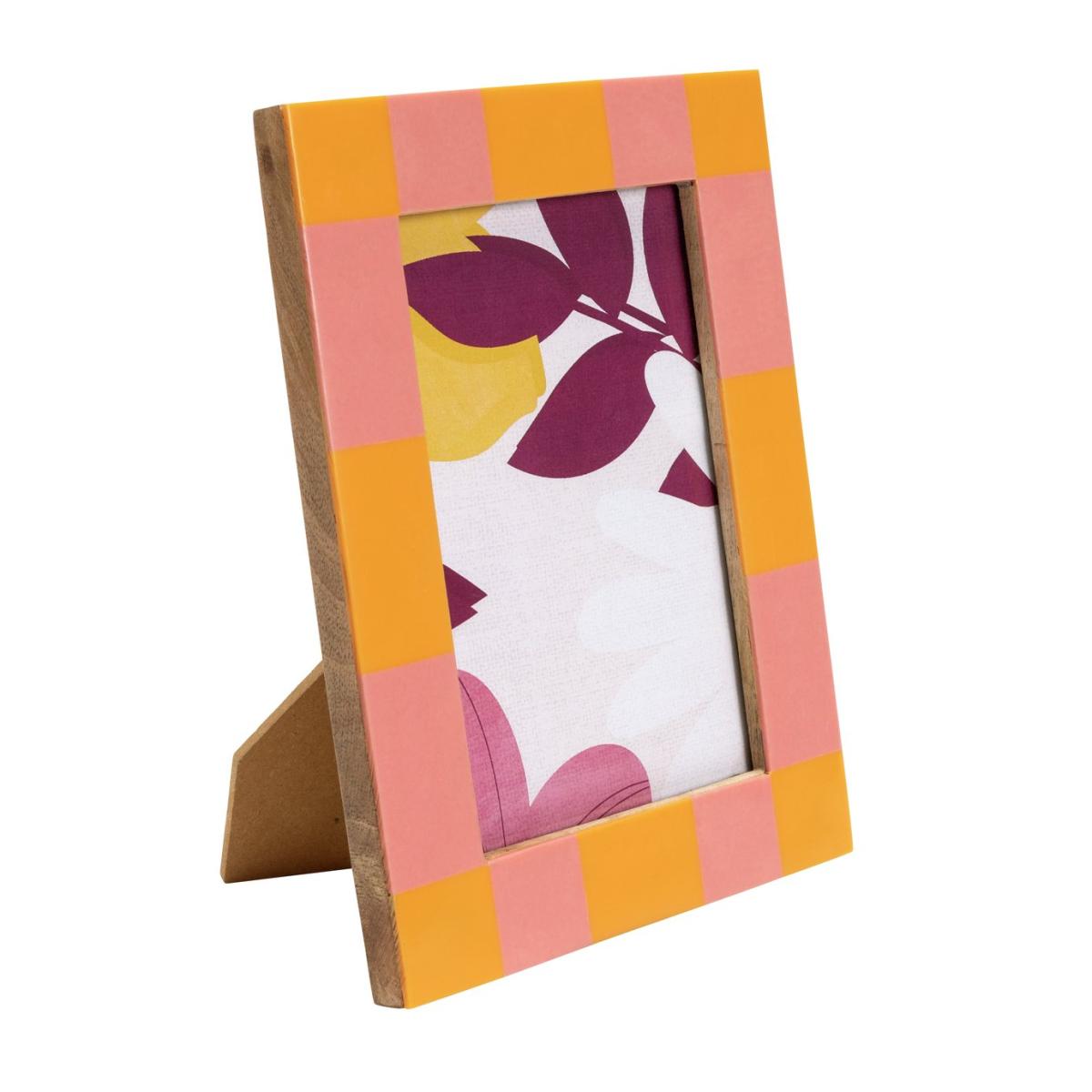 Get a little funky with your frames. Fabulous to display prints or messages our mango wood checked frame is fresh and fun. Made to surface stand, or be wall hung, it is an eye-catching feature piece. For photo size: 4x6 inches. Size H19.25, W14, D10cm. Free standing. Product can be free standing and wall mounted. Mango Wood frame. Set of 1 frames. FSC certified.