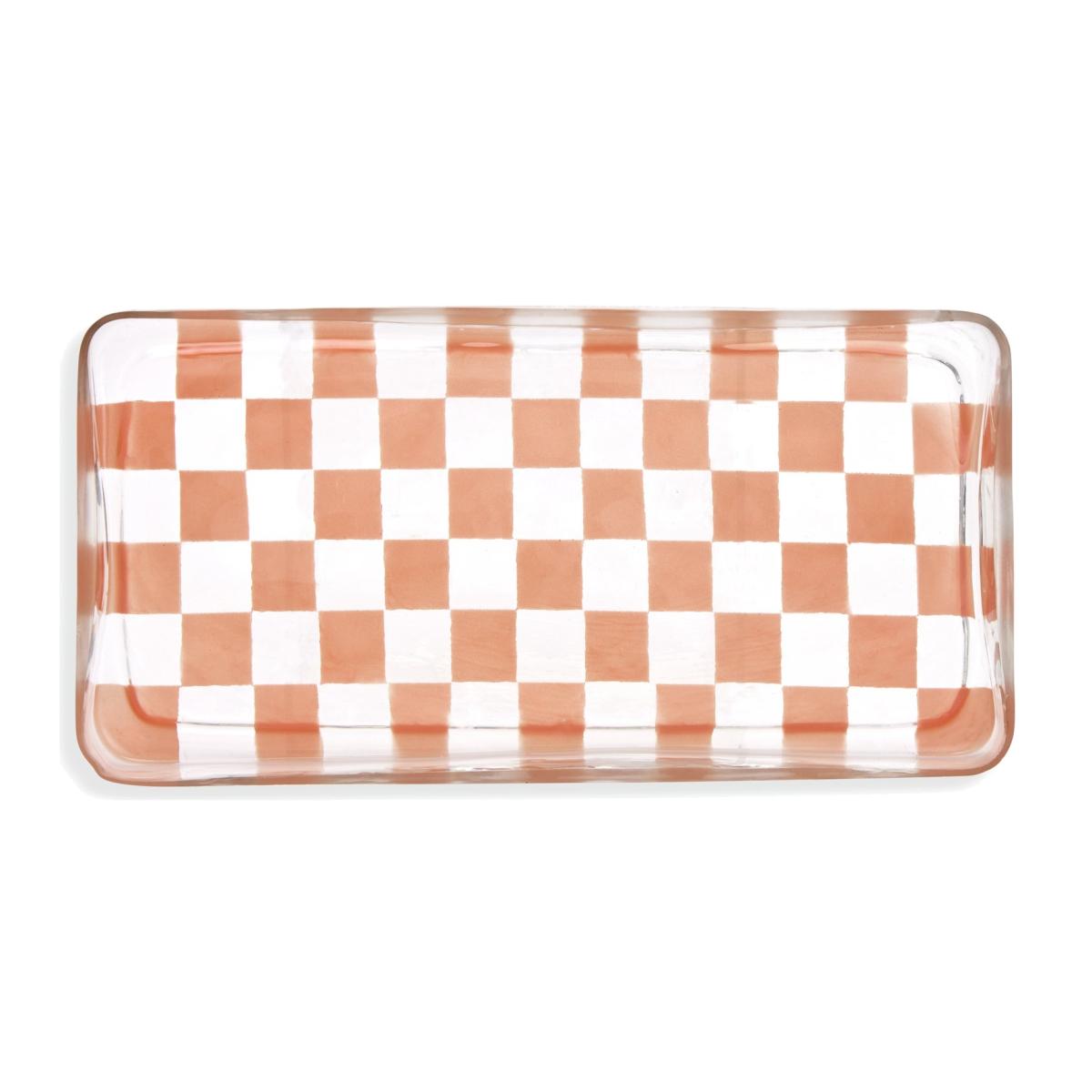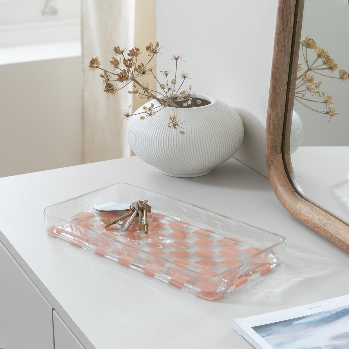 As a tasteful tray or convenient catchall, this glass plate will be a hardworking multitasker. Hand-blown with a pretty peach checkered pattern, it's a decorative delight. Size H3.5, W30, D15cm.