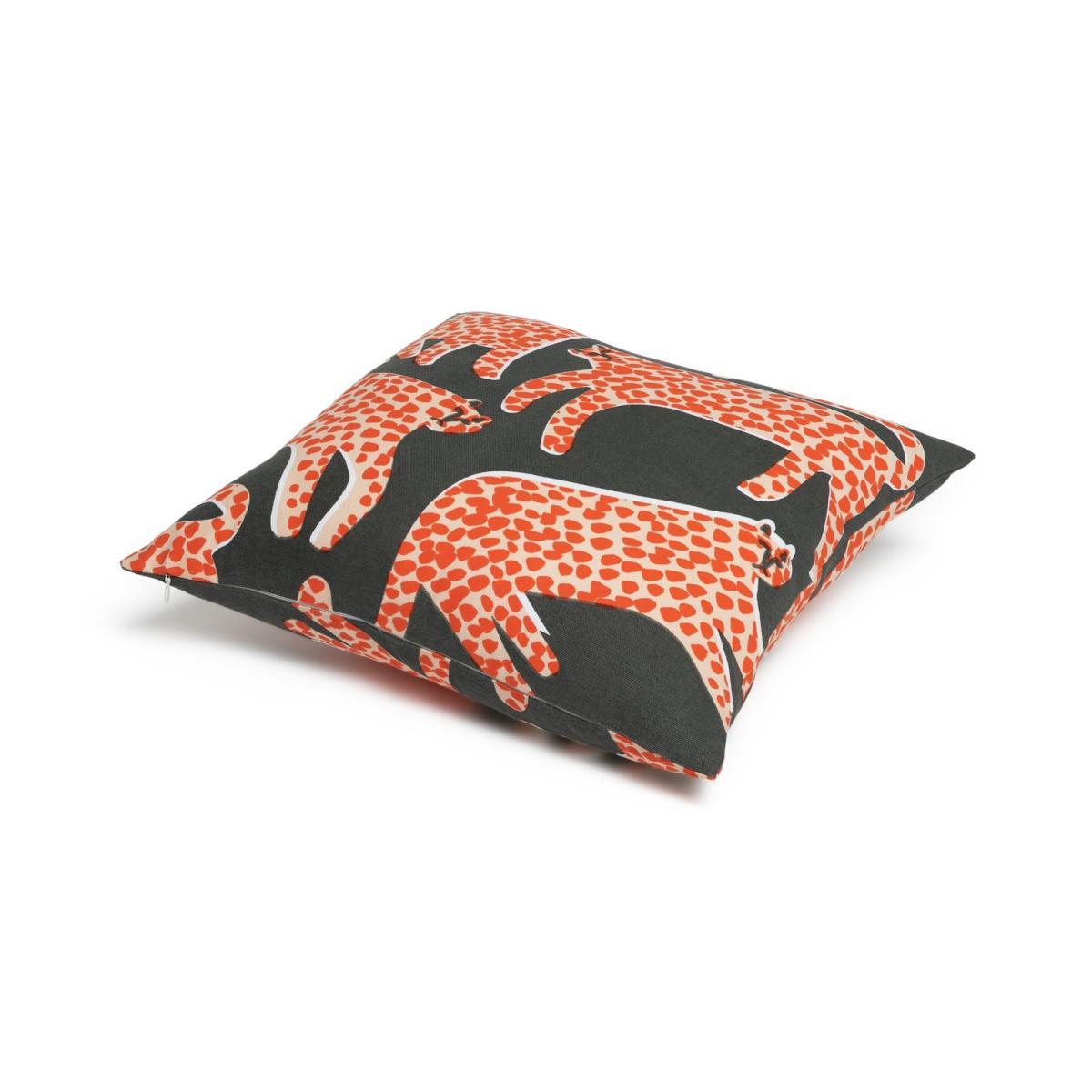 I love this animal print cushion for its bold, playful character, making it a great statement piece in both modern and eclectic interiors. The bright orange cheetahs set against the dark background work well in relaxed spaces like living rooms or bedrooms that embrace colour and pattern. It’s versatile enough to be paired with neutrals for a striking contrast or mixed with other prints for a lively, layered look. Practical styling tips include layering it with textured throws or using it to add a pop of colour on a neutral sofa. It’s especially effective when paired with more subdued accents, allowing the cushion’s vivid pattern to truly stand out.