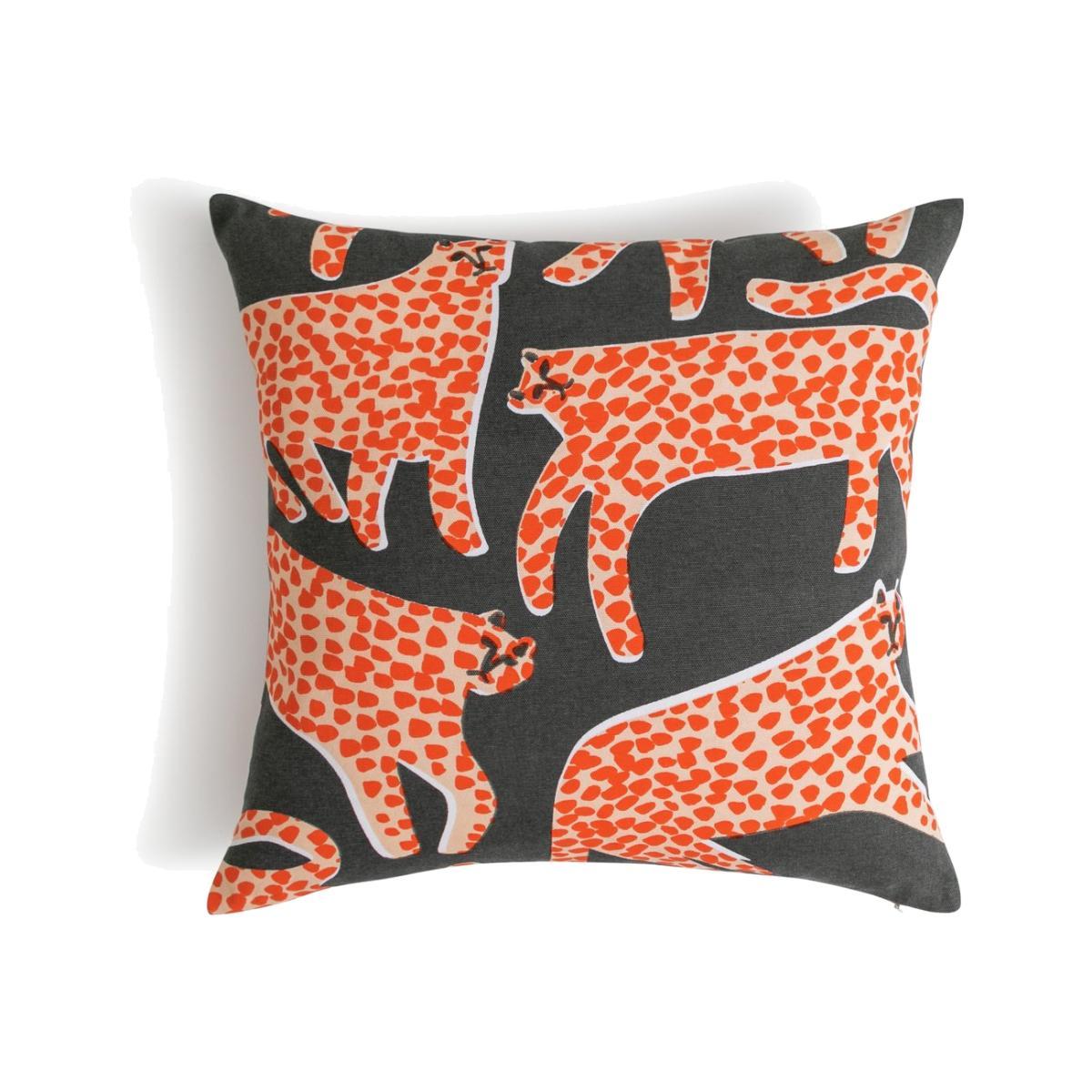 Show off your wild side. This playful Cheetah print cushion adds a splash of vibrant colour to any room. Crafted from 100% natural cotton in orange and grey, it comes with a comfy and durable polyester filling that's perfect for lounging. Straightforward to keep clean, when your cushion needs a refresh simply the cover in the machine. A great way to add some tropical flare to your decor. Zip fastening. Cover 100% cotton. Filling 100% Polyester. Size L43, W43cm. This cover is machine washable.