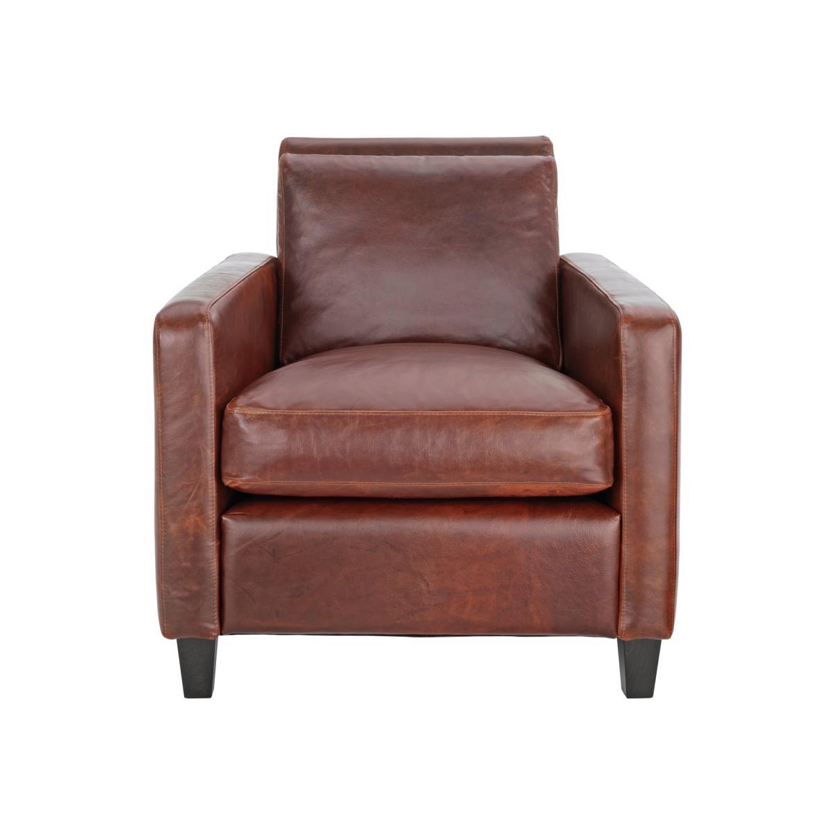 Lounge in style with this Italian made Chester tan leather armchair, fully upholstered in sumptuous tan leather with feather filled seat cushions, for a classic, timeless look. Designed by Matthew Hilton for Habitat and features a slim profile and dark stained feet. Part of the Habitat bestselling classic Chester sofa range, available in leather and fabric options, in various sizes and colours and with oak stained or dark stained feet.