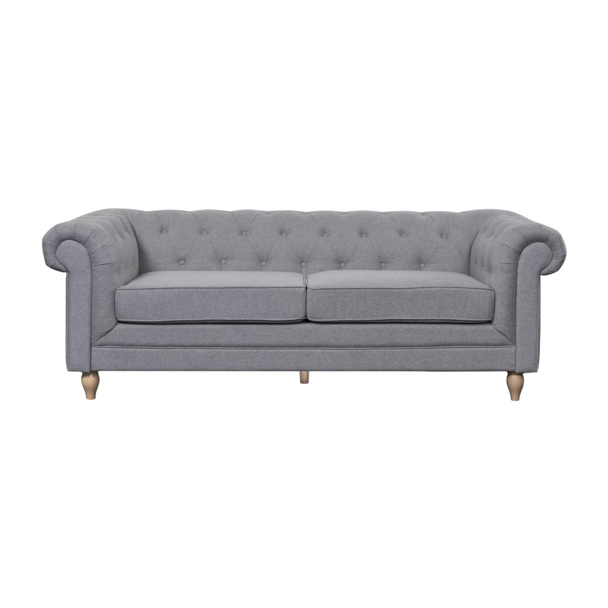 Searching for a classic statement sofa? You can't go wrong with our rich grey wool 3-seater Chesterfield. It has all the iconic features you'd expect with this traditional design. A low padded back with deep button tufting, elegant scroll arms and turned wooden legs. Plump pocket sprung cushions and piped detailing add to its upmarket credentials. This is one timeless, tasteful seat. Need we say more? Love the look and want to take it a step further? We've got a matching Chesterfield armchair and 2-seater sofa that'll round off the room nicely. Part of the Chesterfield collection. Material:Made from 100% polyester. Wooden feet. Removable seats with pocket sprung foam filling. Reversible cushion(s) with foam filling. Free fabric swatch available on this line. Dimensions:Size H78, W220, D91cm. Floor to seat height: 52cm. Depth of seat: 56cm. Height of seat back: 31cm. Width of seating area between arms: 155cm. Height of arm rest: 77cm. Weight 30kg. Dust or wipe with a damp cloth only. Minimal assembly - just add feet. Maximum individual user weight 200kg. Packaged dimensions:Package size H65, W222, D93cm. General information:We are excited to be welcoming some of our favourite HOME products into the Habitat range. Your product may arrive in Habitat or HOME packaging. Manufacturer's 1 year guarantee.