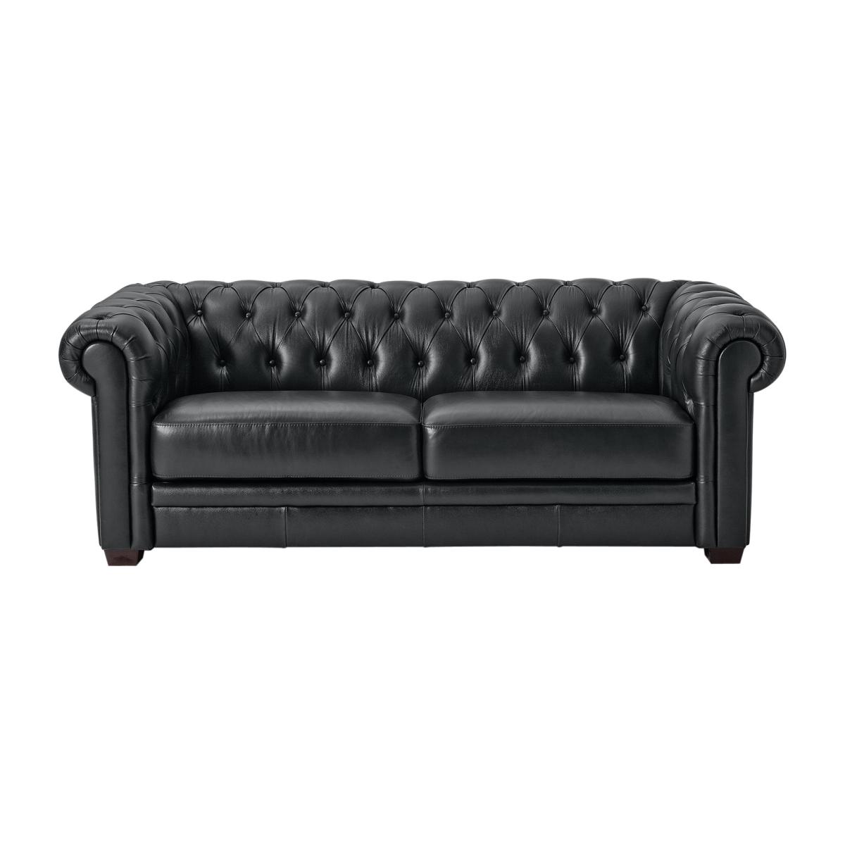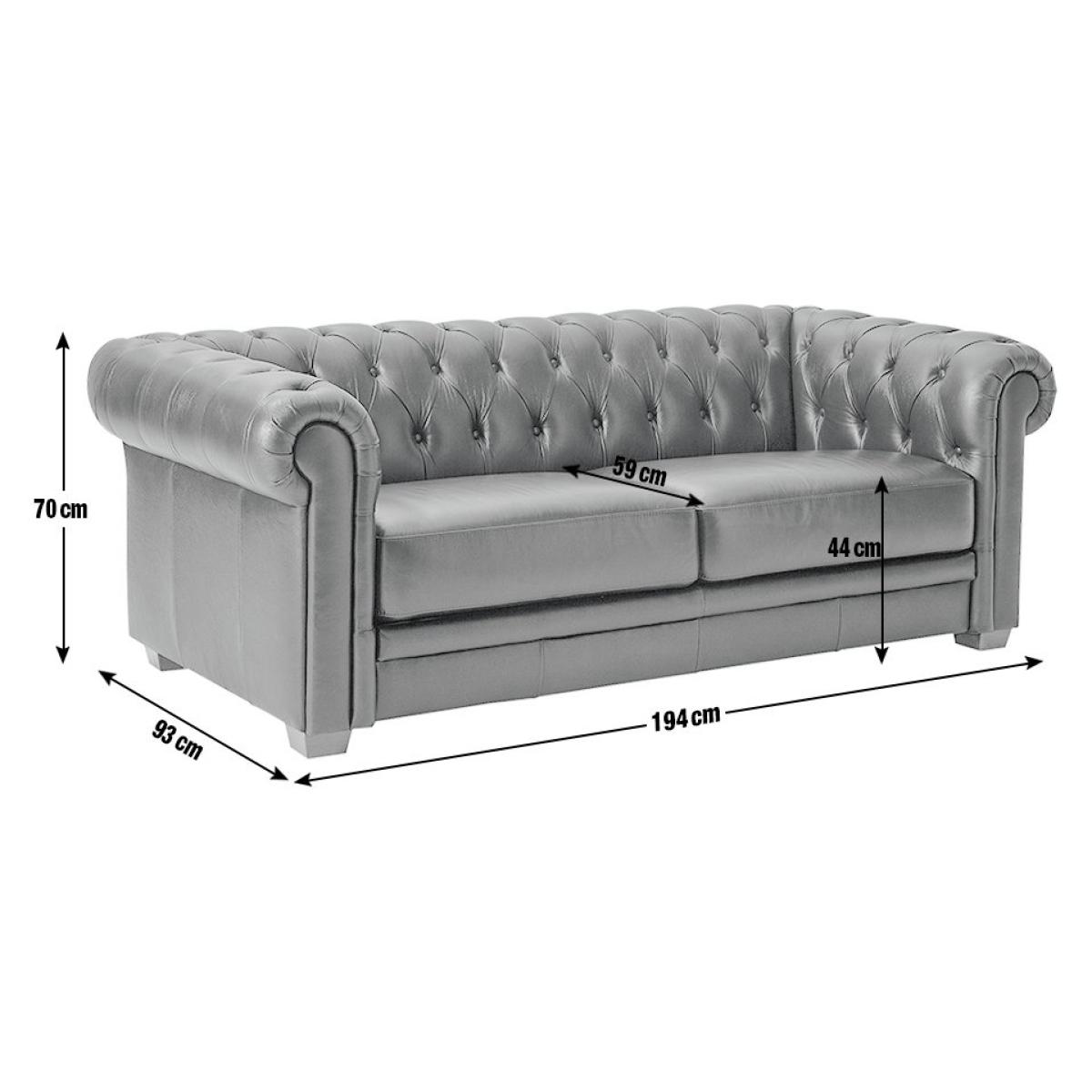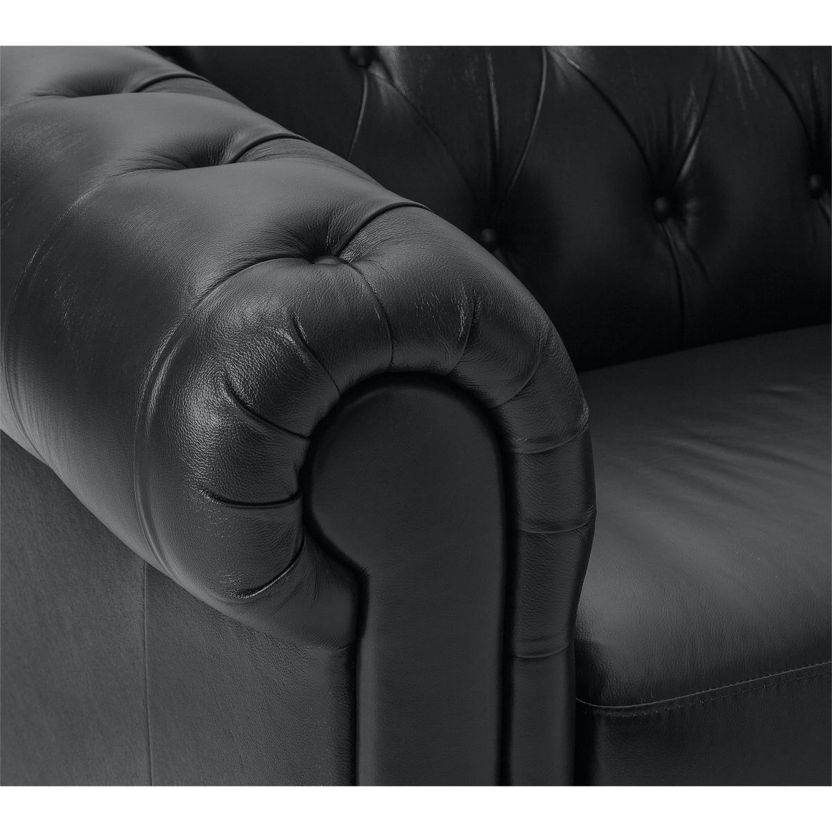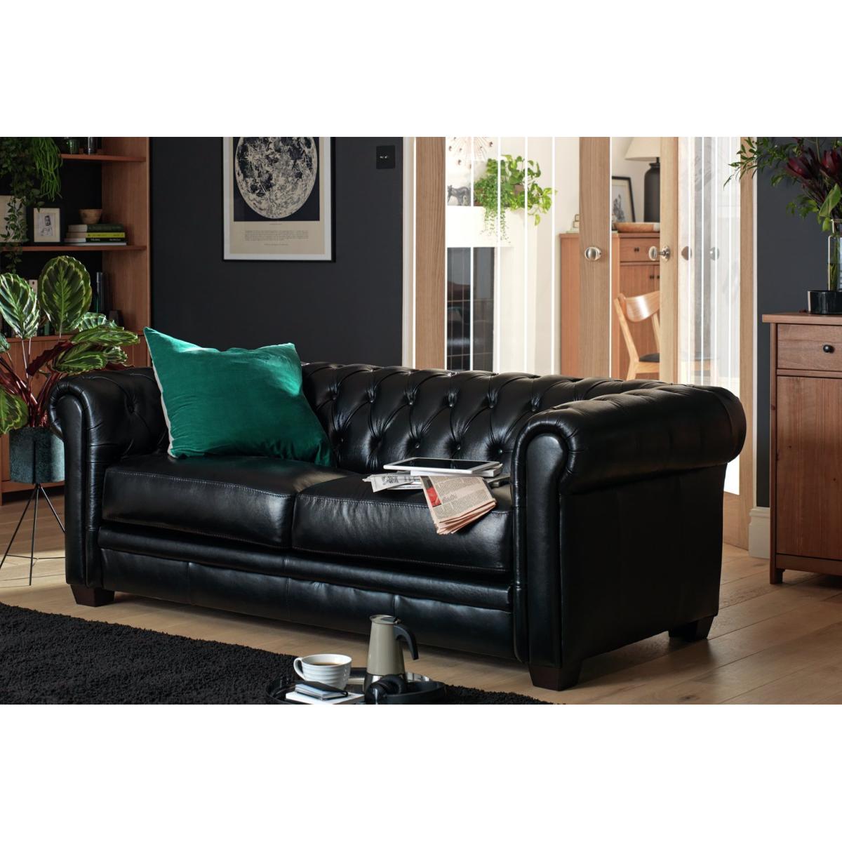 An iconic piece. Classic and timeless, the Habitat Chesterfield 3-seater sofa boasts a scroll arm design with sumptuous deep buttoning on the back panel and arms. It's beautifully upholstered in top grain semi-aniline leather for a truly luxurious feel. It stands on real wood feet for the perfect finishing touch. It will make a statement on its own or as part of a full suite. Comfort is assured with its firm foam filled seat cushions, so it's not only full of character but provides a great place to relax. Part of the Chesterfield collection. Material: Semi aniline leather. Made from 100% leather. Wooden feet. Fixed seats with pocket sprung and foam filling. Fixed cushion(s) with foam filling. Dimensions: Size H70, W194, D93cm. Floor to seat height: 44cm. Depth of seat: 59cm. Height of seat back: 30cm. Width of seating area between arms: 144cm. Height of arm rest: 70cm. Weight 63.5kg. Professional clean only. Plump cushions regularly to maintain shape. Minimal assembly - just add feet. Maximum individual user weight 110kg. Packaged dimensions: Package size H66, W198, D95cm. FSC certified meaning the materials used for this product are responsibly sourced. General information: We are excited to be welcoming some of our favourite HOME products into the Habitat range. Your product may arrive in Habitat or HOME packaging. Manufacturer's 10 year frame guarantee.