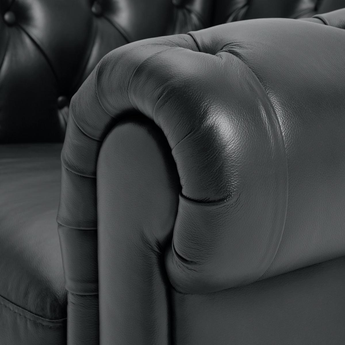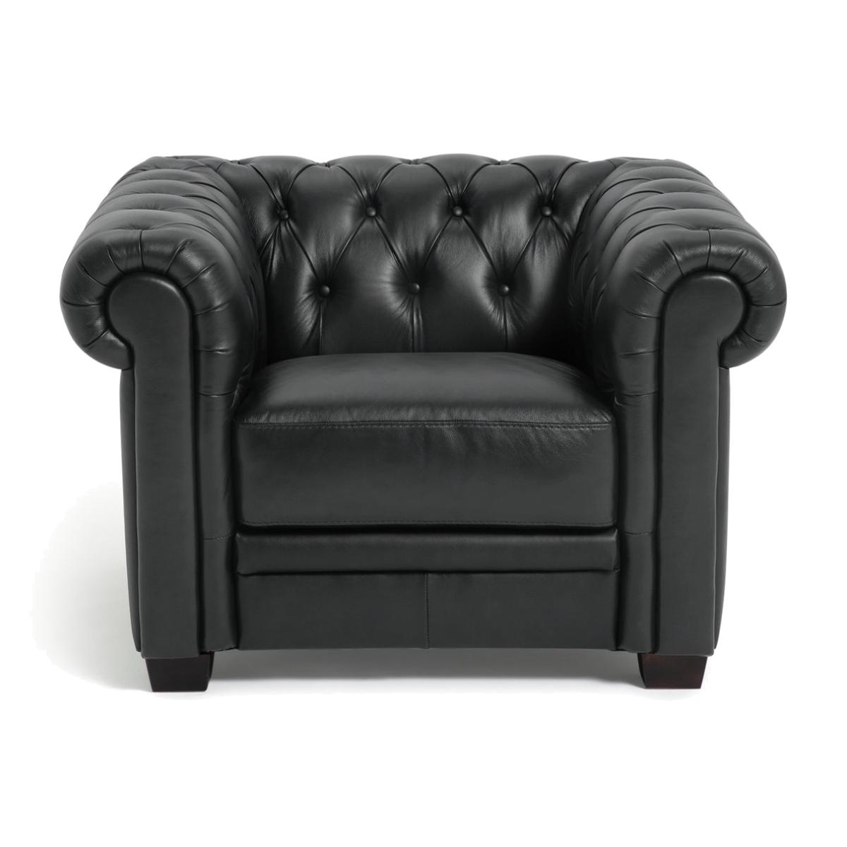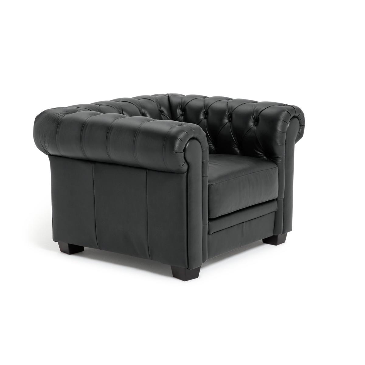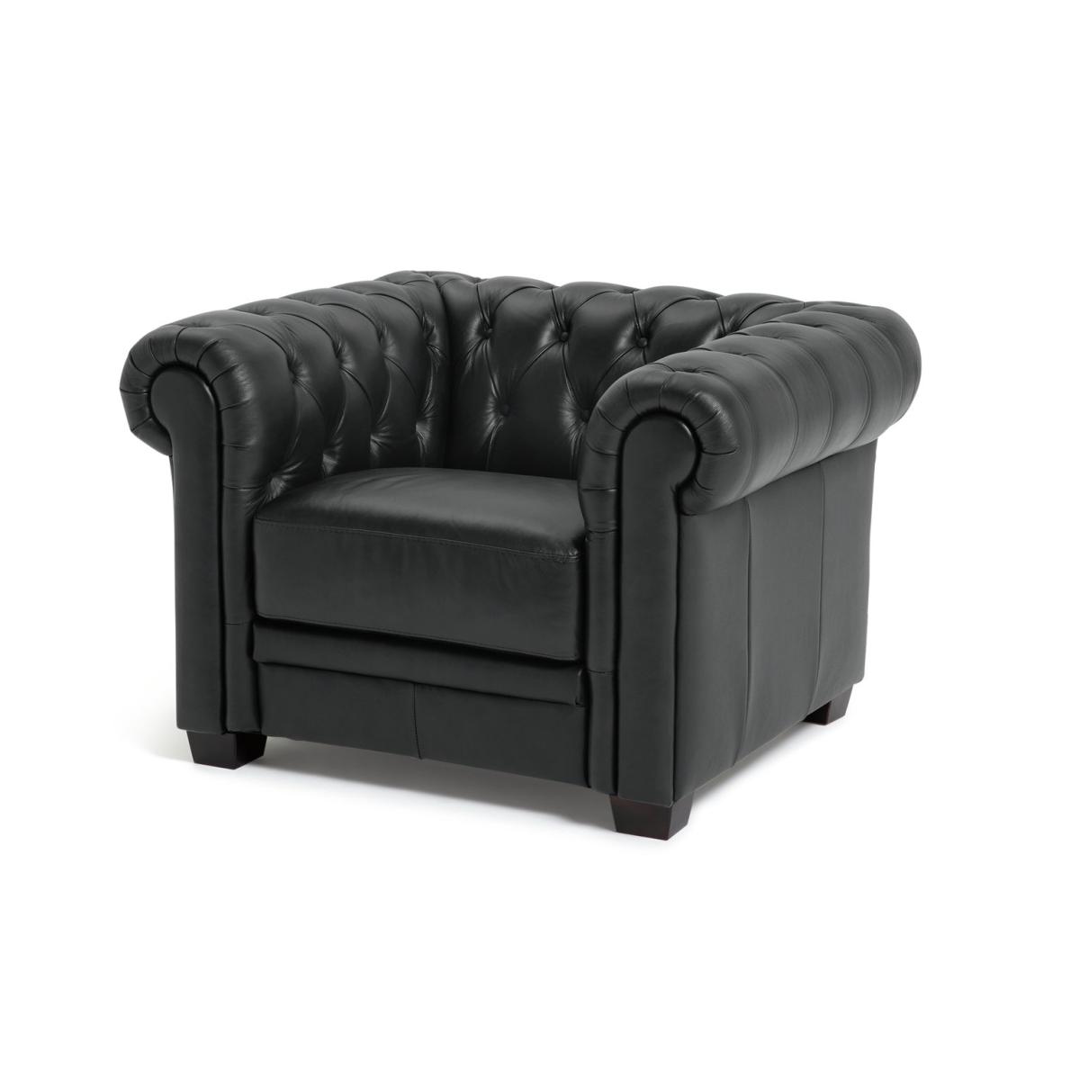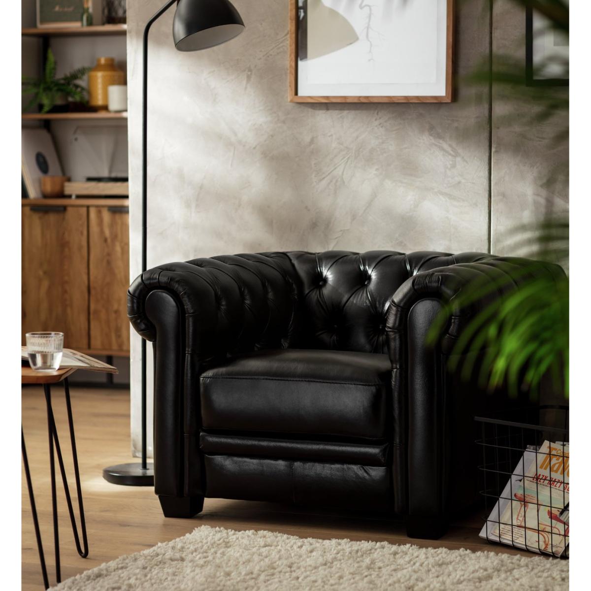 An iconic piece. Classic and timeless, the Habitat Chesterfield armchair boasts a scroll arm design with sumptuous deep buttoning on the back panel and arms. It's beautifully upholstered in top grain semi-aniline leather for a truly luxurious feel. It stands on real wood feet for the perfect finishing touch. Comfort is assured with its firm foam filled seat cushions, so it's not only full of character but provides a great place to relax. Part of the Chesterfield collection. Material: Semi aniline leather. Made from 100% leather. Wooden feet. Fixed seat with pocket sprung and foam filling. Fixed cushion(s) with foam filling. Dimensions: Size H70, W104, D93cm. Floor to seat height: 44cm. Depth of seat: 59cm. Height of seat back: 30cm. Width of seating area between arms: 54cm. Height of arm rest: 70cm. Weight 39kg. Professional clean only. Plump cushions regularly to maintain shape. Minimal assembly - just add feet. Maximum individual user weight 110kg. Packaged dimensions: Package size H66, W108, D95cm. General information: We are excited to be welcoming some of our favourite HOME products into the Habitat range. Your product may arrive in Habitat or HOME packaging. Manufacturer's 10 year frame guarantee.