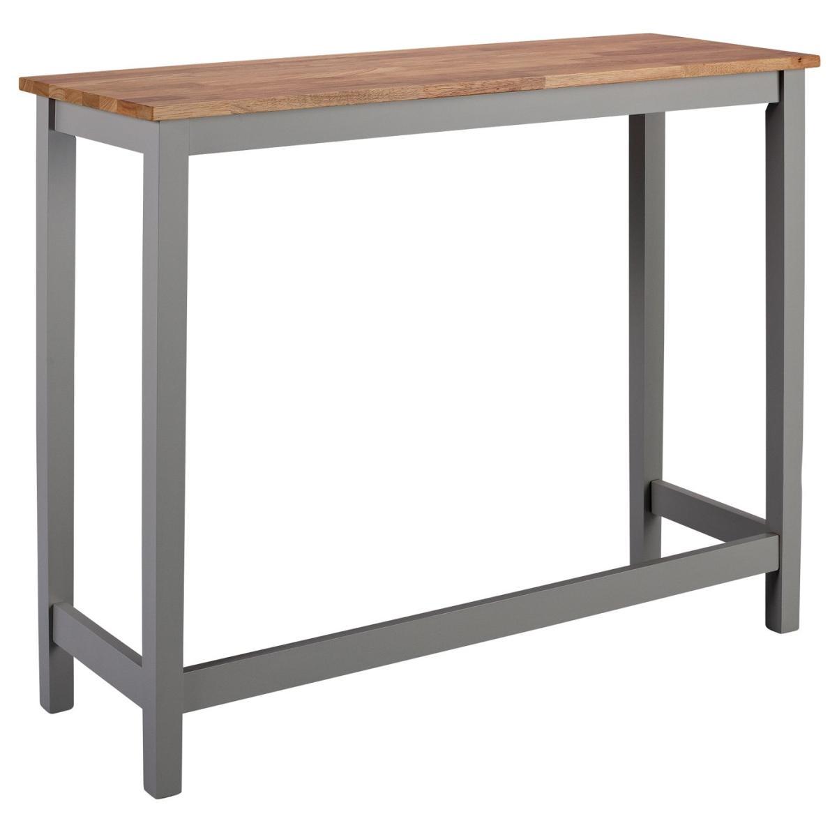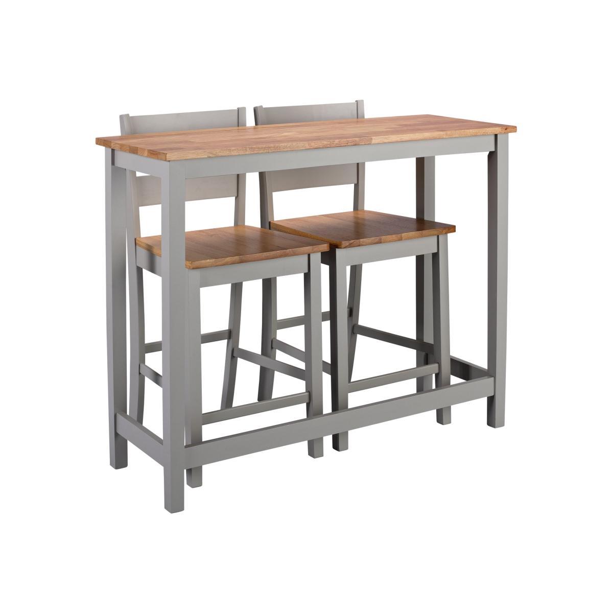 Finish your kitchen off on a high with this bar table and stool set. If your taste is traditional, you'll love the Habitat Chicago's classic look. In a warm grey and wood design, it's two-tone finish offers a touch of country cottage charm. This hardwearing solid wood set comes complete with 2 bar stools that perfectly complement the Chicago's homely style. The hardwearing solid bar stools are as sturdy as they are stylish. It's the ideal set for the kids to polish off their cereal before school or devour dinner after a busy day. Don't let the self-assembly put you off, it's as easy as pie to put together! Part of the Chicago collection. Table: Table size H91, W40, L110cm. Self-assembly - 2 people recommended. Chair:Includes 2 chairs. Size of each chair H95, W41.5, D48cm. Seat height 60cm. Self-assembly. Maximum user weight per chair 130kg. Individual chair weight 11.6kg. Package Dimensions: Table package 1 size H11, W46, D121cm. Individual chair package size H44, W20, D96cm. General information:We are excited to be welcoming some of our favourite HOME products into the Habitat range. Your product may arrive in Habitat or HOME packaging. Wipe clean with a soft cloth.