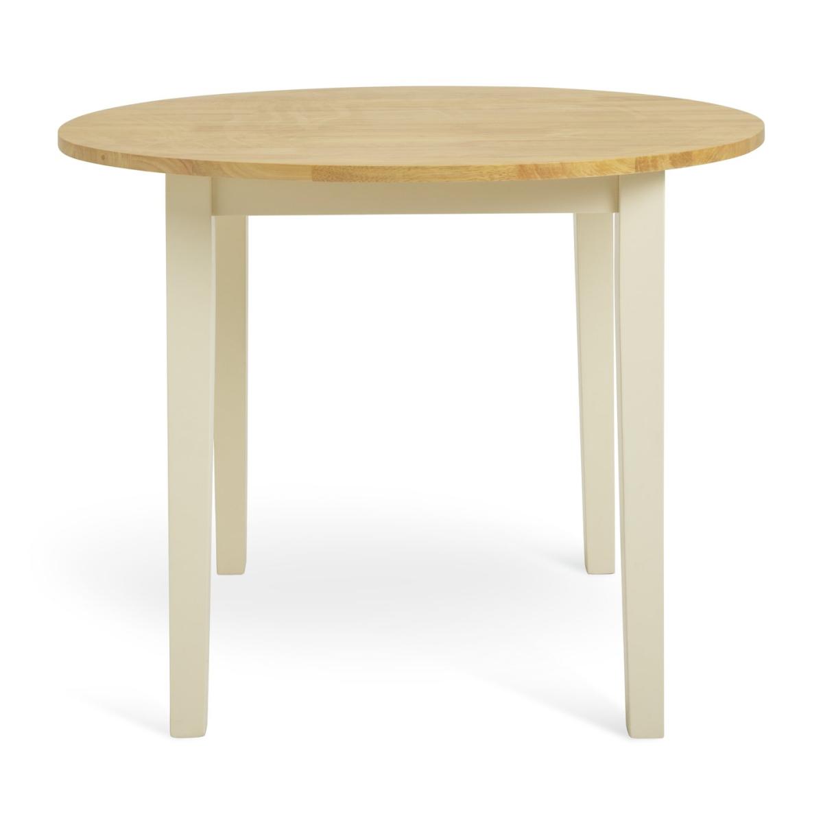 Chicago is a simple, traditional table. Perfectly sized for smaller dining areas. Made of solid rubberwood it comes in a smart combo finish that showcases the warmth of natural wood grain against the smart finish of painted legs. Light, bright and naturally welcoming. Part of the Chicago collection. Table: Table size: H75,. Internal size between table legs L50, W50cm. Diameter 90cm. Solid wood table with solid wood legs. Solid wood table top finish. Self-assembly - 4 people recommended. Weight of table 14.5kg. Package Dimensions: Table packaging size: H12.8, W55, D44.6cm. General information: We are excited to be welcoming some of our favourite HOME products into the Habitat range. Your product may arrive in Habitat or HOME packaging. Manufacturer's 1 year guarantee.