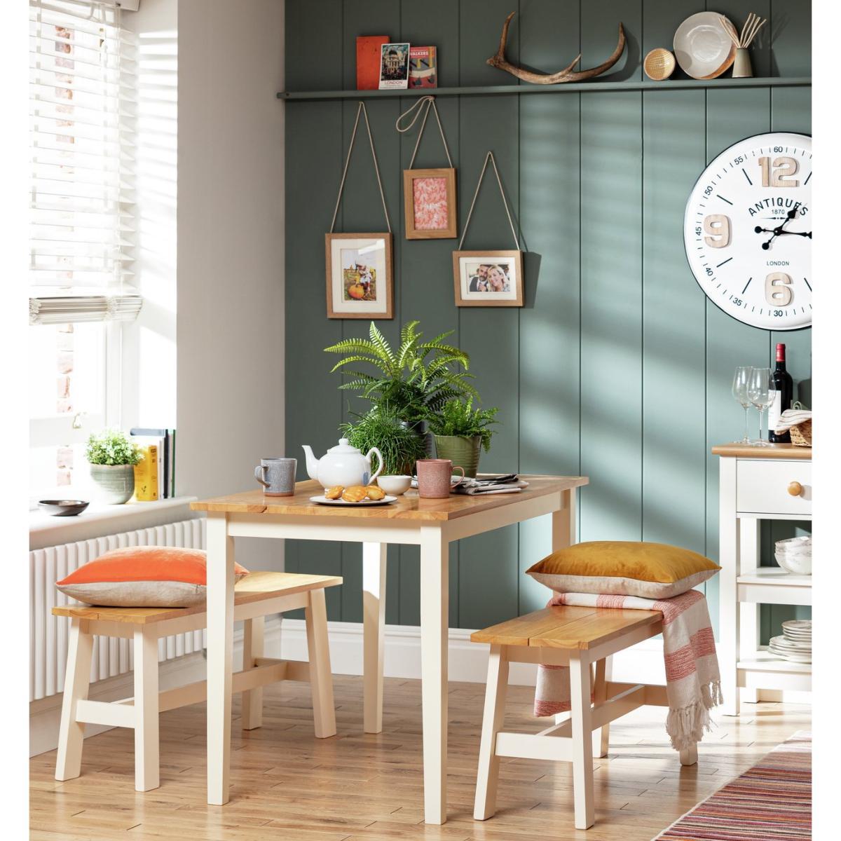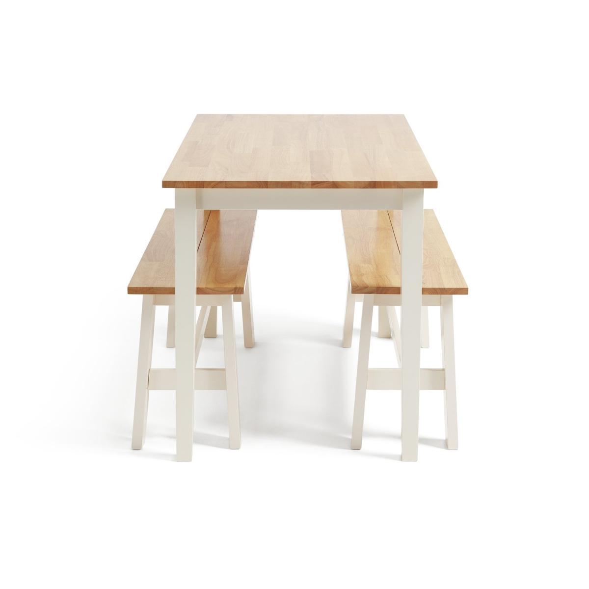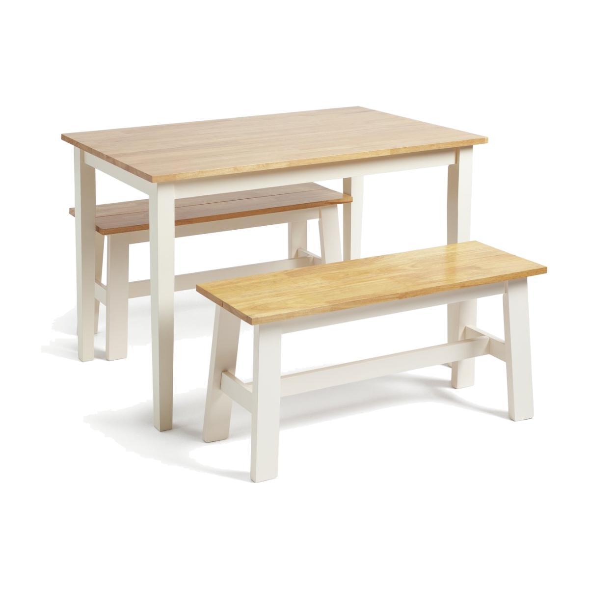Habitat Chicago Solid Wood Table & 2 Two Tone Benches