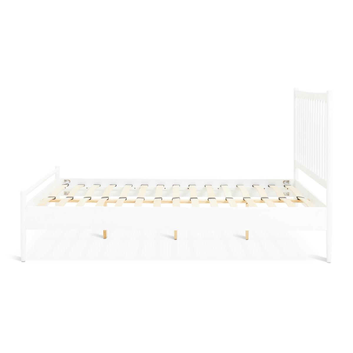 Inspired by modern Scandinavian design, our bedframe is crafted from solid wood with a beautiful warm walnut-stained grain finish. We love the simplicity of the headboard, made from wood-turned spindles and the carved top and bottom bar, which are elegant but strong. Elevated from the floor, you even have room for a little under-bed storage. This solidly constructed base has sprung wooden slats for mattress aeration, support and comfort. Part of the Chiltern collection. Wooden frame. Base with wooden slats. No storage. Size W144, L199, H110cm. Height to top of siderail 35cm. 20cm clearance between floor and underside of bed. Weight 29.5kg. Self-assembly - 2 people recommended. Package Dimensions: Package 1 dimensions: H11, W151, D117.5cm. Package 1 weight: 22kg. Package 2 dimensions: H10, W200, D27.5cm. Package 2 weight: 11.5kg. General Information: Manufacturer's 1 year guarantee. FSC certified meaning the materials used for this product are responsibly sourced.