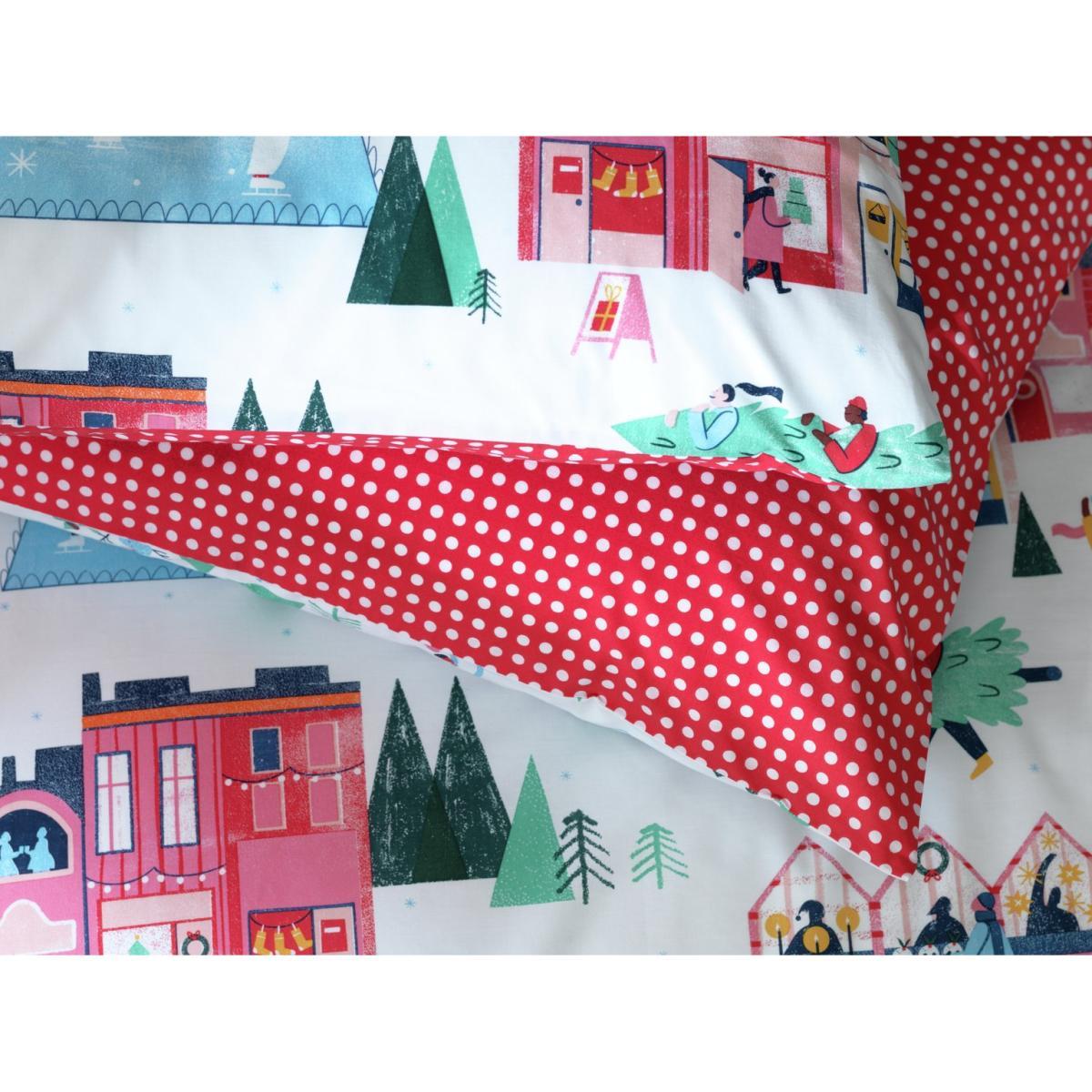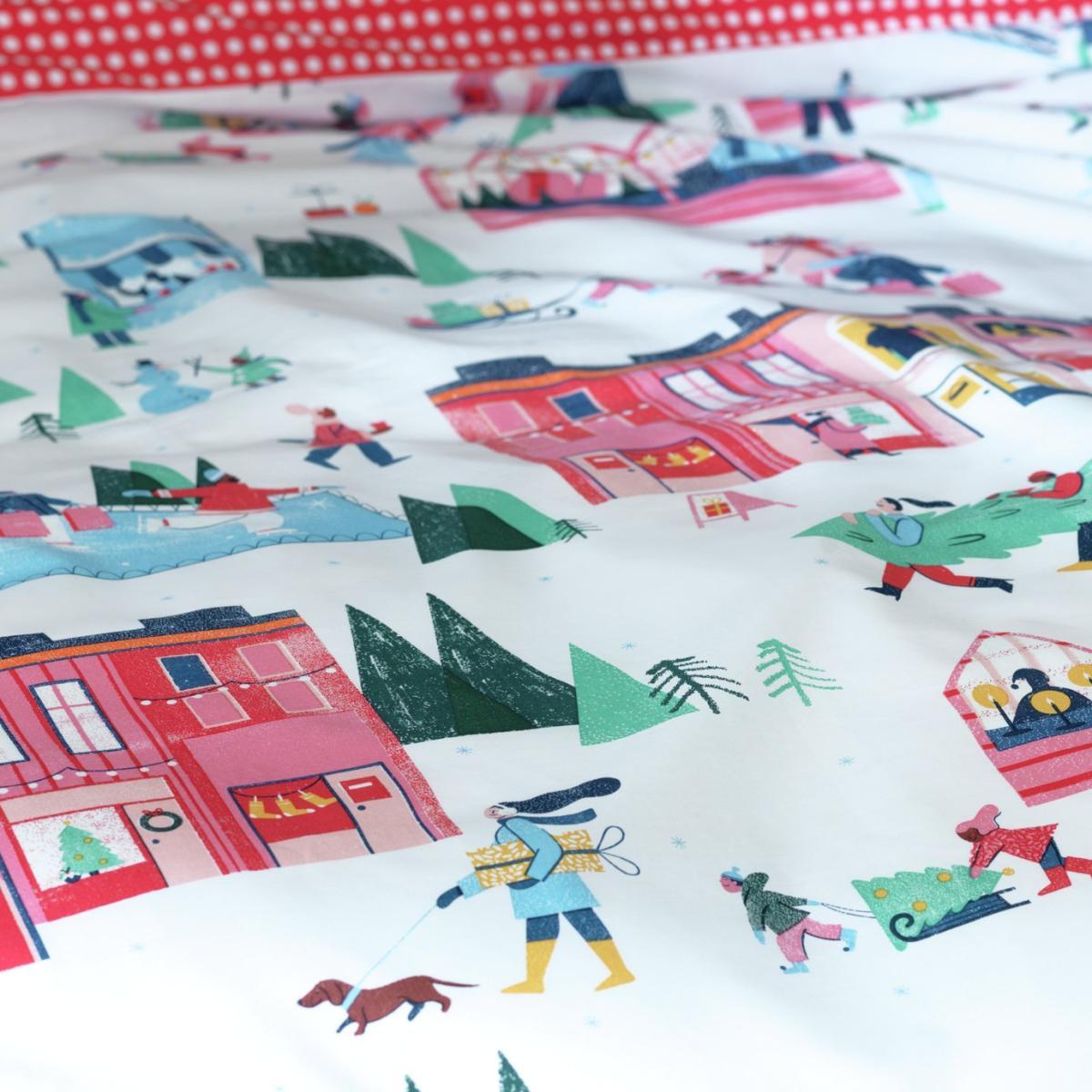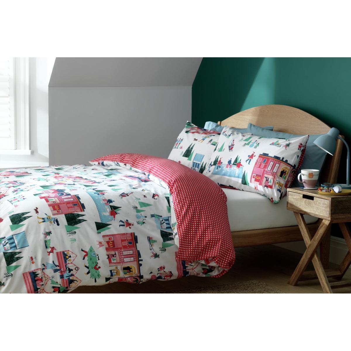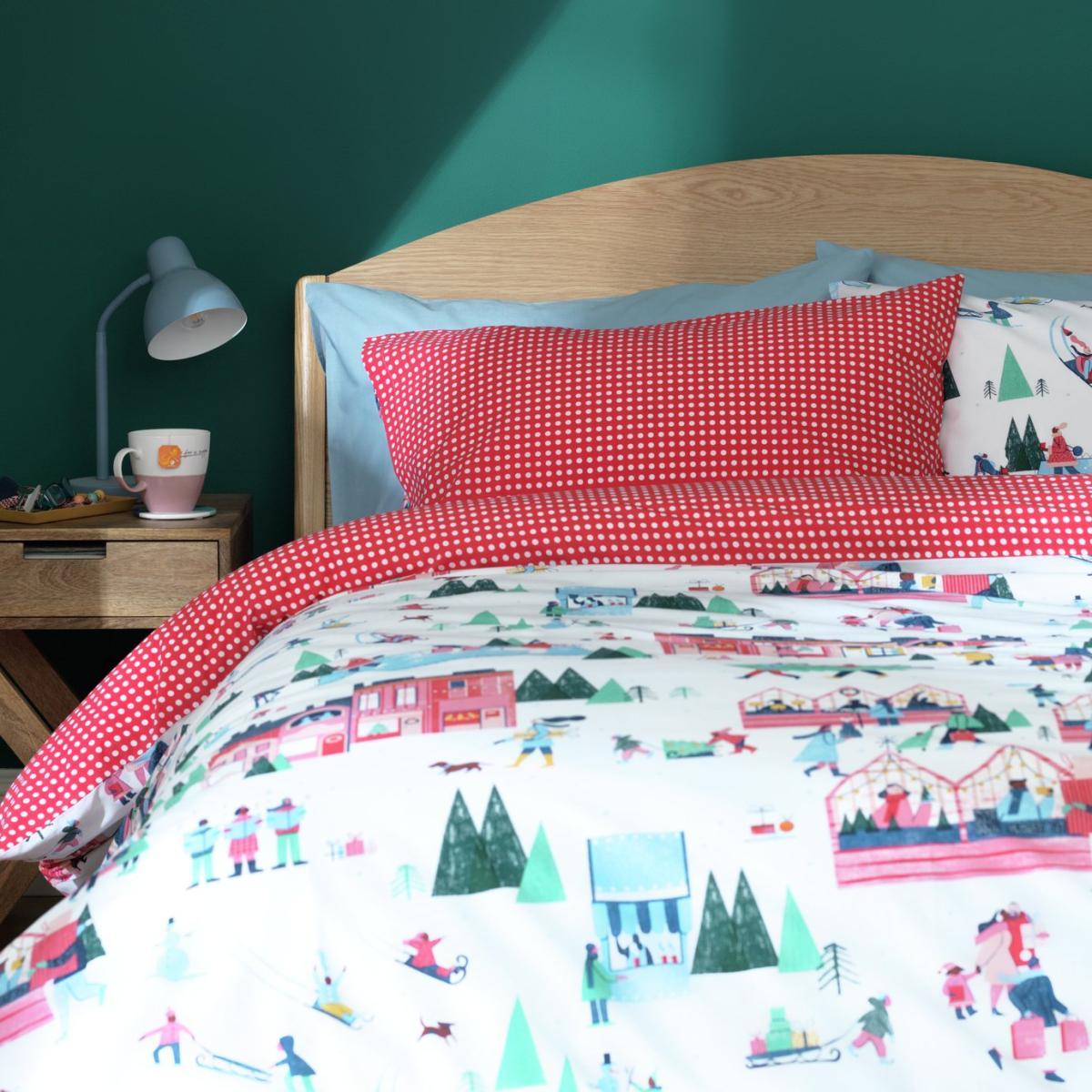 Dreaming of the big day? Our reversible double duvet bed set makes the build-up to Christmas even more exciting. Slip in among the carol singers, shoppers and sledgers, all eagerly awaiting Santa's arrival. And when Christmas is over, flip it over for pretty polka dots in red and white. Made from clever polycotton, it's durable and a dream to clean too. Let the countdown begin.