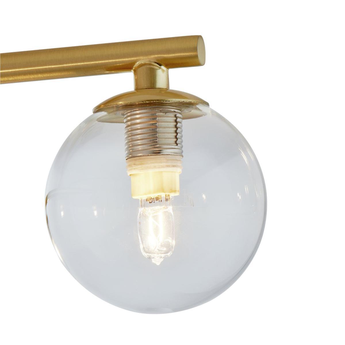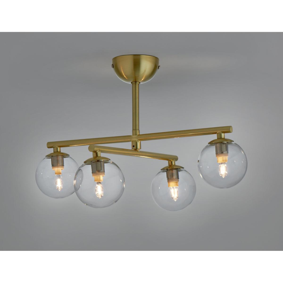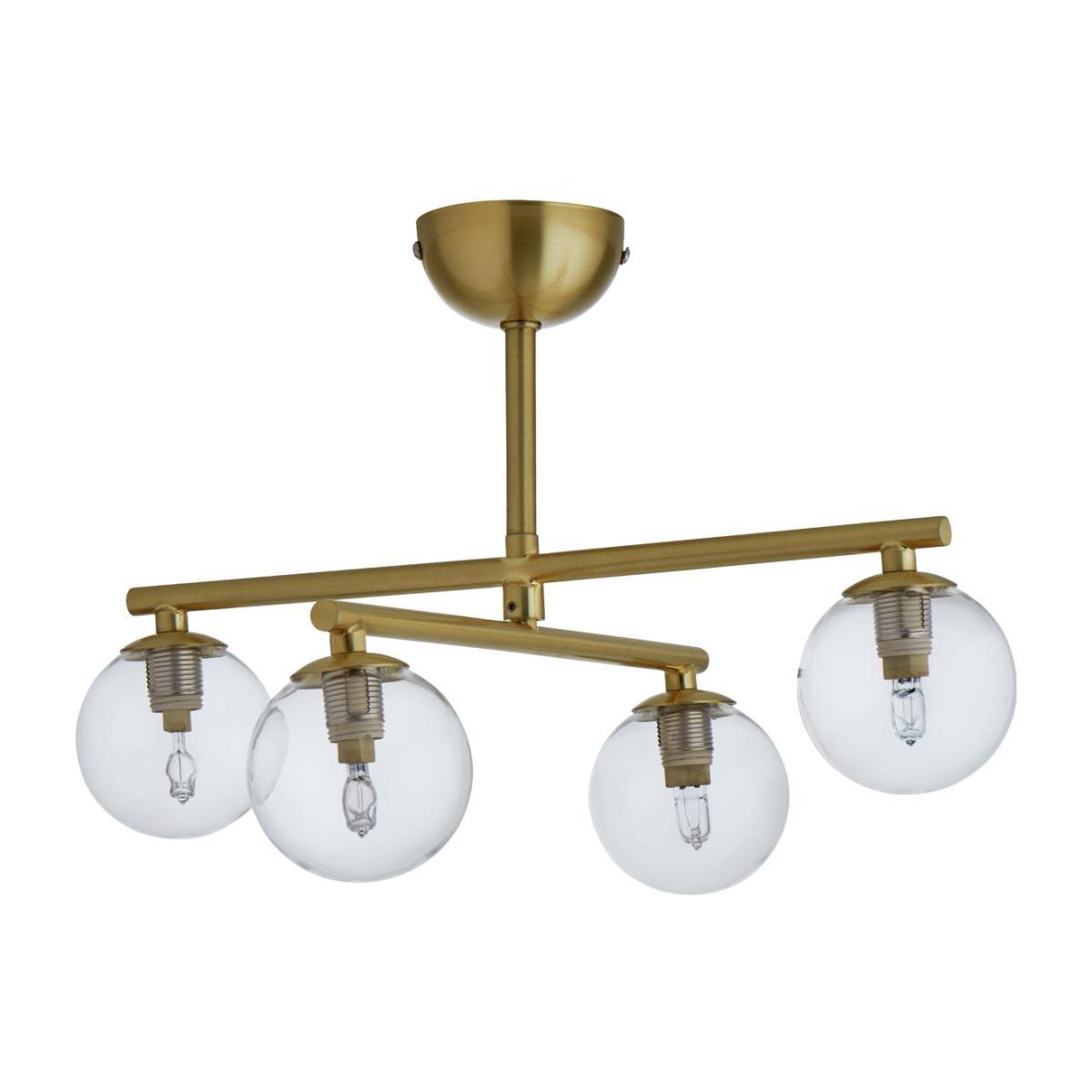 Simple and sophisticated. Chuck's brushed brass frame supporting 4 elegant opal glass globes combines timeless design with a chic metallic finish. Works beautifully with a contemporary decor. Showcase this stunning, flush light in your hallway or living room for effortless appeal. Chuck's minimalist design makes it a welcome addition to your home. Dimensions: Size H25.3, W39, D39cm, Diameter 39cm. Bulb Information: Bulbs required 4 x capsule G9 LED (not included). Recommended maximum wattage: 4 watts. General Information: IP rating 20 - not suitable for bathroom use. Self-assembly. Product is hard-wired into electrics. Manufacturer's 1 year guarantee.