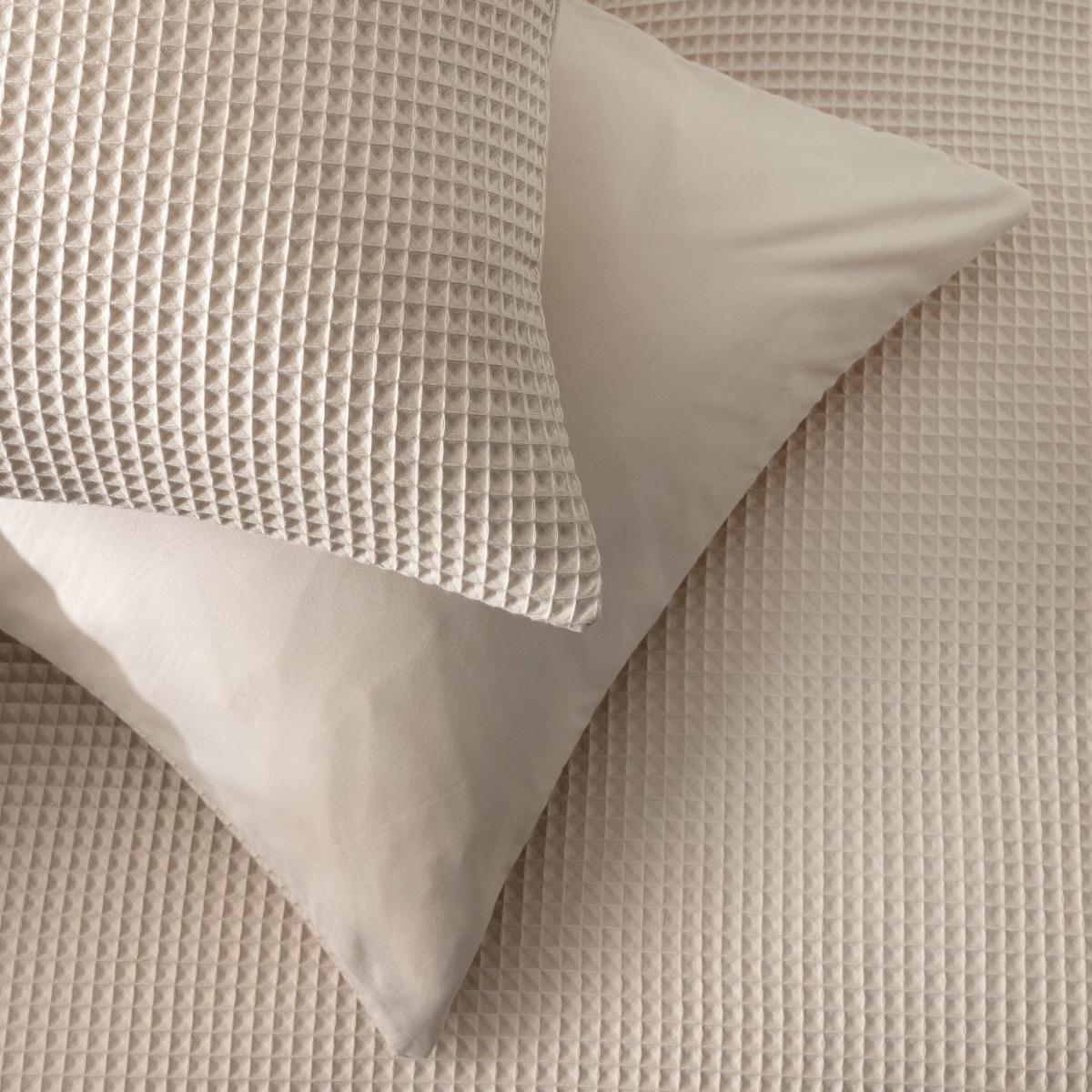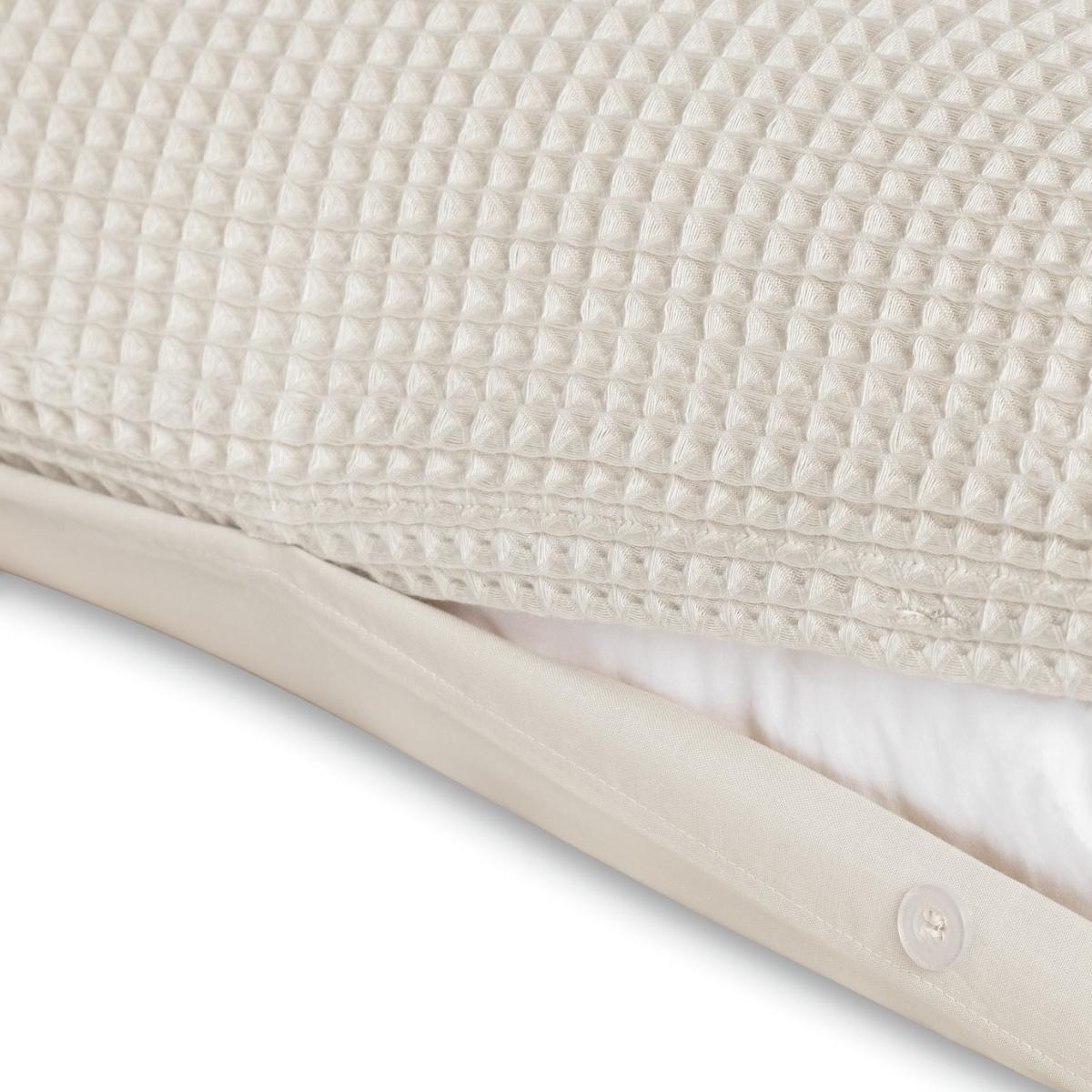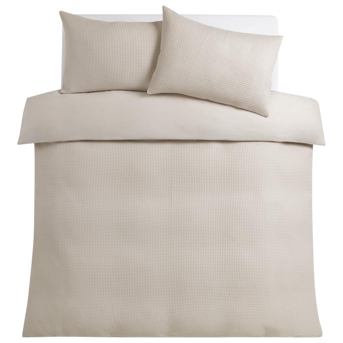 Craving a quick, bright bedroom makeover? Start here. This luxuriously thick, cotton rich cream bedding set is all about the texture. It's wonderfully waffly on top and softly smooth on the underside. An easy way to get that relaxed country house hotel look. This item carries the STANDARD 100 by OEKO-TEX logo, which means you can be certain that every component has been tested for harmful substances and is therefore harmless to human health. Fabric finish: waffle. 60% cotton, 40% polyester. 144 thread count. Set includes 1 duvet cover and 2 pillowcases. Bed size: king size. Length 220cm, Width 230cm. Normal confection edging detail. Buttons for fastening. Standard pillowcase (s). Pillow case length 75cm, Width 50cm. Suitable for tumble drying.