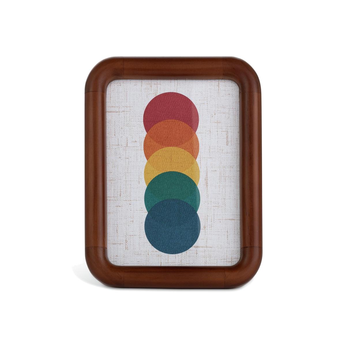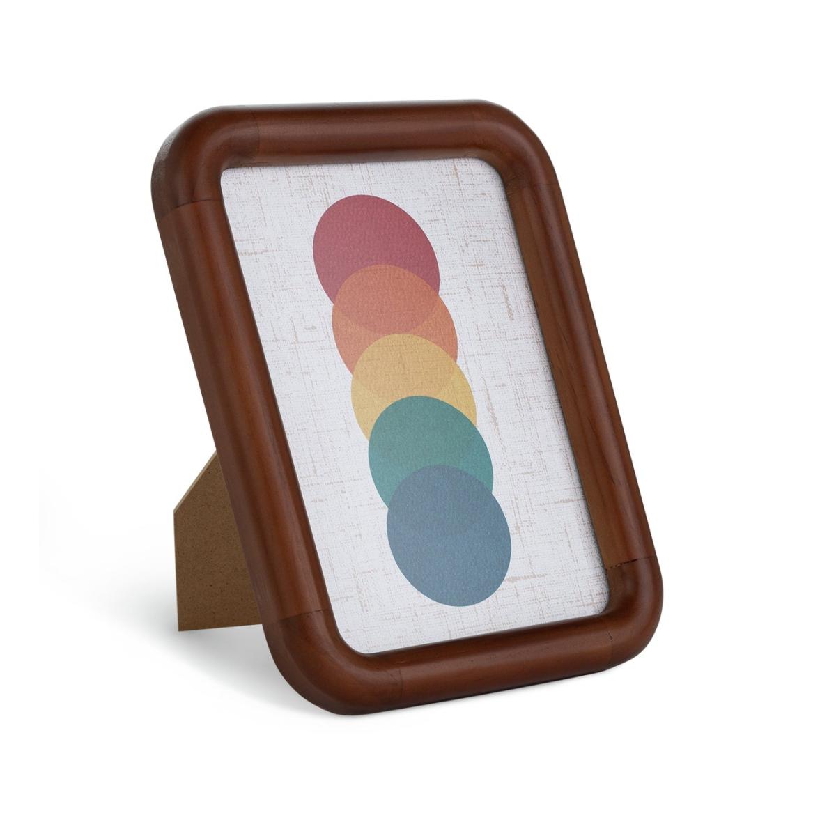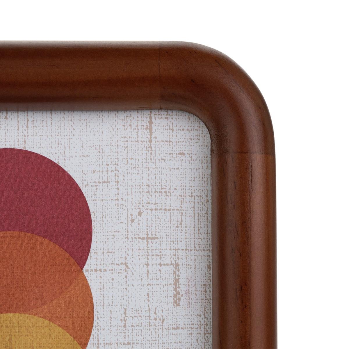 With rounded corners and smooth edges, this chunky wooden frame makes an instant impact. Crafted from pine with a rich, deep walnut stain. Inspired by mid-century tones, the geometric print provides a colourful contrast. Or slip in an image of your own. Free-standing and fashionably smart. For photo size: 13x18cm. Size H20.6, W15.5, D2.3cm. Free standing. Pine wood frame. Set of 1 frames. FSC certified meaning the materials used for this product are responsibly sourced.