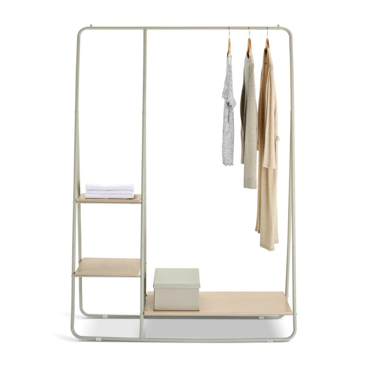 An open wardrobe for fashionistas. Make adjustable Cici work for you. There's a hanging rail for coats, dresses, jackets and shirts. A bottom shelf for footwear. And 2 side shelves for foldables. A neat way to make the most of your space. Pop some smart storage boxes on the shelves to give yourself even more tidy options. Take a look at our collection to get inspired. Adjustable height. Size H169, W120.5cm. Rail weight capacity 15kg. Shelf weight capacity 10. Kg. Self-assembly. FSC certified meaning the materials used for this product are responsibly sourced. Manufacturer's 1 year guarantee.