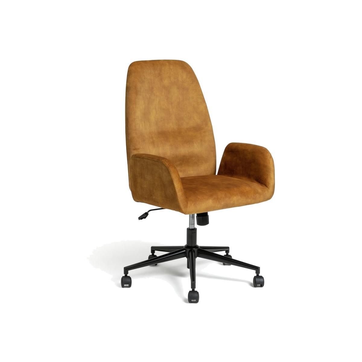 Our handsome Clarice work chair is the height of luxury. Designed with a solid wood frame on a black base and covered in plush, mustard velvet. It's outrageously opulent but makes a long working day so much easier to manage. The high back and armrests give you the support you need. And this is cool. Just pull a lever to adjust the height with a gas lift function, then swivel and tilt to find your perfect position. Treat yourself, you've earned it. Need to move between workstations? Sturdy castors help you glide into place. This handsome chair is also available in cool, classic grey. Part of the Clarice collection. Solid wood frame with velvet seatpad and velvet backrest. Chair includes tilt, swivel. Mounted on castors for easy mobility. Self-assembly. Dimensions: Overall maximum chair size H111, W66, D64cm. Seat height adjustable from 46.5 to 56cm. Seat height 55.5cm. Seat size W46, D45.5cm. Maximum user weight tested for 110kg. Weight 14.28kg. Packaged dimensions:Package size H33.5, W73, D65cm. General information:We are excited to be welcoming some of our favourite HOME products into the Habitat range. Your product may arrive in Habitat or HOME packaging. Manufacturer's 2 Year (1 year fabric) guarantee.