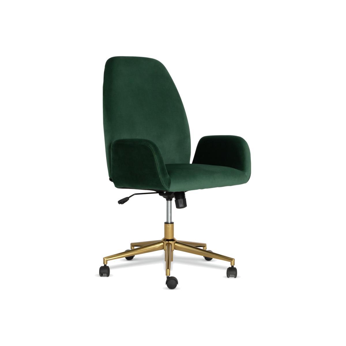 Classy Clarice. A tilt and swivel office chair upholstered in plush green velvet that's an absolute dream to sit on. We love its opulent look - the brass base contrasting with the dark green velvet is a stunning combination. Adjust the height with the gas lift function and wheel yourself into the perfect working position. Hard work certainly doesn't have to mean hard seating.