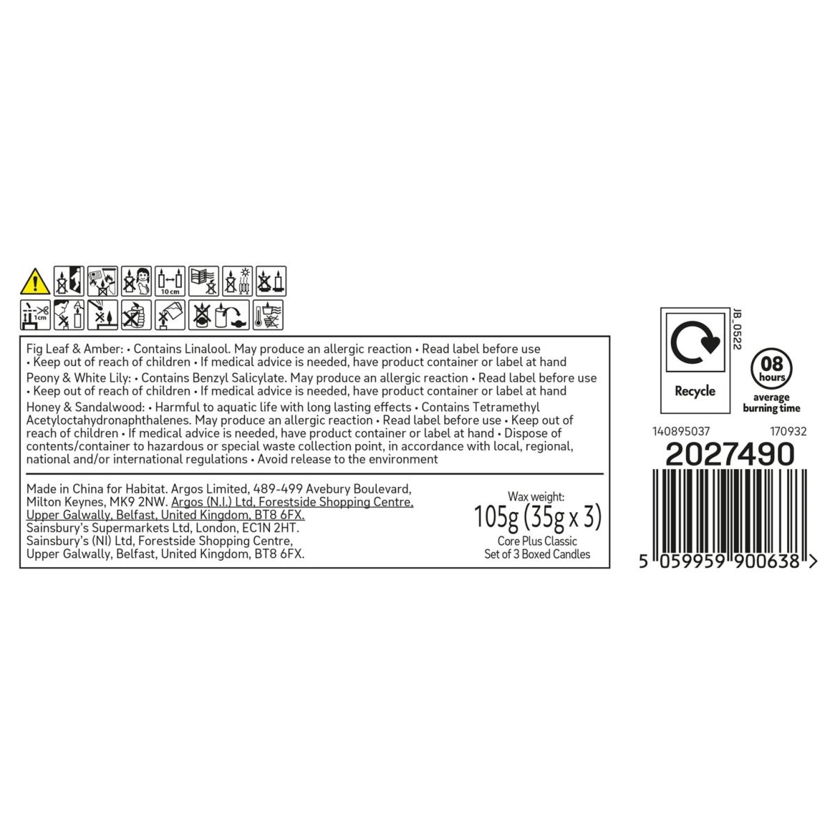 A tantalizing trio. Settle in for a fragrant time with our boxed set of 3 deliciously scented candles. Enjoy 3 different aromatic combos, fruity fig leaf and amber, floral peony and white lily, and exotic honey and sandalwood. Simply light the candle that suits your mood or room. In colourful frosted glass holders they look good too.