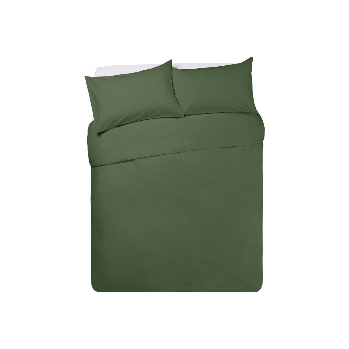 Cool khaki comfort. Our forest green duvet set transforms your space into a soothing sleep haven. Curl up and get cosy. Brilliant to add a modern or contemporary touch. Made of easycare polycotton, the set includes 2 pillowcases and a duvet. Comes with buttons for easy fastening. All you need to do is snuggle up and drift off to happy dreams.