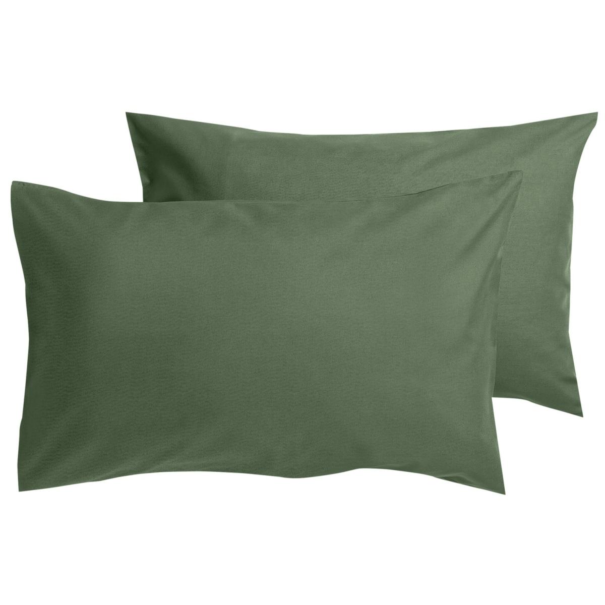 Look smart! This pair of khaki housewife pillowcases are ready to go on parade. No fuss, no frills, in dark green, they give out a cool, contemporary look. Versatile too. Team with other neutrals or hot colours like red or orange. They're made in practical, comfy polycotton so super low maintenance too.