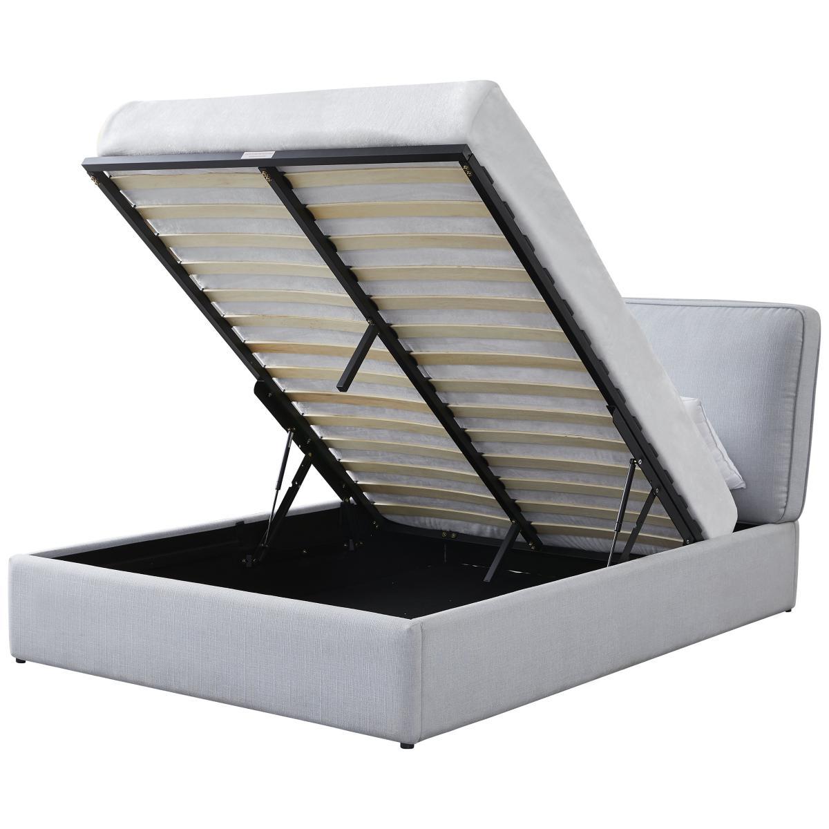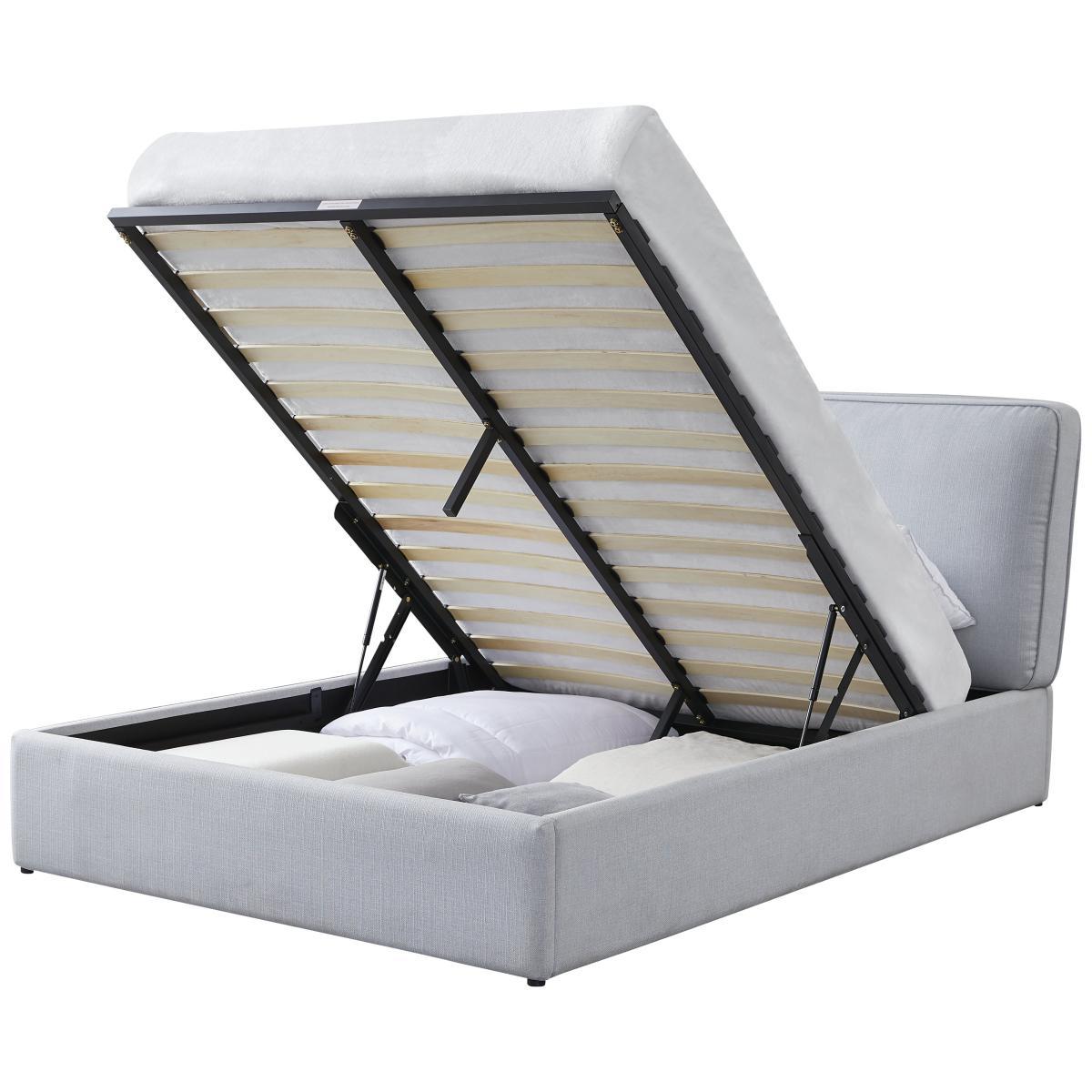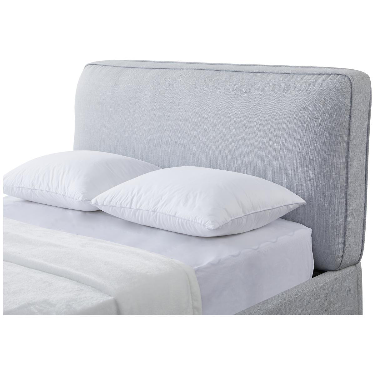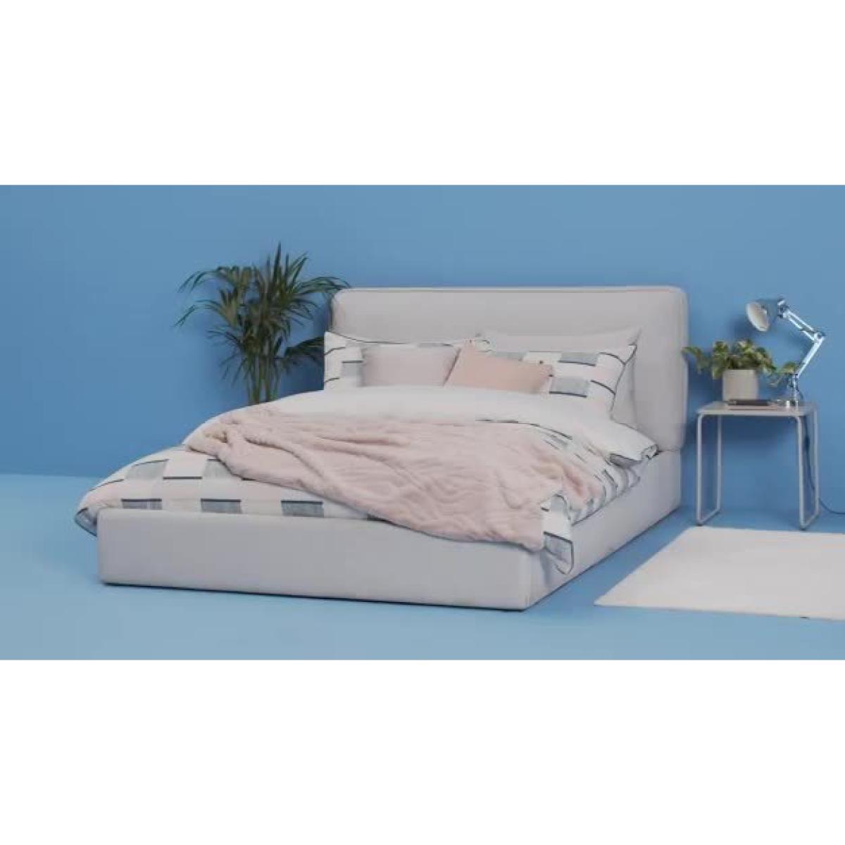 Deliciously dreamy. Our kingsize ottoman bed is super comfy and generous on storage space too. A plumped up, fibre-filled grey frame gives it a look that's larger than life. The cloud-like headboard takes breakfast in bed to the next level. Now, for the clever bit. Lift up the base to reveal lots of room for sheets, towels and seasonal clothes. Minimal effort required thanks to its gas-assisted mechanism. And supportive sprung wooden slats make for a great night's rest. Float off to sleep.