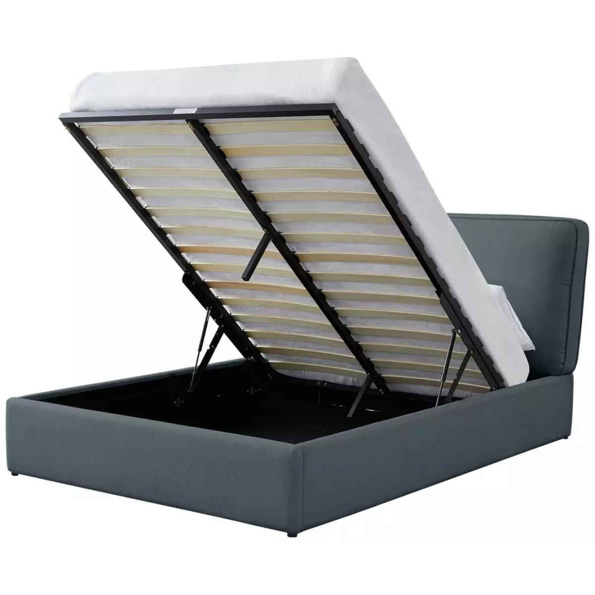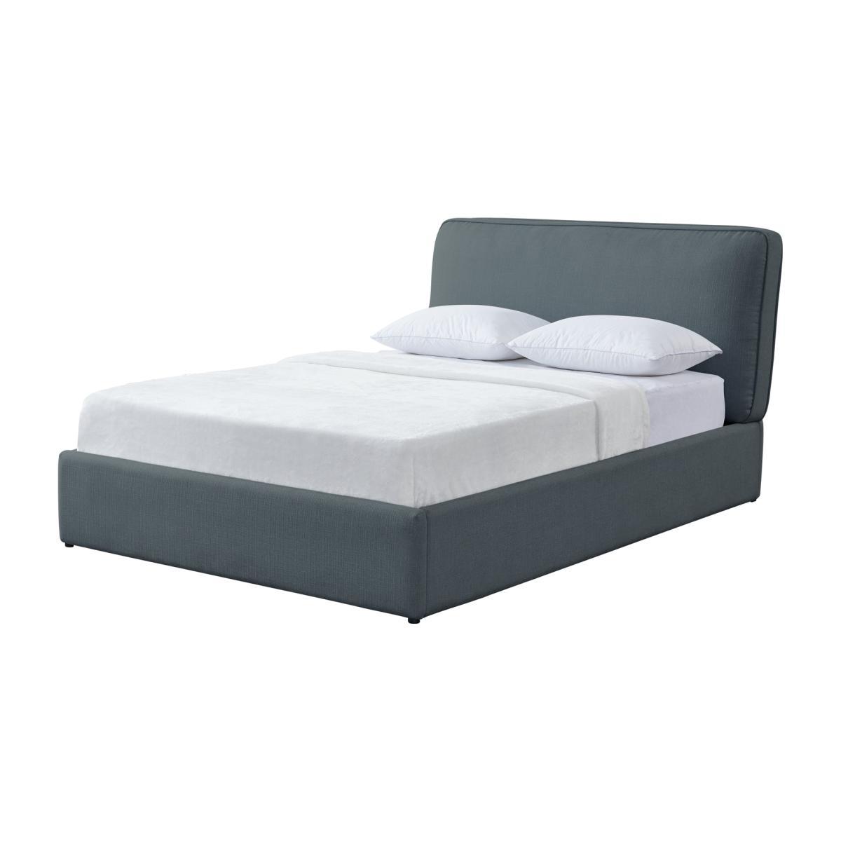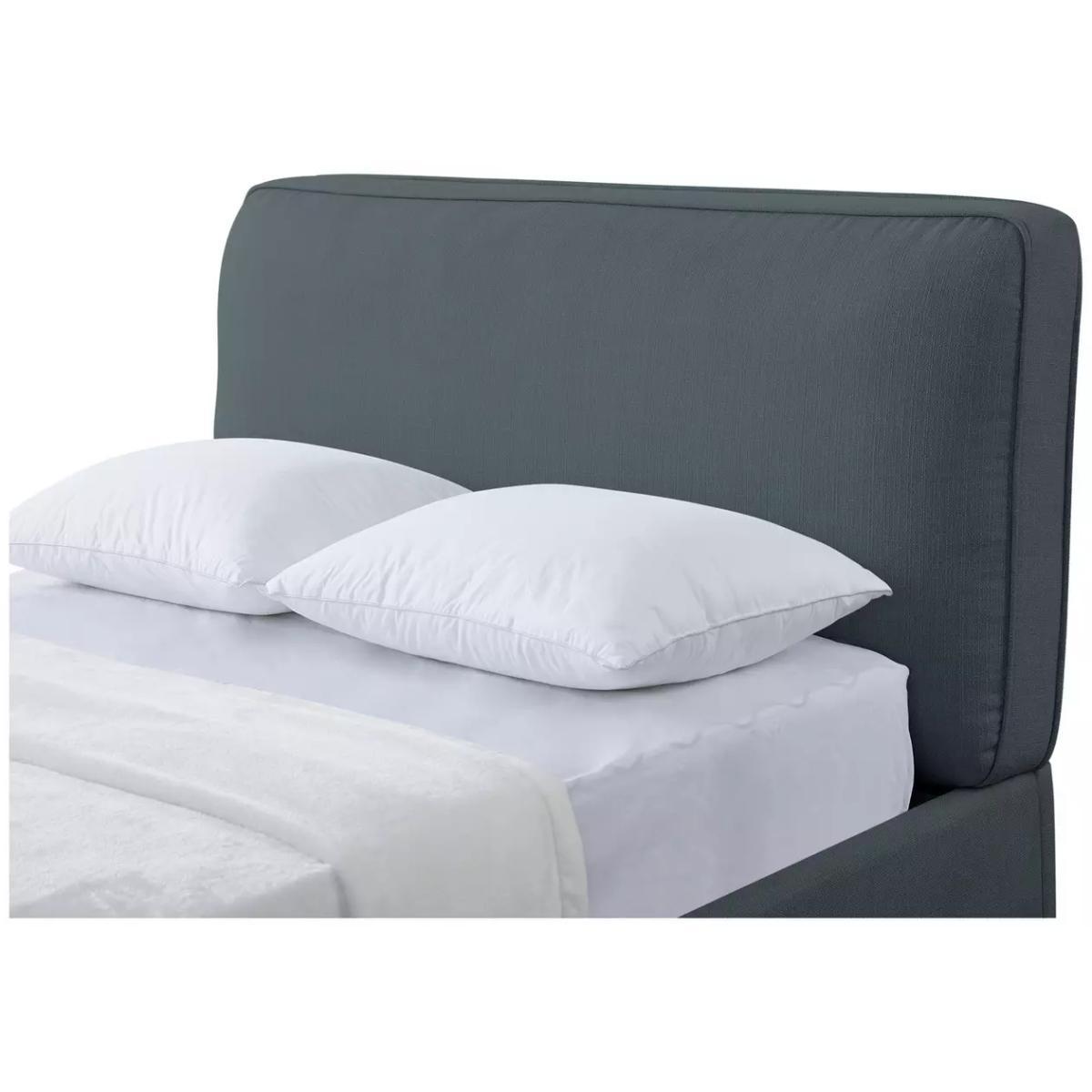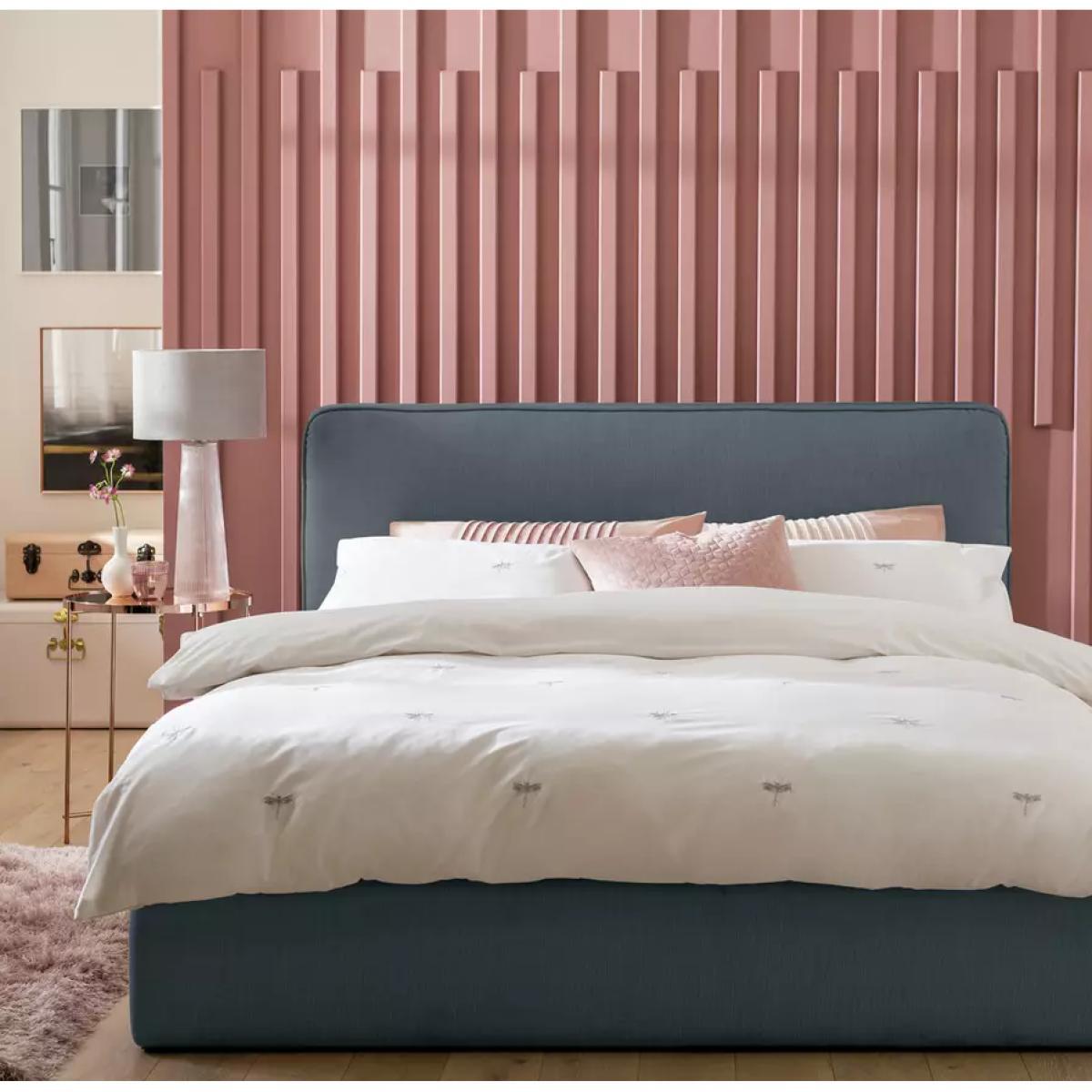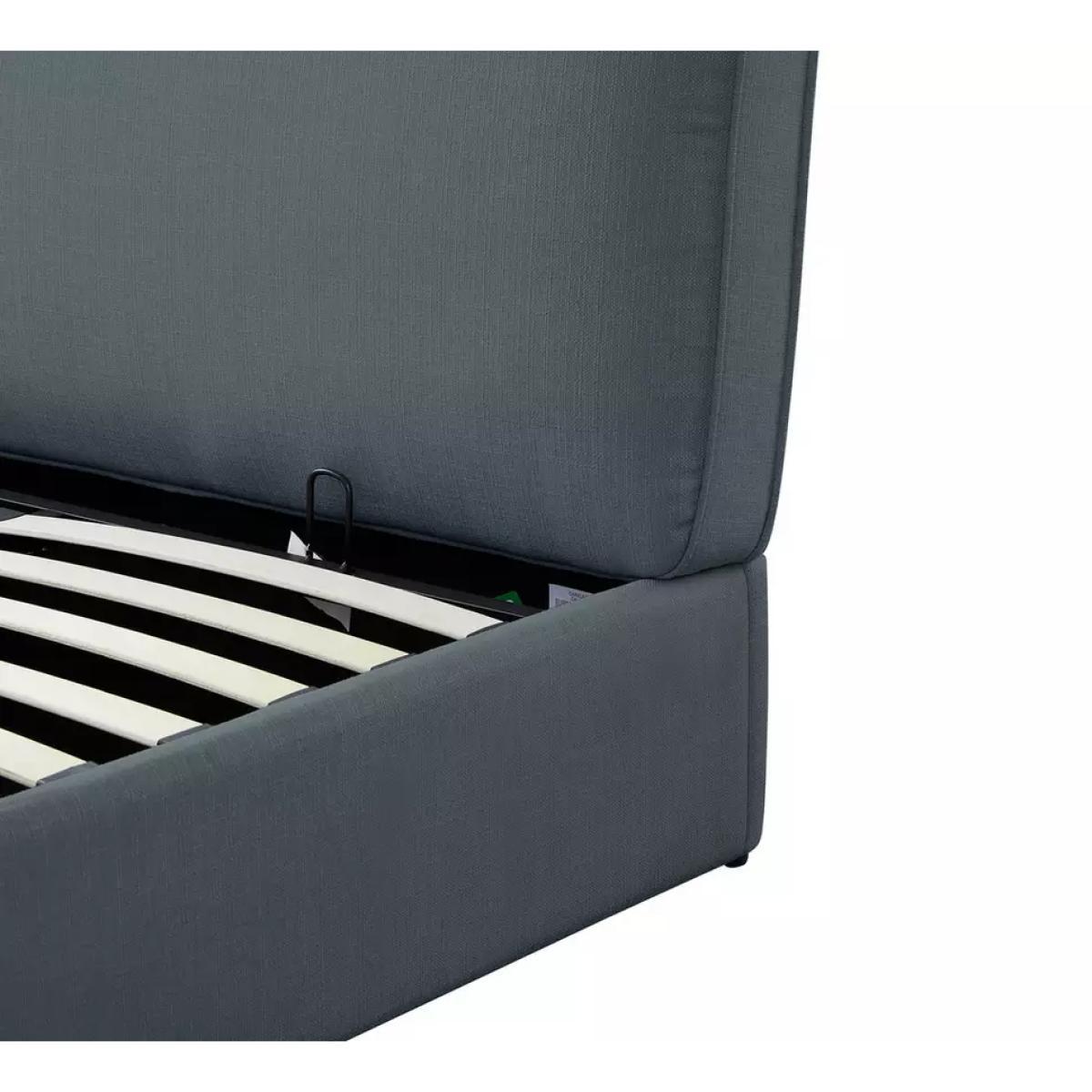 Deliciously dreamy. Our kingsize ottoman bed is super comfy and generous on storage space too. A plumped up, fibre-filled denim blue frame gives it a look that's larger than life. The headboard takes breakfast in bed to the next level. Now, for the clever bit. Lift up the base to reveal lots of room for sheets, towels and seasonal clothes. Minimal effort required thanks to its gas-assisted mechanism. And supportive sprung wooden slats make for a great night's rest. Float off to sleep.